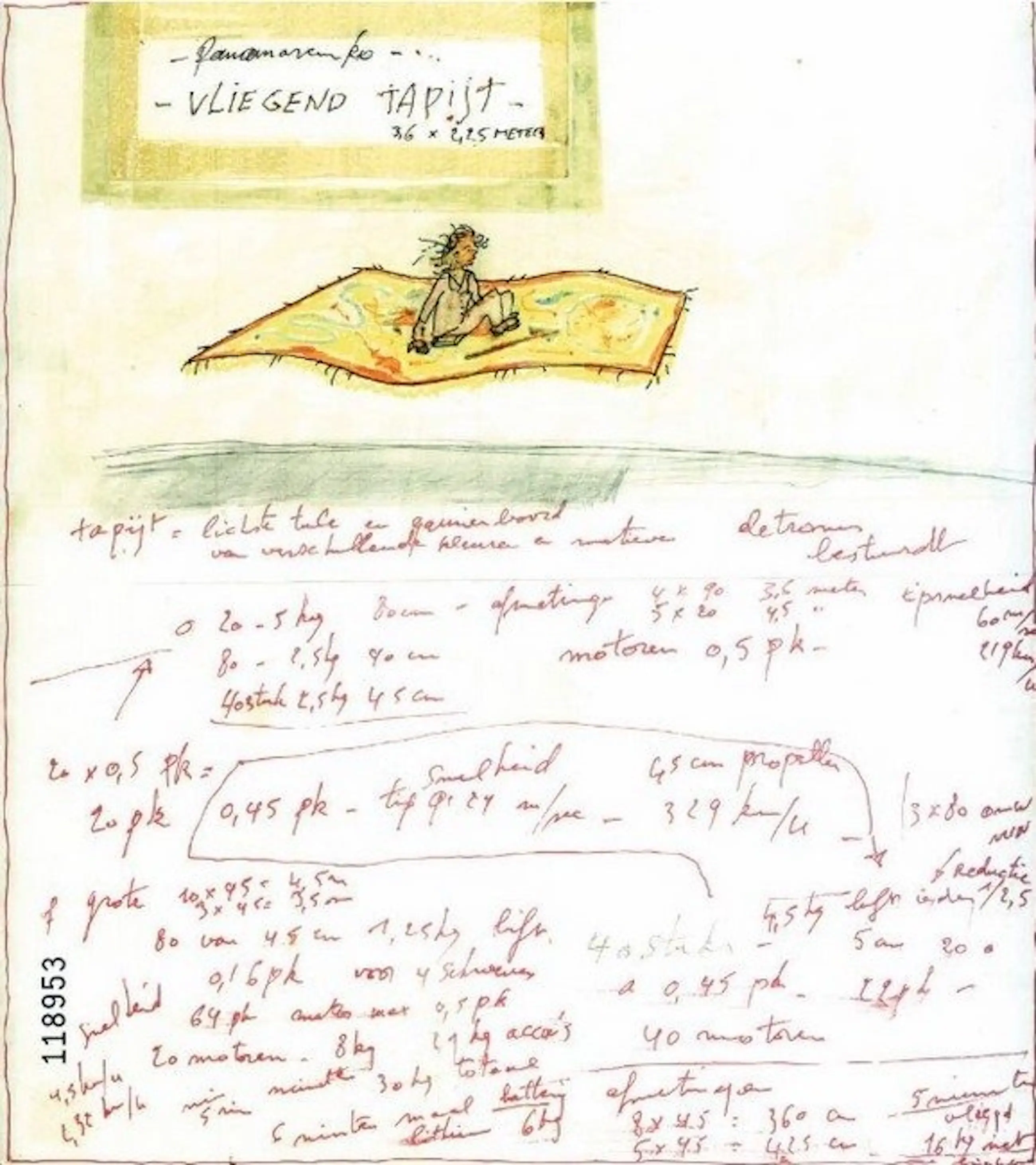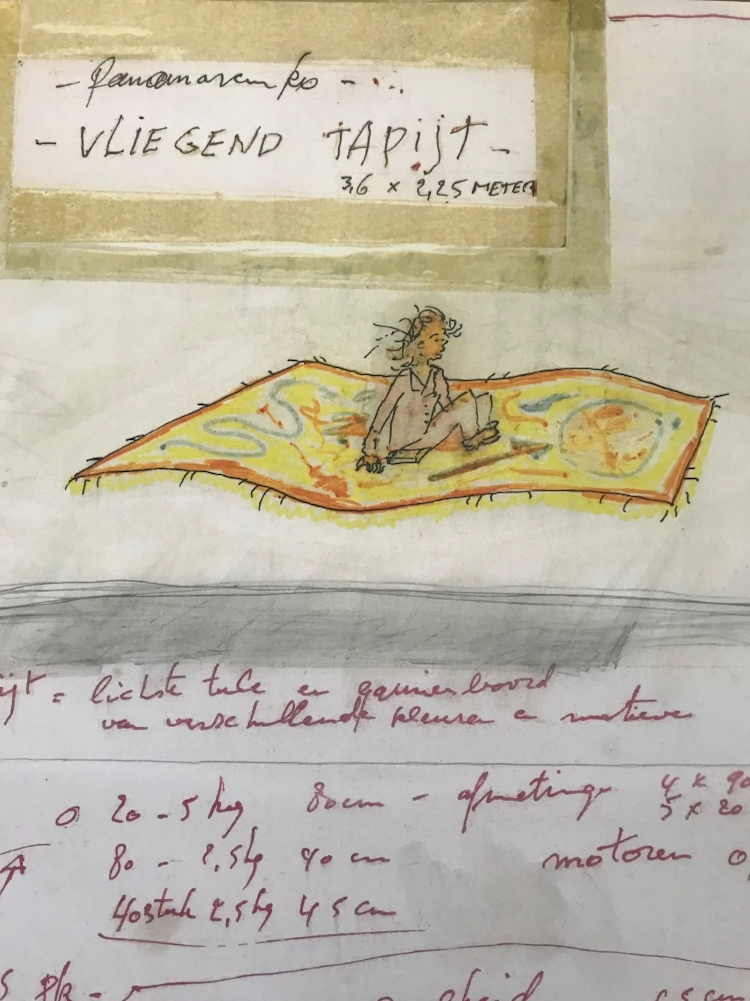 Dit werk werd geprint op GardaPat 13 Kiara papier van 150g. Deze hoogwaardige papiersoort is zeer geschikt om het werk in te lijsten. De uitgave kwam tot stand door een samenwerking met het Panamarenko Collectief. In deze vroege tekening droomt Panamarenko reeds van het Vliegend Tapijt dat hij jaren later in werkelijkheid zal uitvoeren. Genummerd en gesigneerd in de plaat.