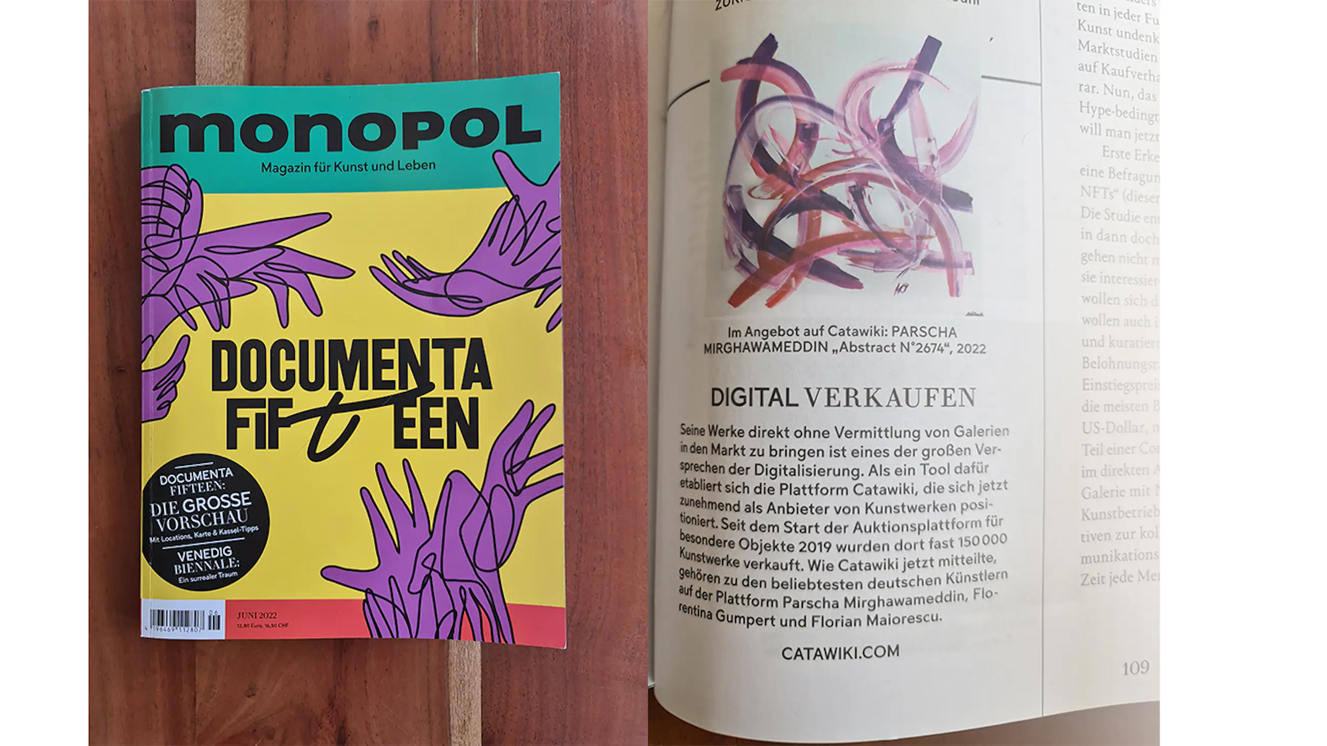 Media-aandacht: Het gerenommeerde tijdschrift "Monopol" publiceerde in de editie van juni 2022 een artikel over de heer Parscha Mirghawameddin, waarin zijn artistieke visie en prestaties werden belicht.