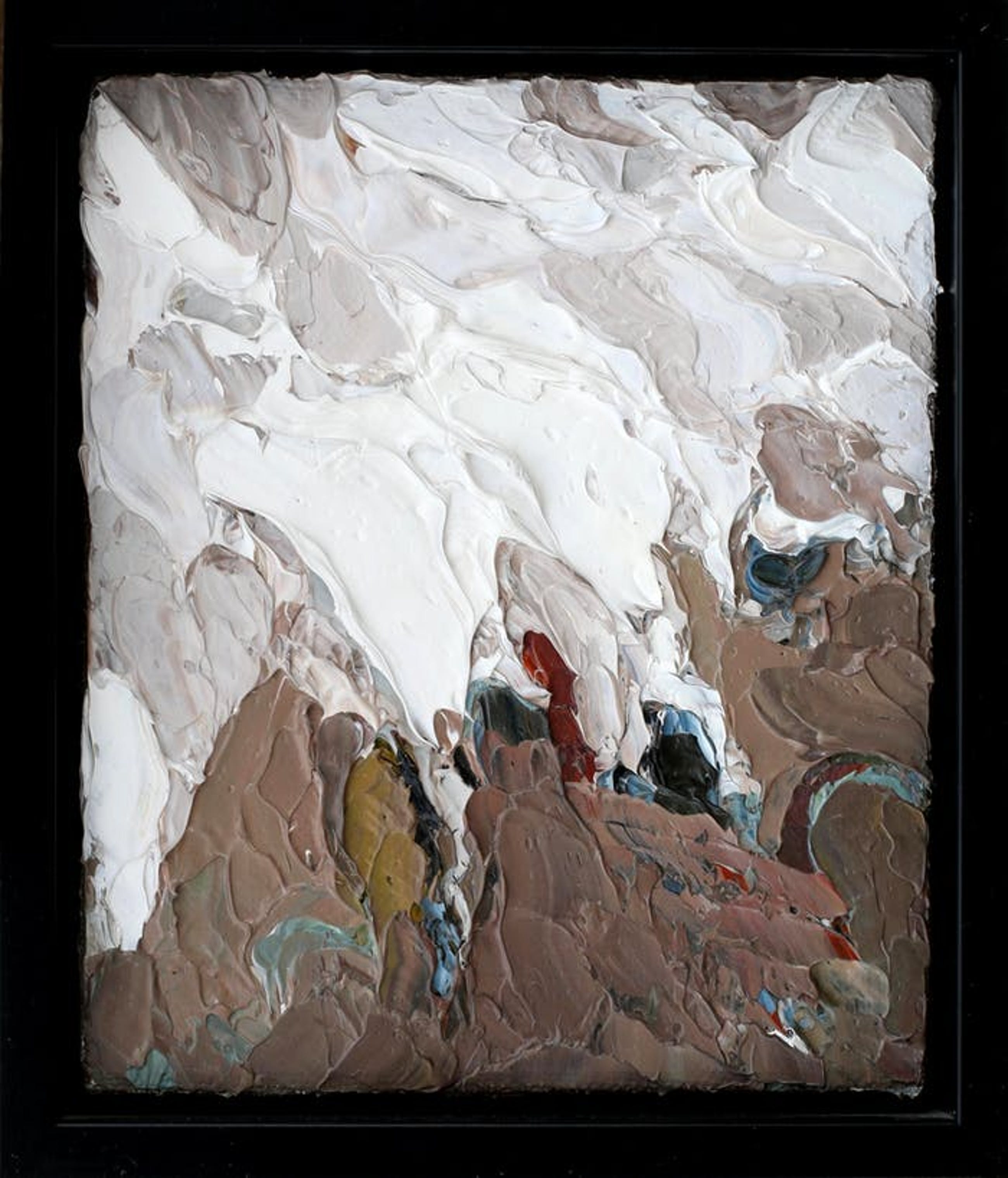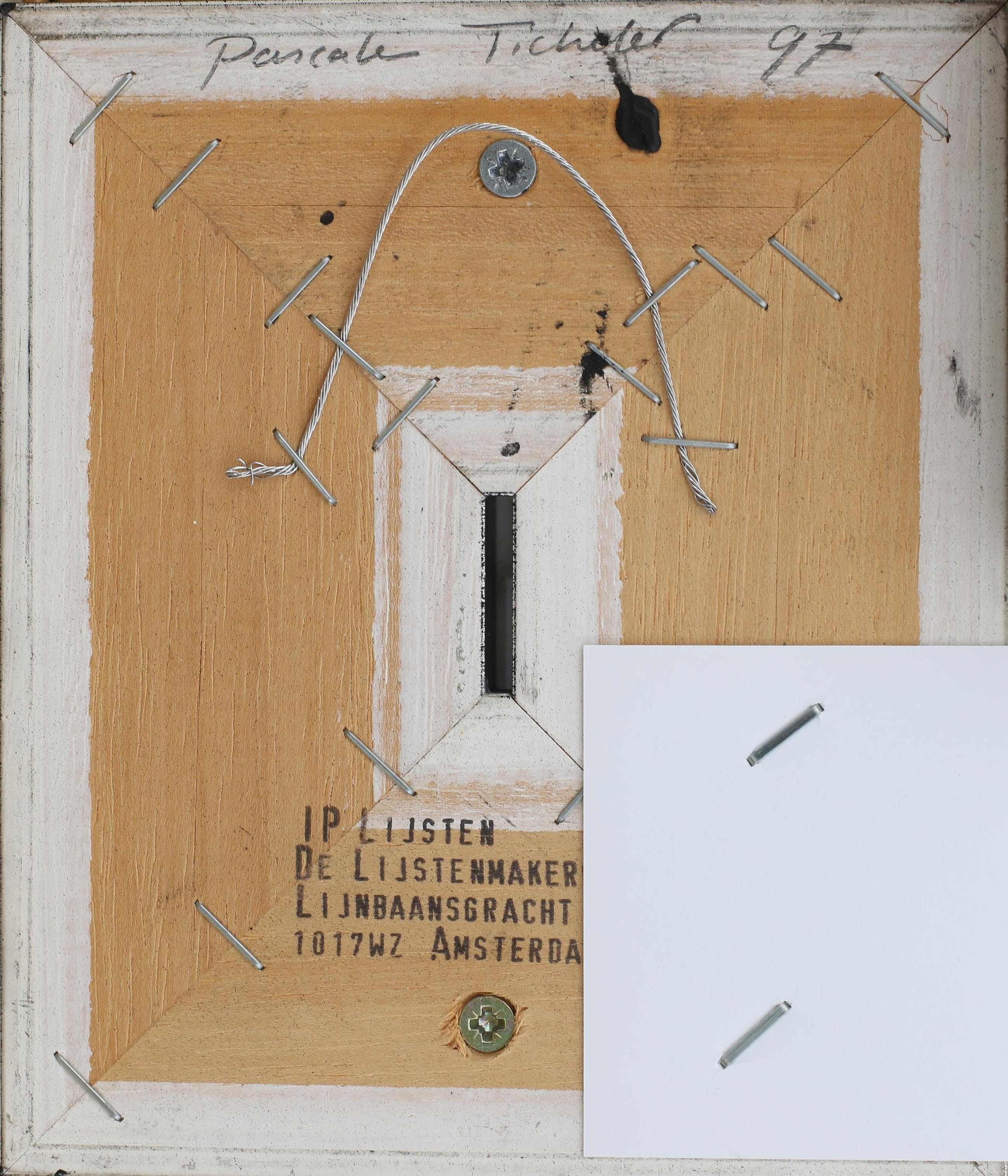 Olieverf op doek van Pascale Ticheler. Zonder titel: Jaar: 1997. Afmetingen incl lijst: H12 x b14cm. Afmetingen voorstelling: H10 x B12cm.