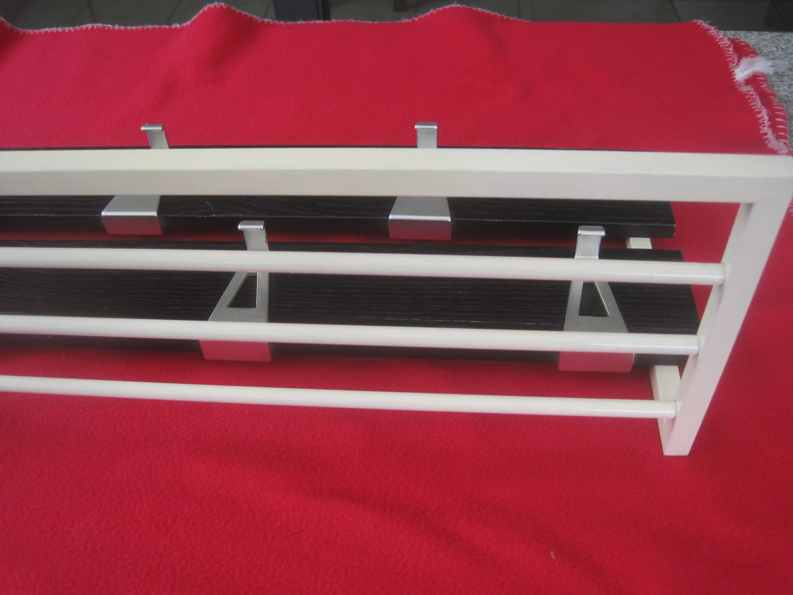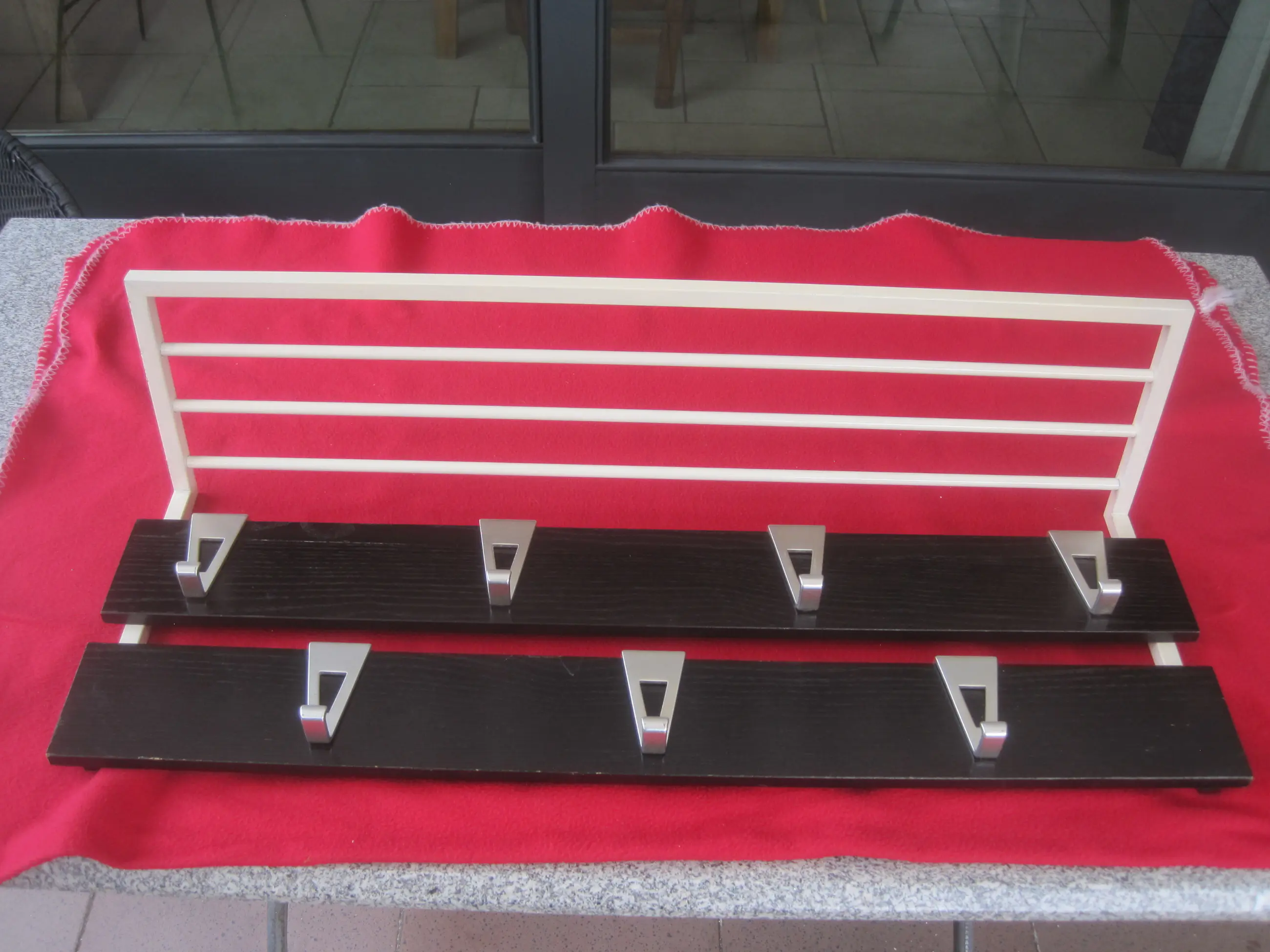 Lichtvoetige strakke kapstok van Pastoe. Hang je jassen, tassen en sjaals in stijl op aan deze prachtige vintage kapstok. De kapstok is gemaakt van een stalen frame, afgewerkt met Wengé fineerplanken. Deze kapstok heeft lichte leeftijd- en gebruikssporen.