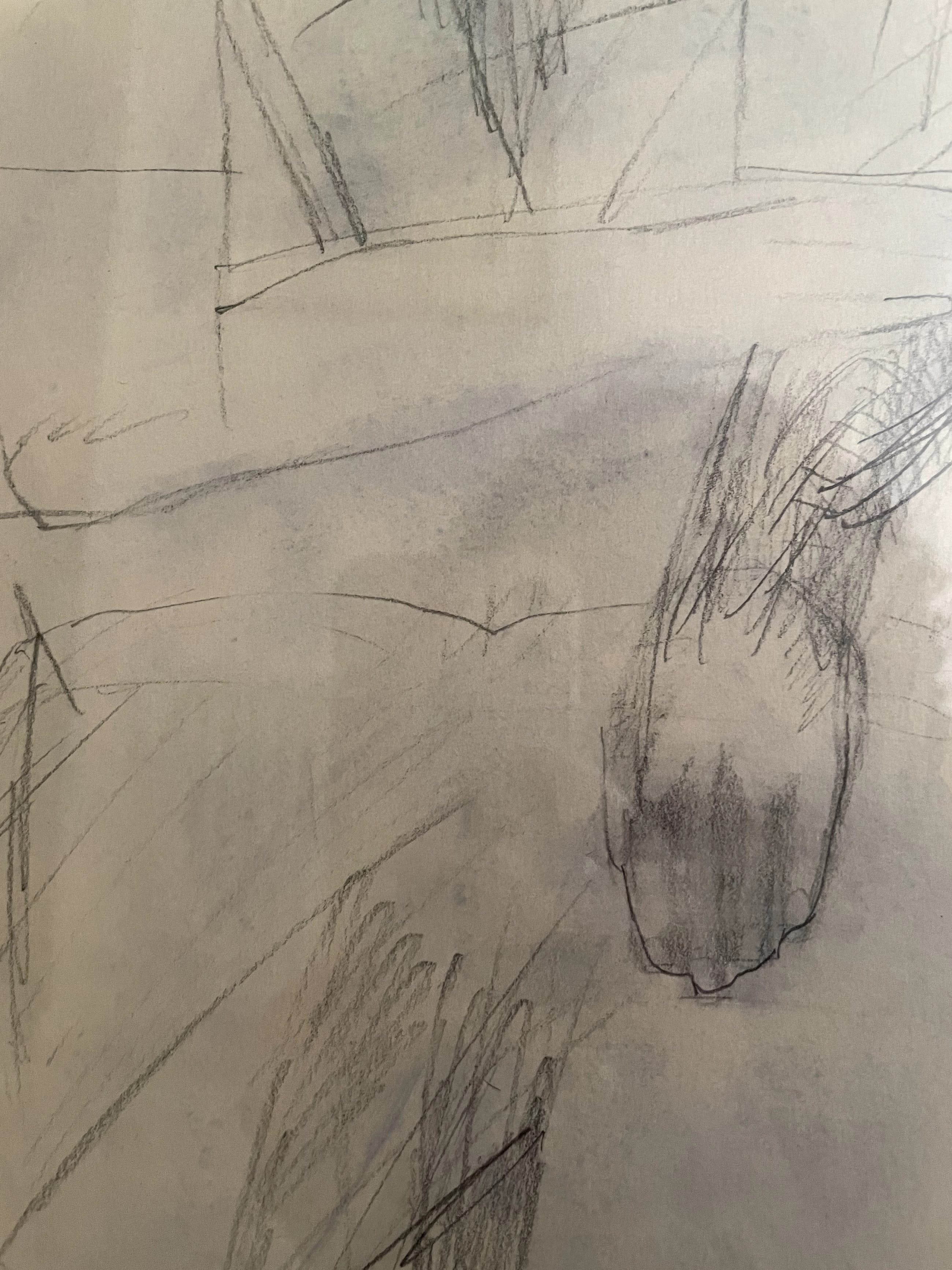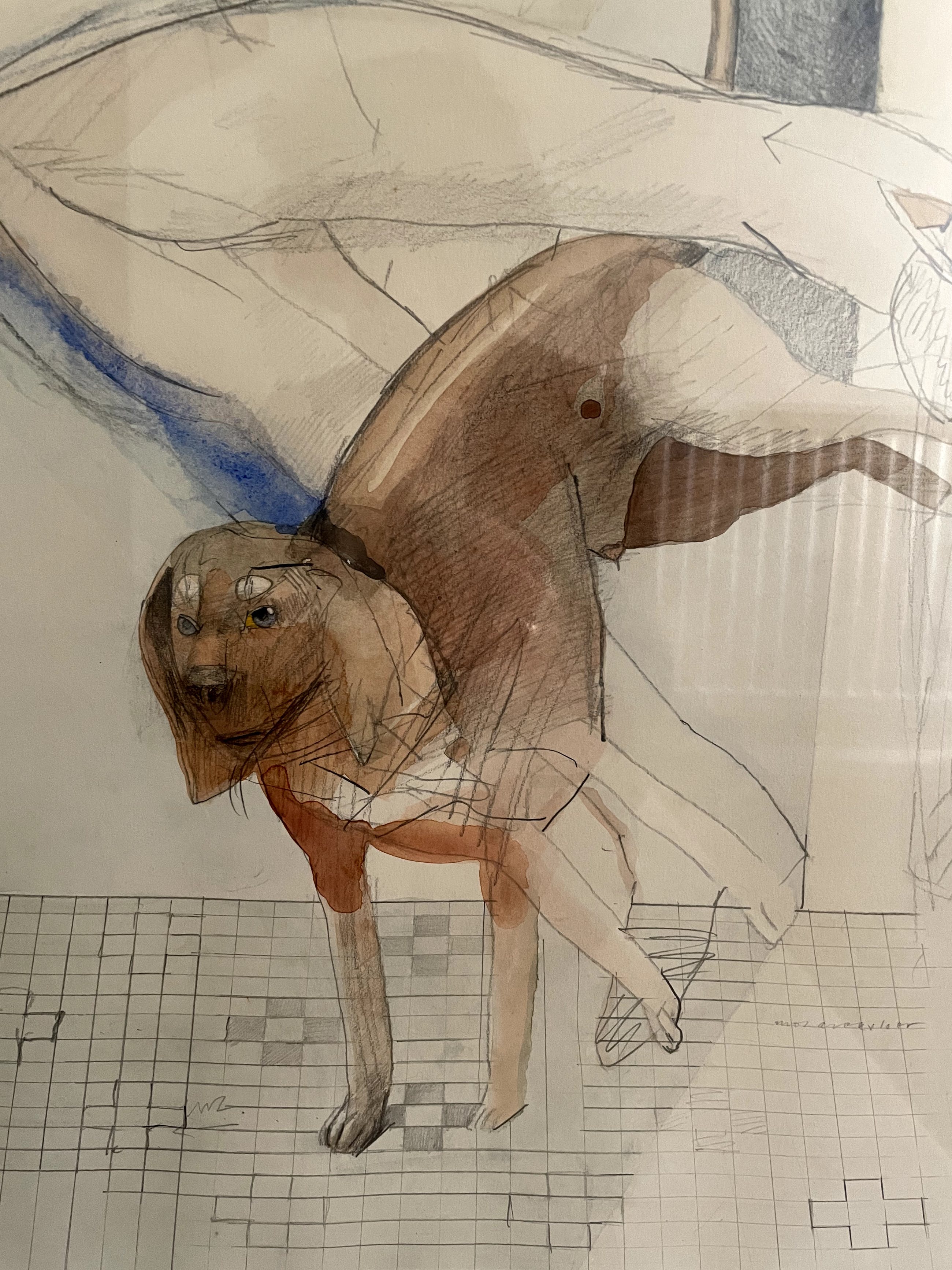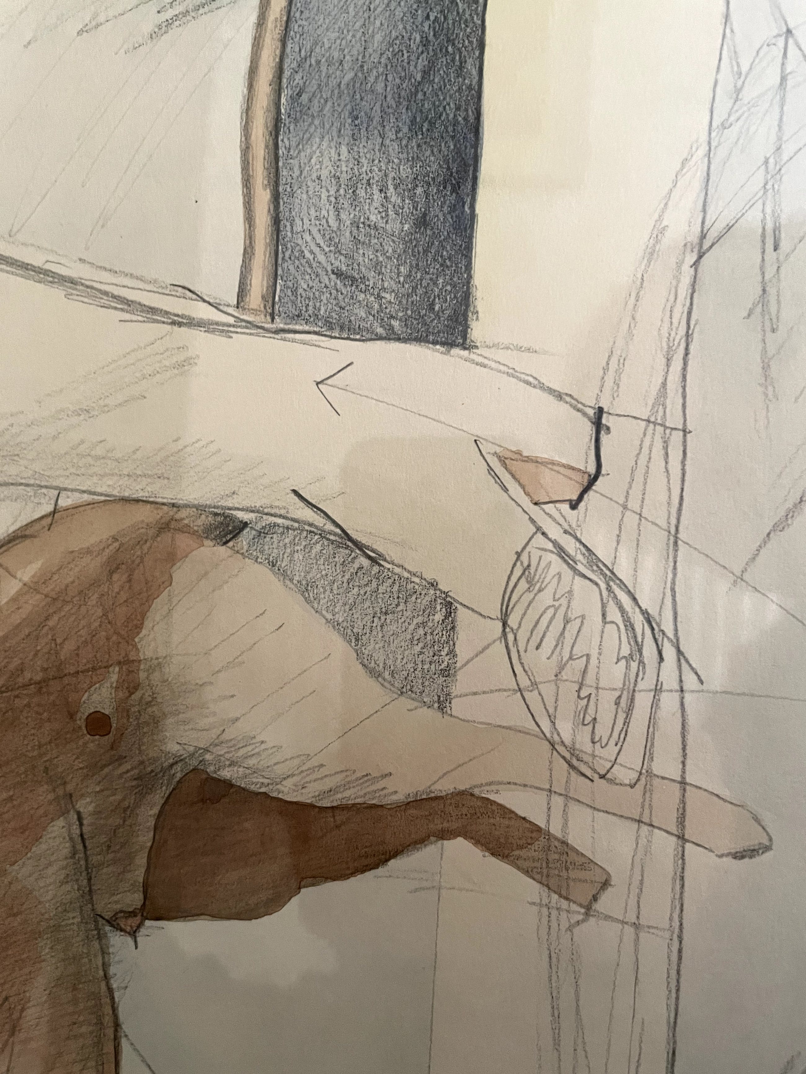 | Het papier is heel licht gegolfd. Er zit een kleine beschadiging aan de zijkant van de lijst. (Er is wat spiegeling in het glas te zien op de foto's, maar dat zijn dus geen beschadigingen.) | |