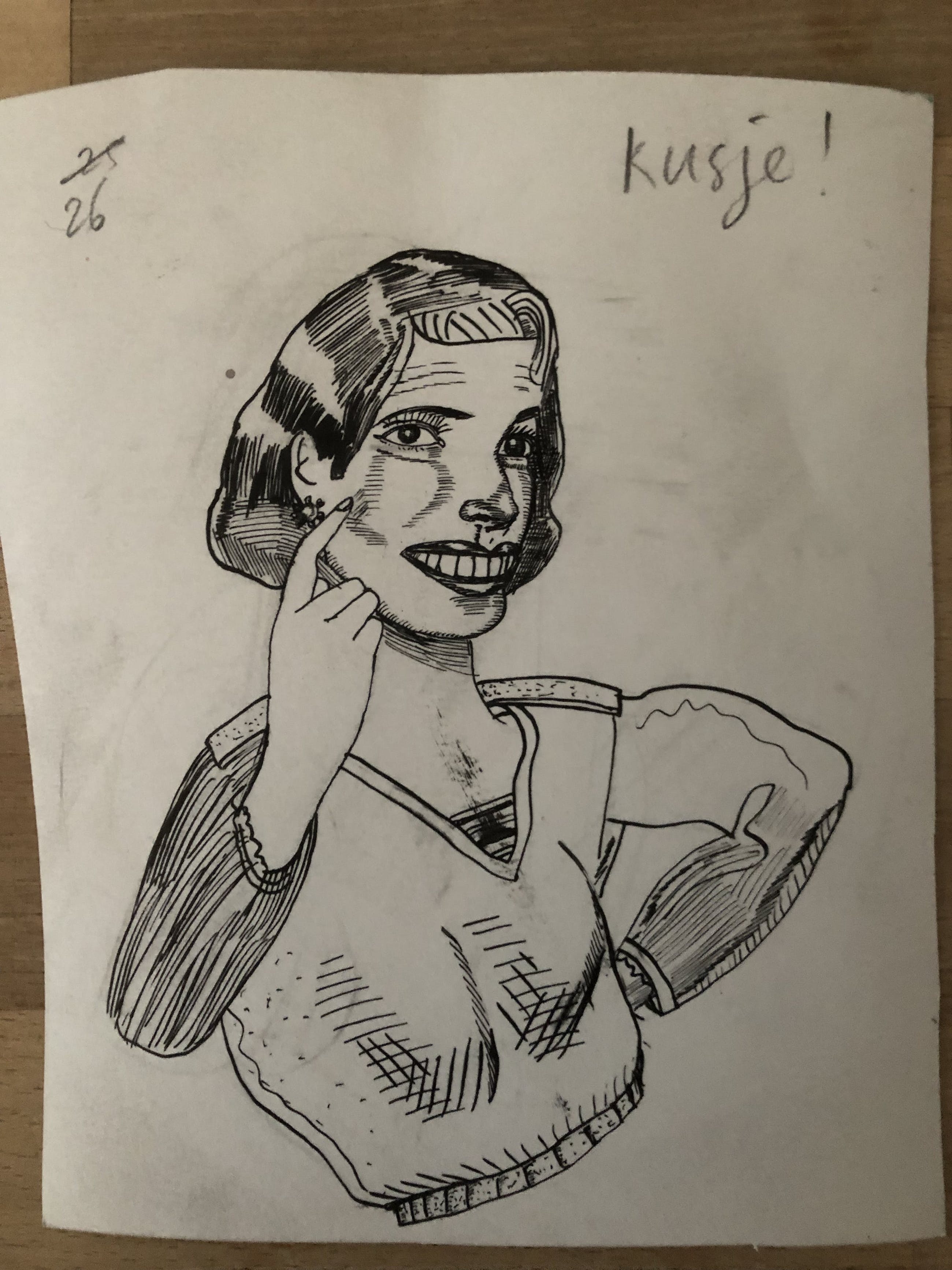 Pat Andrea dit is een tekening UNICA UIT HET GEBAREN boekje. Gesigneerd P A