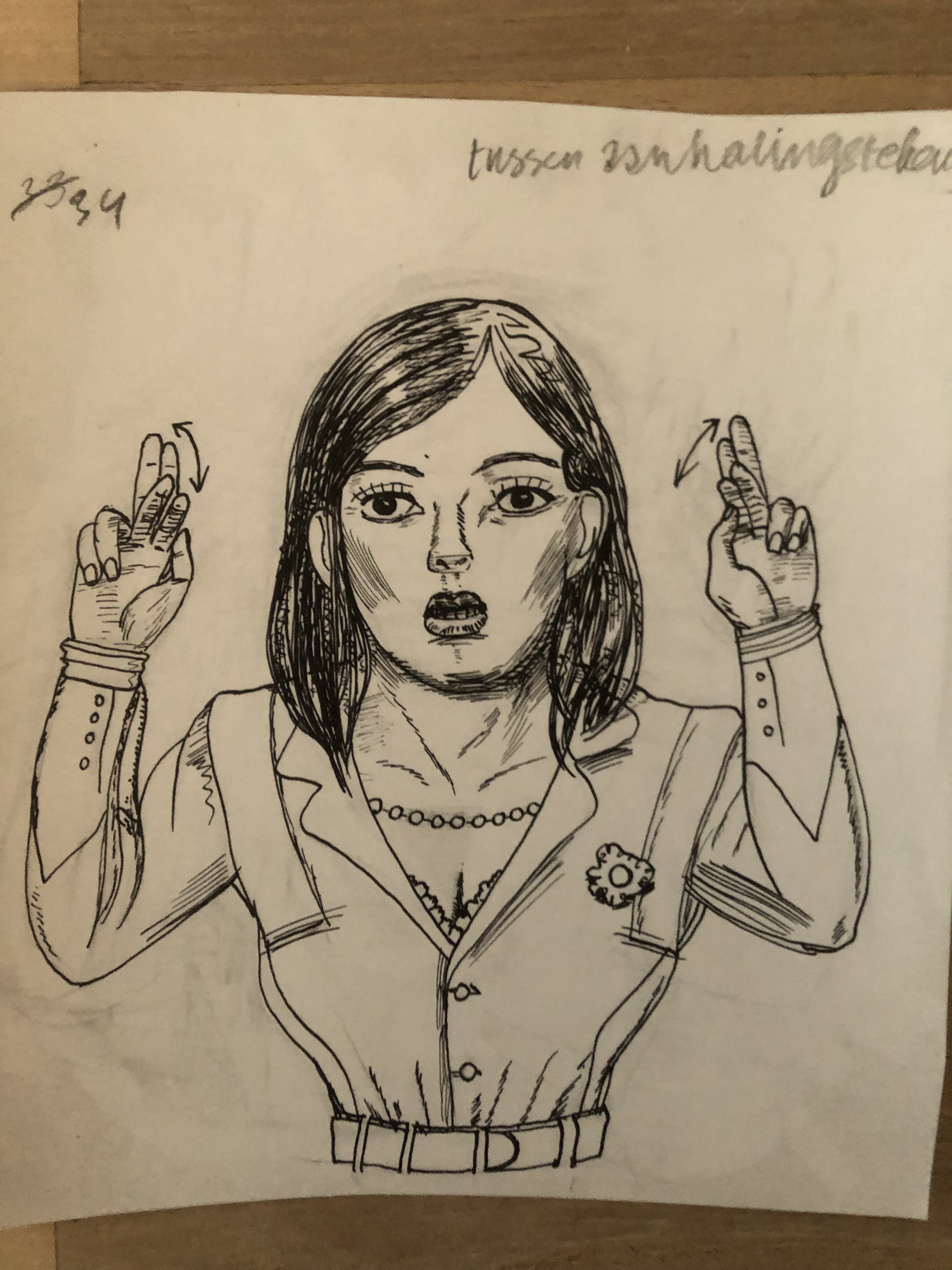 Pat Andrea Haagse kunstenaar die woont en werkt in Parijs en Argentinië. Bekend van zijn naakte vrouwen met grote hoofden werken. Dit is UNICA WERK dit is tekening uit het gebaren boekje.