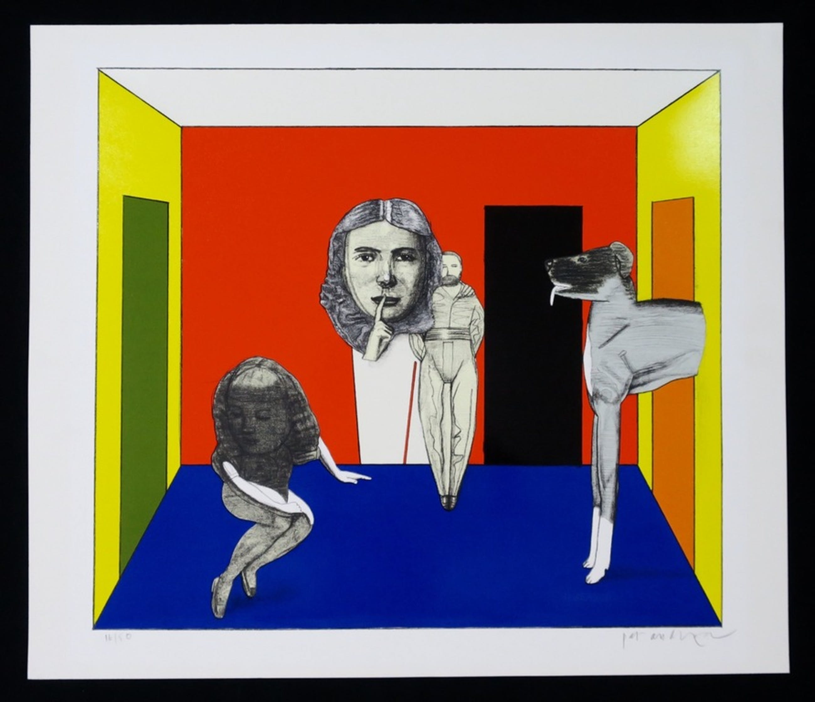 Materiaal: Gemengde grafische technieken (litho, deels voorzien van glanslak) op papier