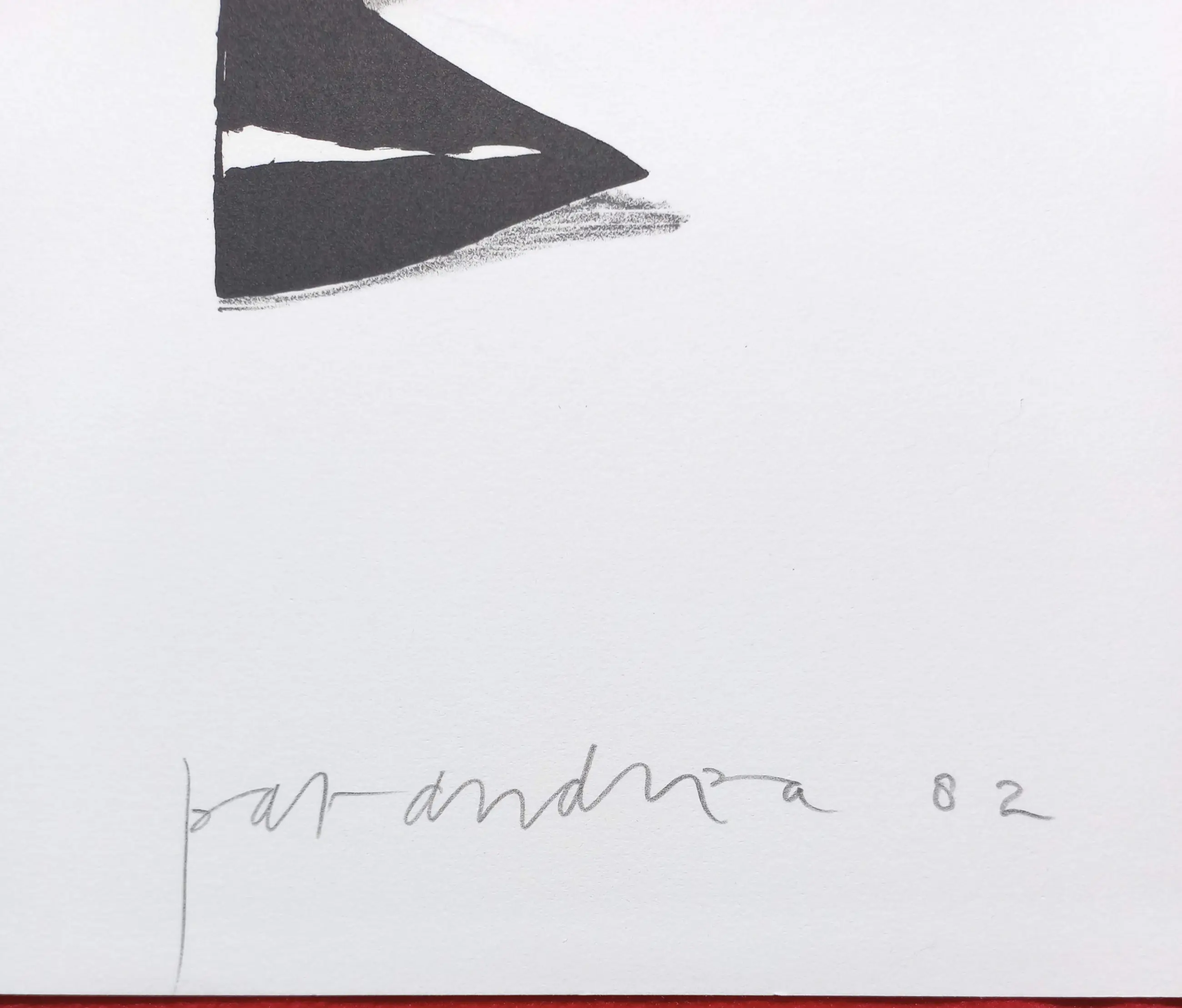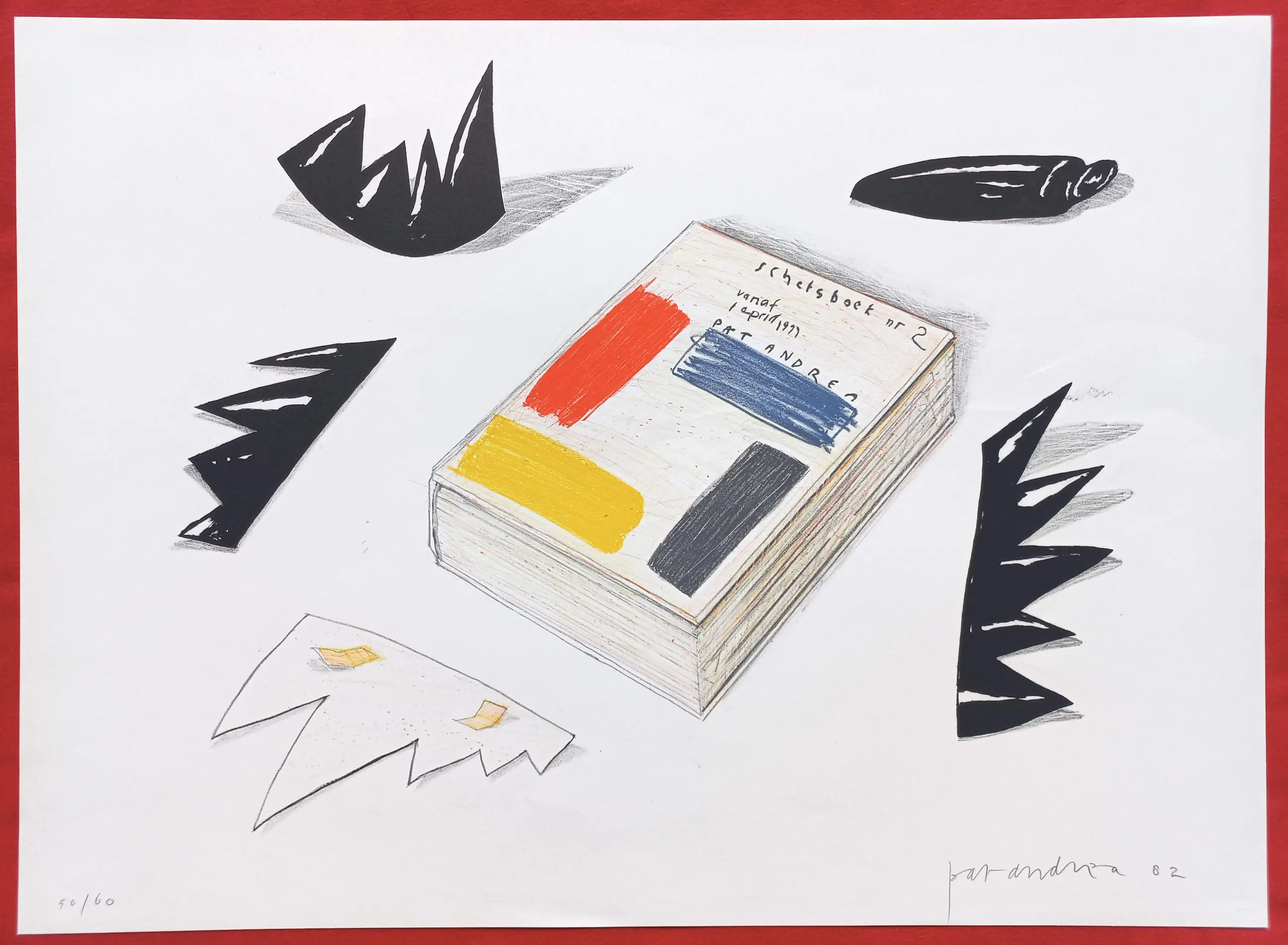 Karakteristiek werk van Pat Andrea. Litho op Rives papier, met potlood gesigneerd, gedateerd (’82) en genummerd (50/60). In goede conditie.