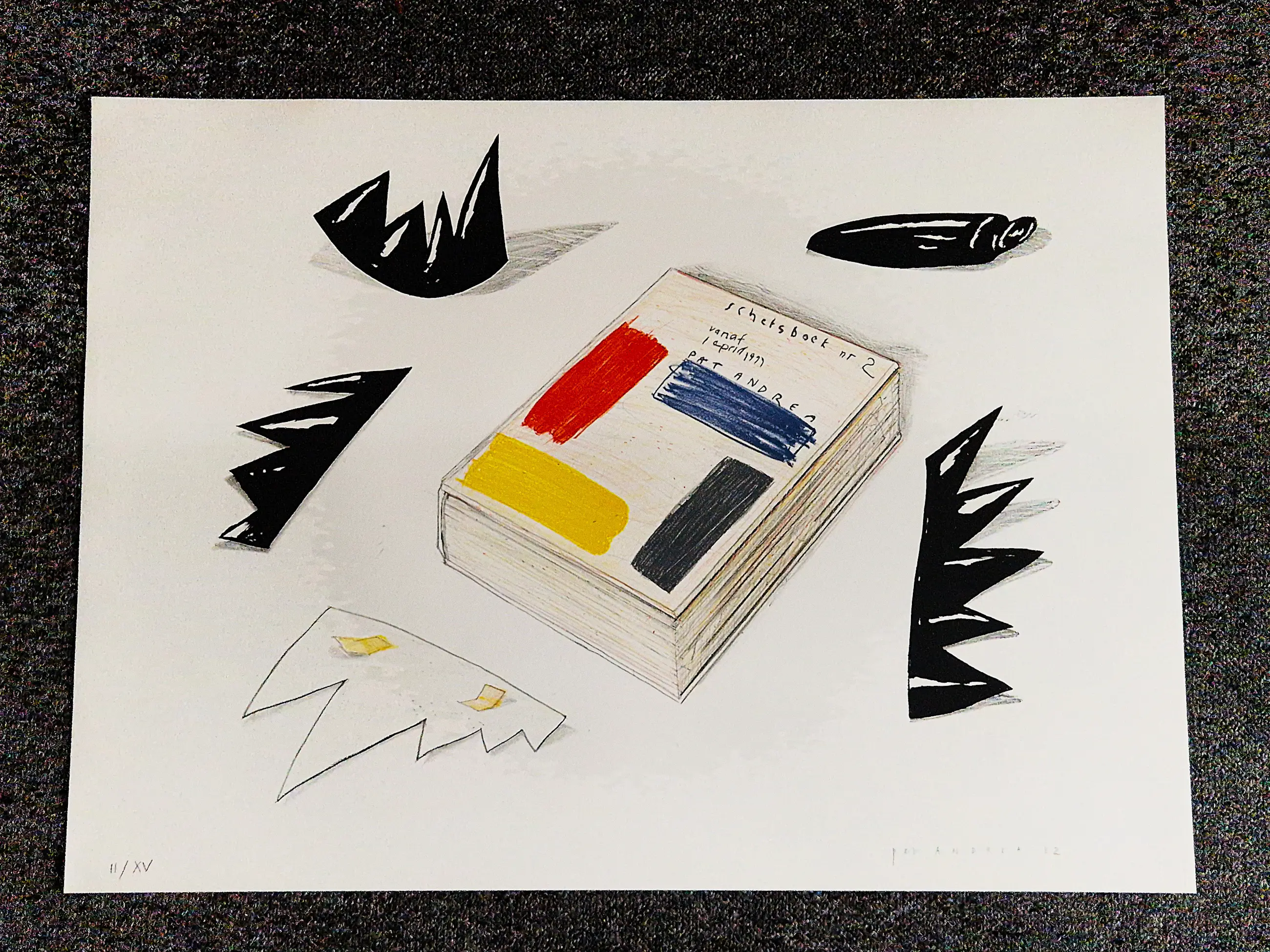 - Techniek: kleuren zeefdruk op zwaar velin BFK rives papier