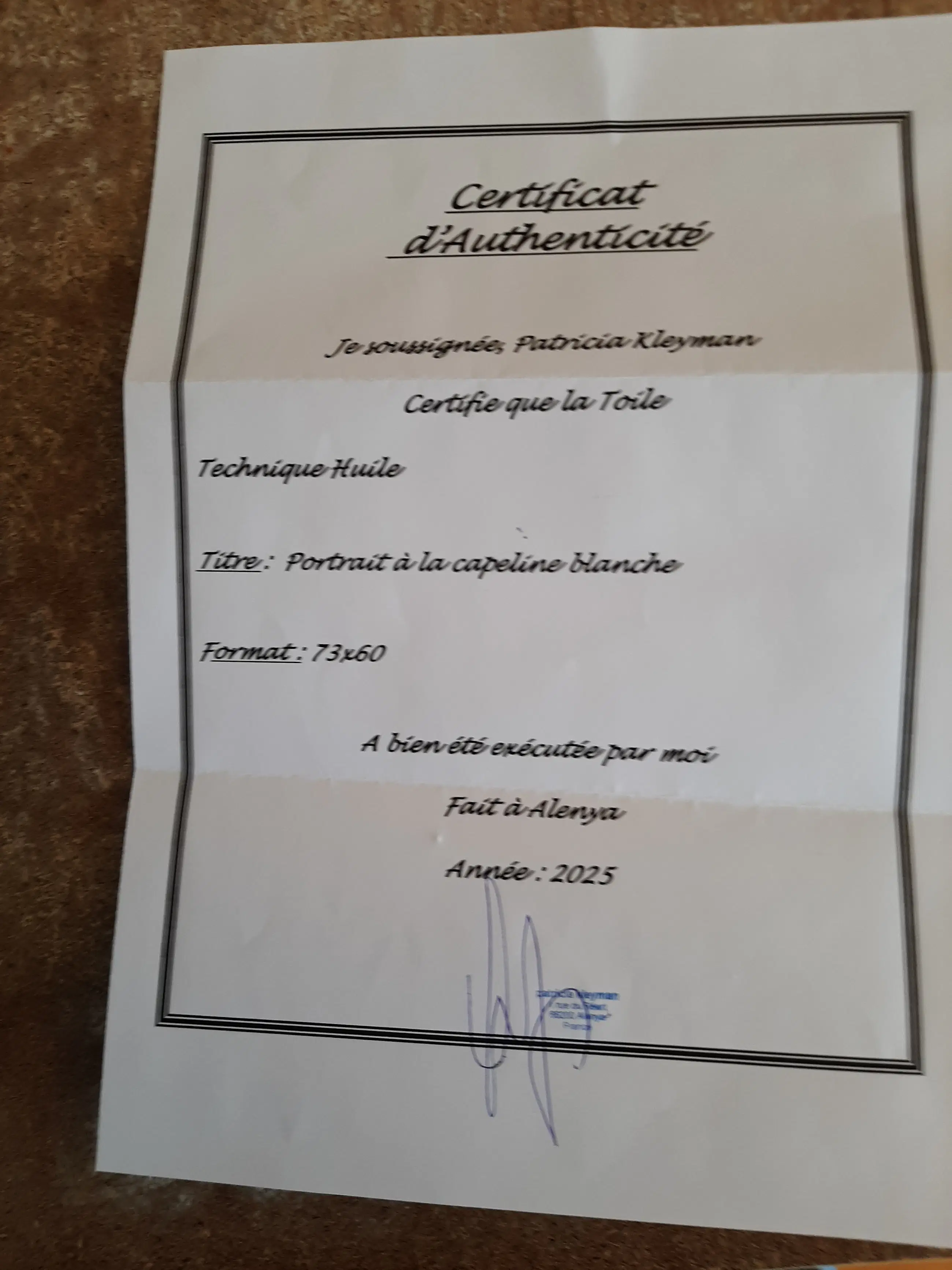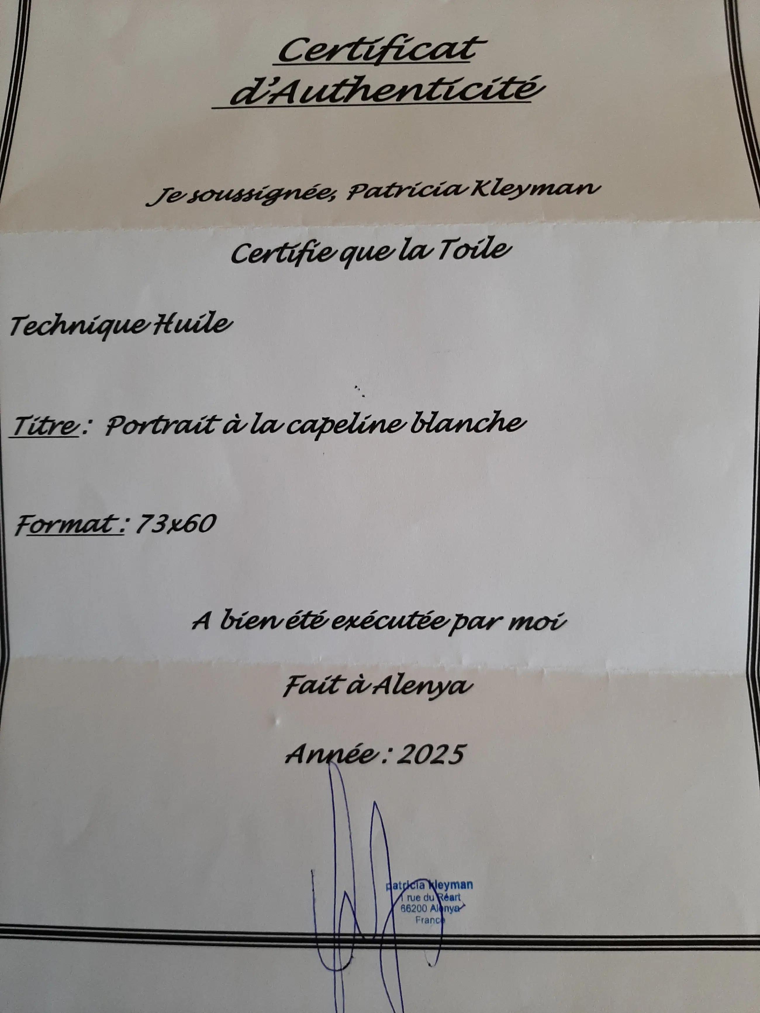 Patricia Kleyman - Titel, "Portrait à la capeline blanche".