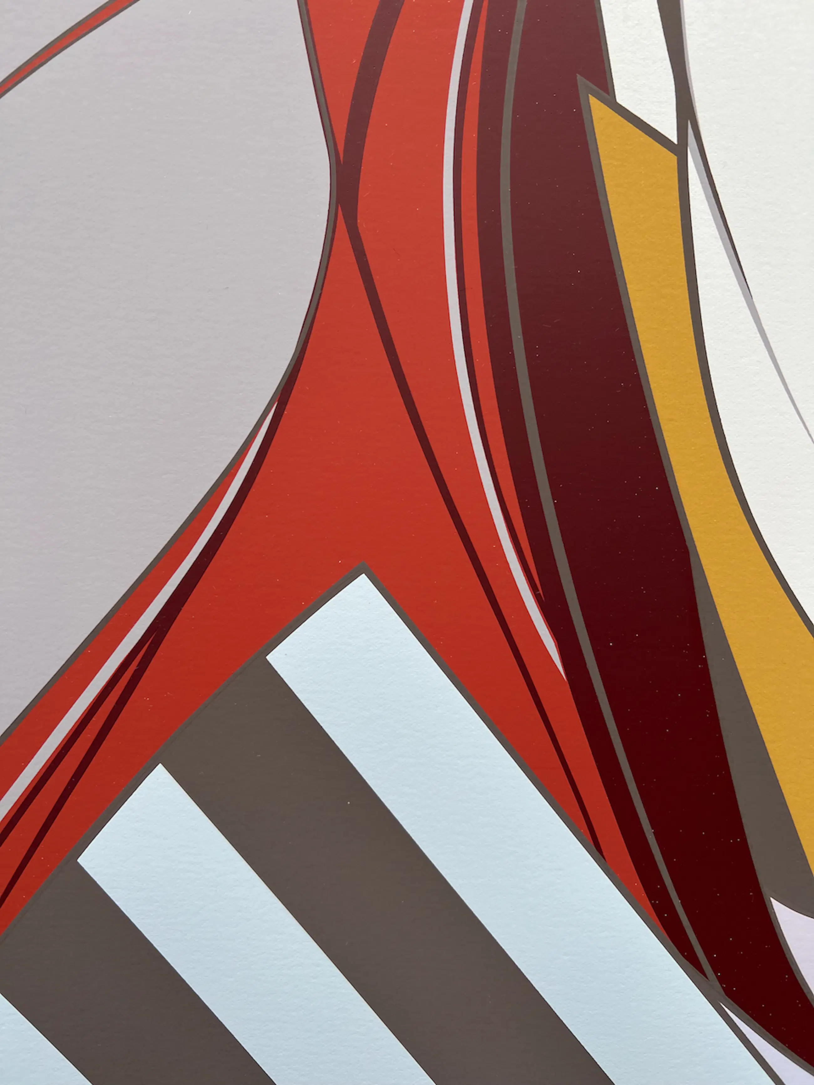 Zeer fraaie zeefdruk, op BFK Rives papier. Zeer goede drukkwaliteit, met mooie kleuren en met wit onderlegd, waardoor de kleuren een extra heldere uitstraling krijgen.