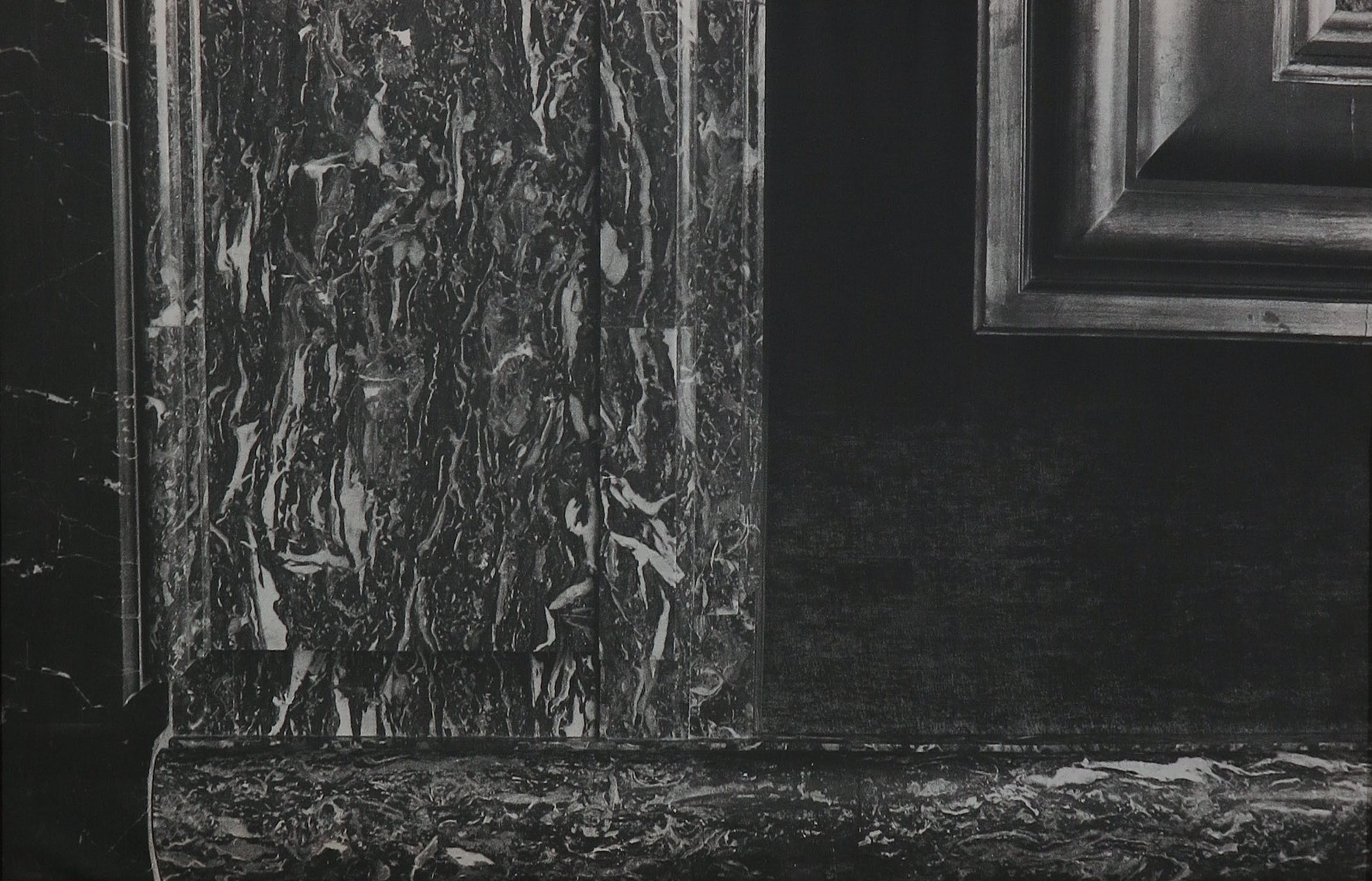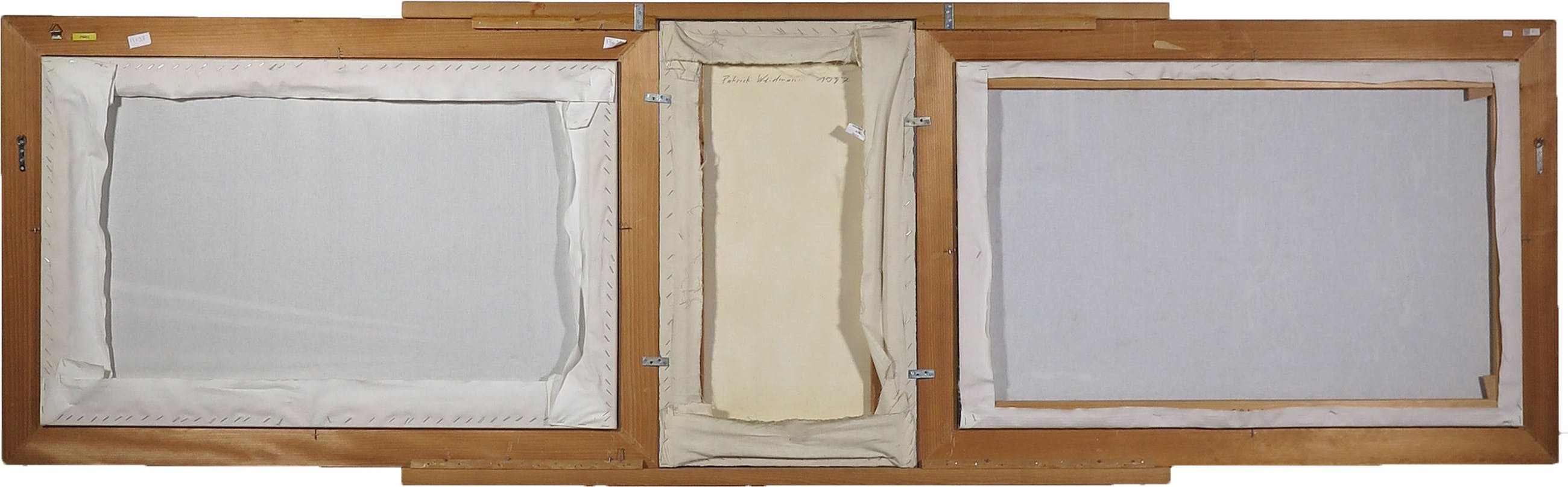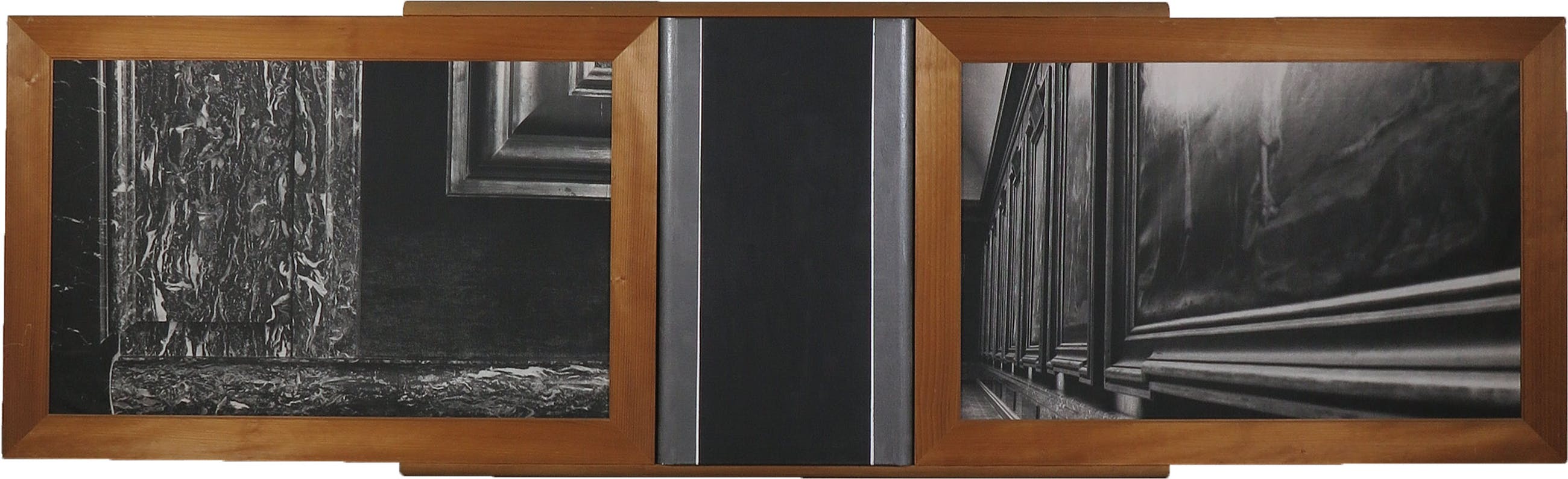 Zeer groot drieluik van twee afzonderlijke fotoprints op doek en een geschilderd middenstuk. Verso gesigneerd en gedateerd.