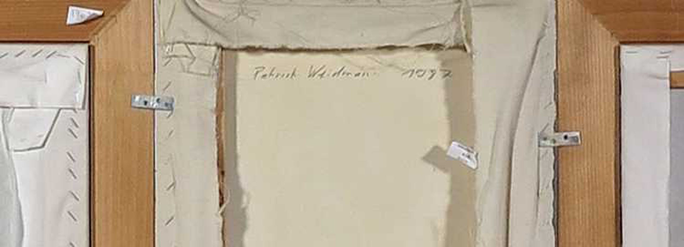 | Het doek is wat bobbelig. Wat oppervlakkige stof-veegjes op het doek. | |