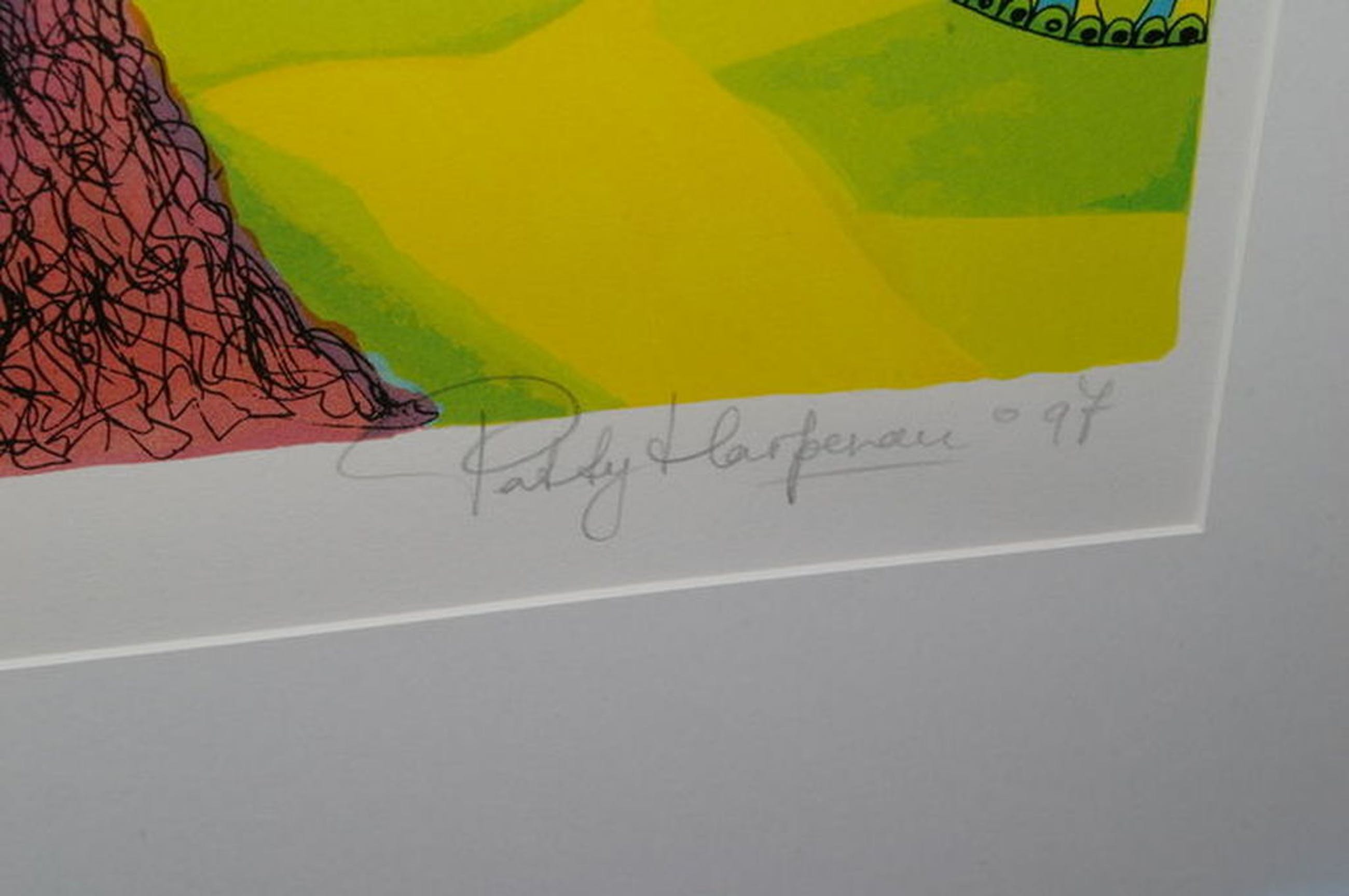 Originele zeefdruk met potlood gesigneerd van Patty Harpenau in prachtige lijst met passe-partout.