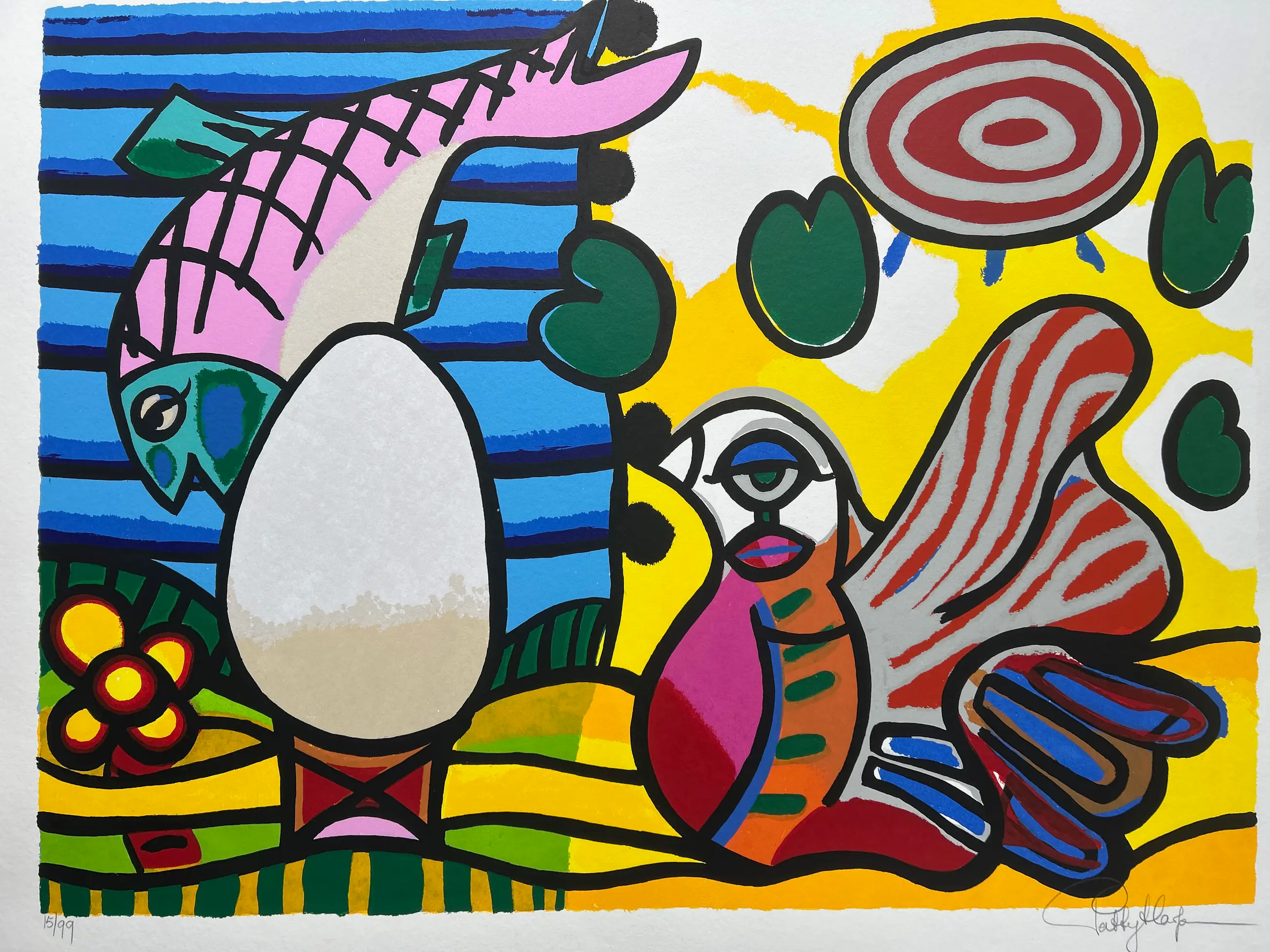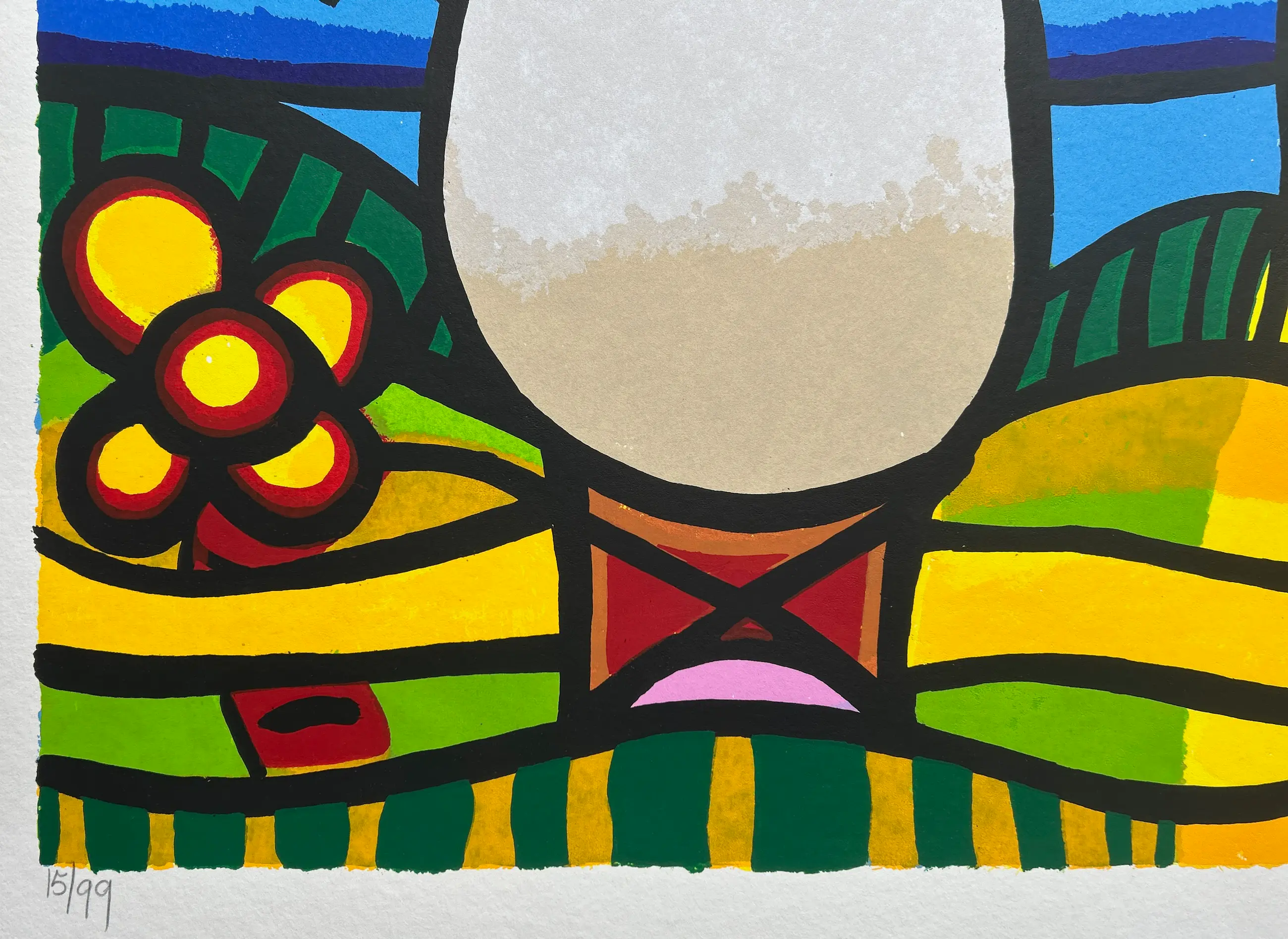 Conditie: Afbeelding uitstekend. Linkerrand vel heeft 2 kleine scheurtjes 0,5 cm, zie foto's. Oplage: 15/99. Afmeting: afbeelding 61 x 80 cm. Wordt zorgvuldig verpakt en verzekerd verzonden.