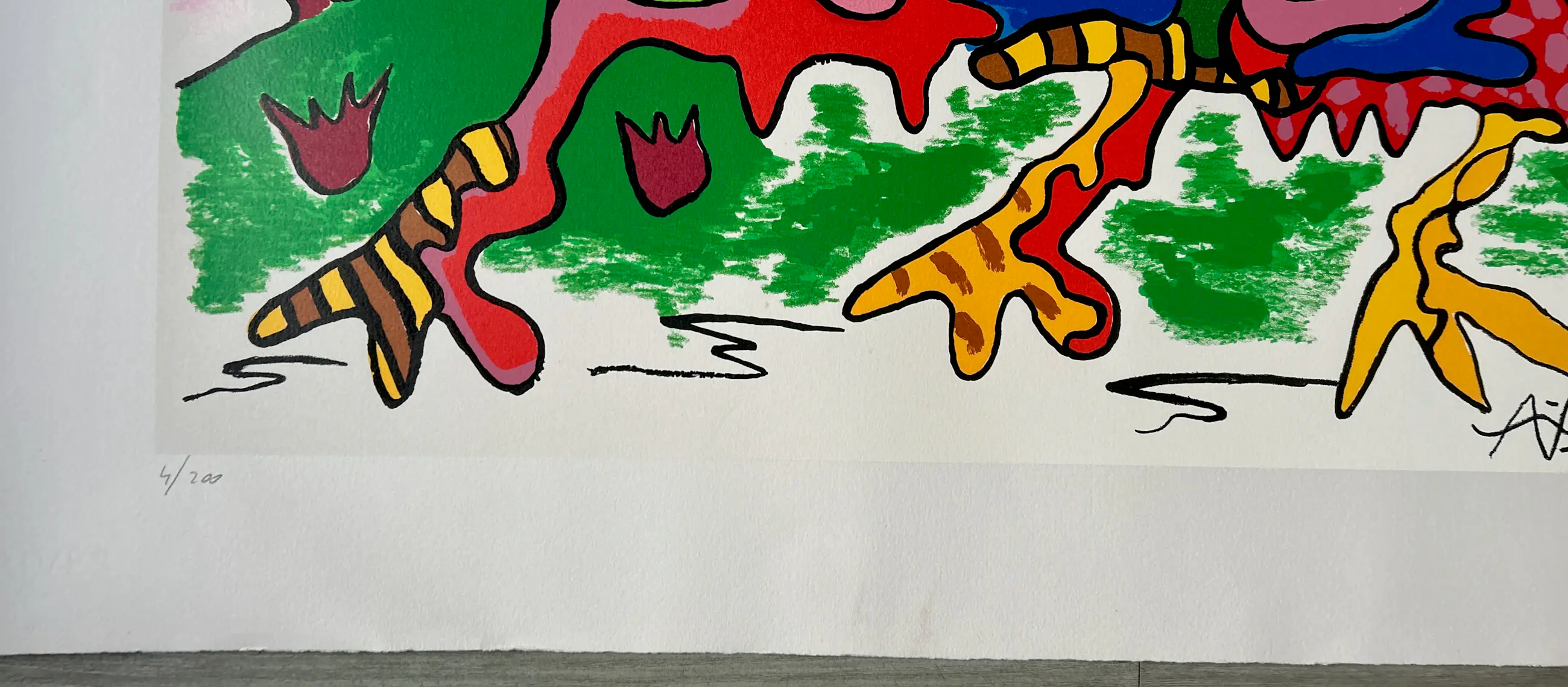 Conditie: zeer goed. Onderkant vel en rechterkan vel heeft deukjes, zie foto's. Oplage: 4/200. Afmeting: afbeelding 60 x 80 cm. Wordt verzekerd verzonden in een stevige kartonnen koker.