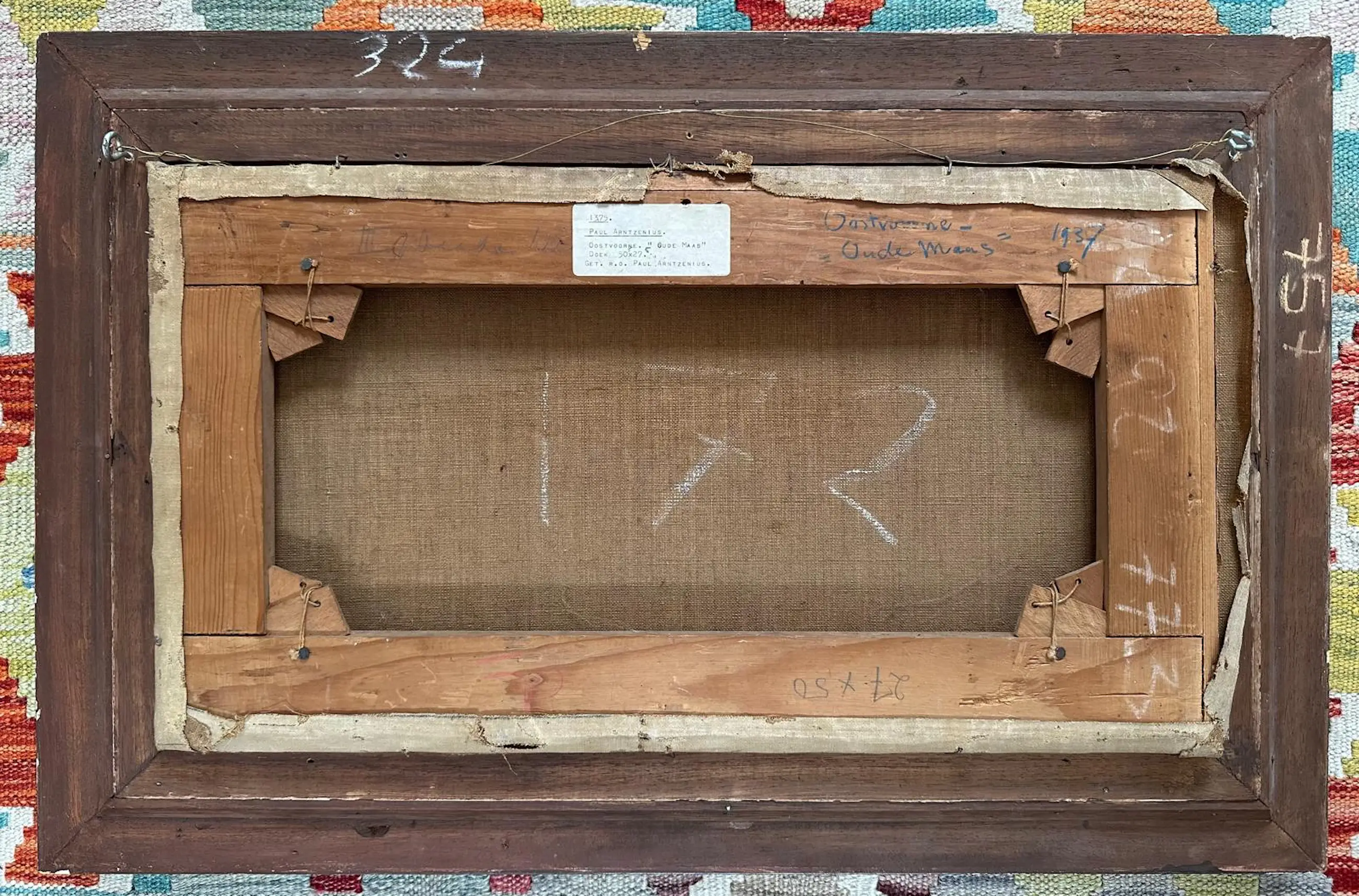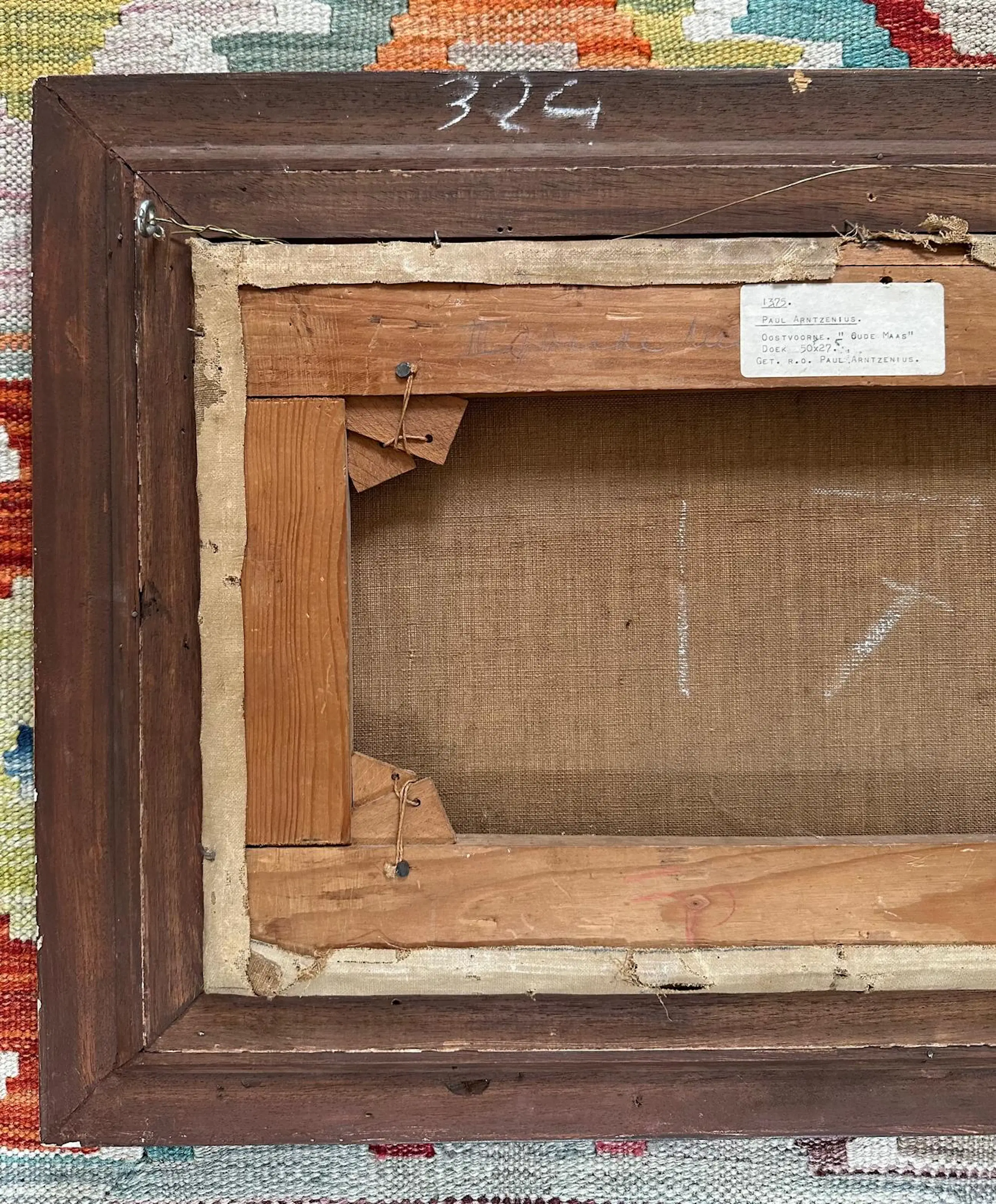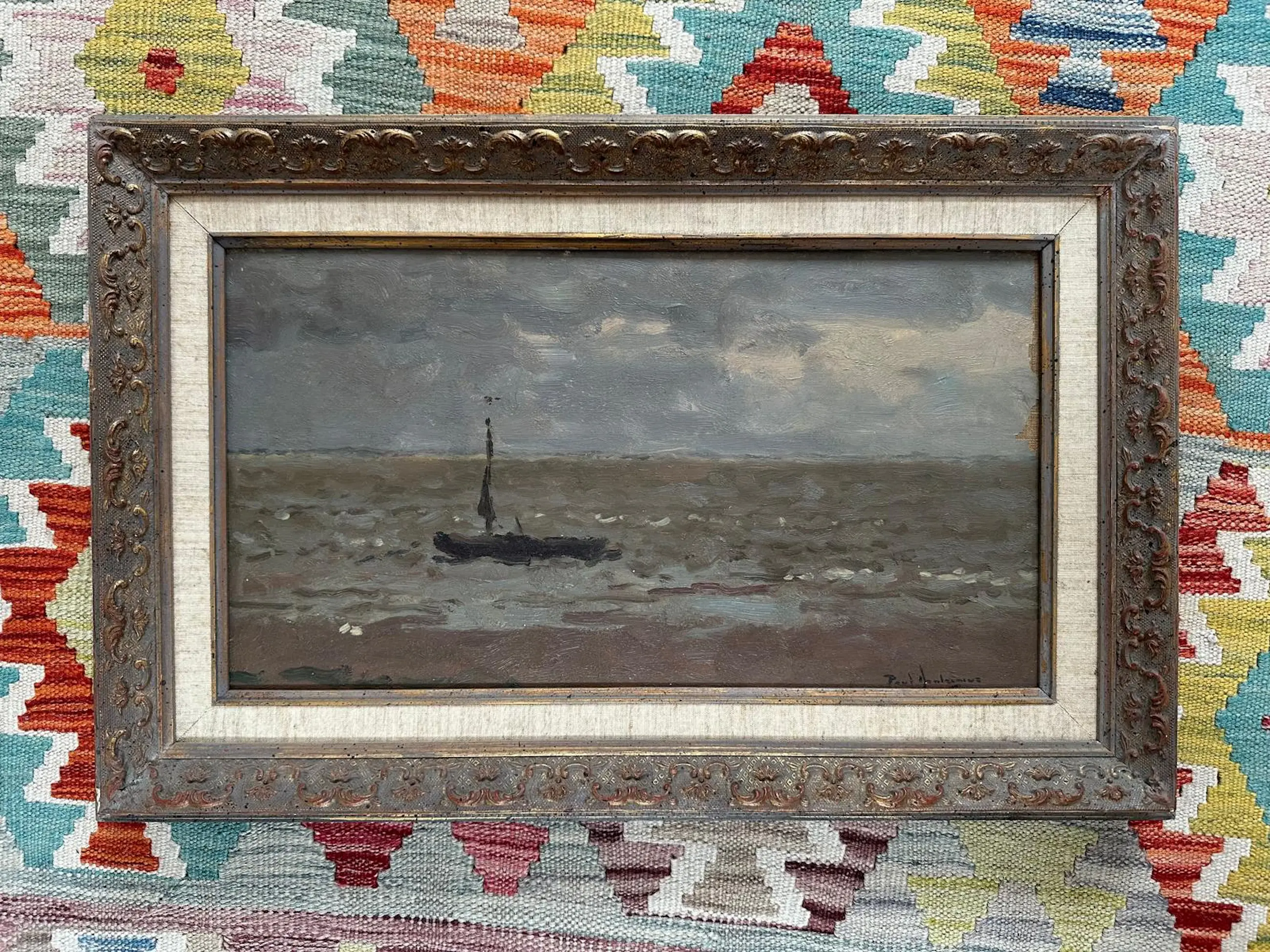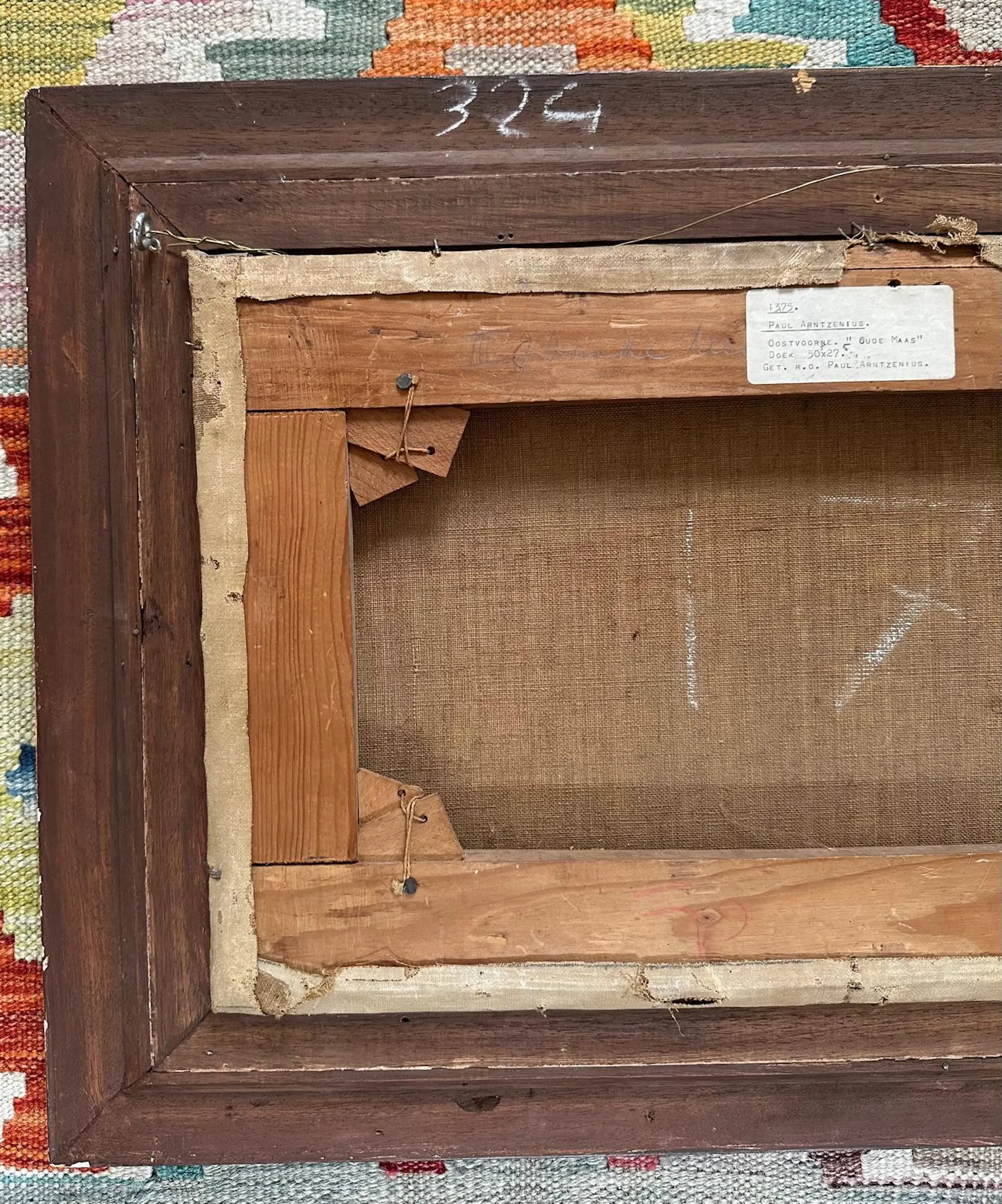 Aan de rechterkant van het schilderij is verfverlies te zien. Dit is helaas ontstaan bij het verhuizen. Vakkundig zou het gecamoufleerd kunnen worden door een passe partout, waarbij de signatuur zichtbaar blijkt. Uiteraard verdisconteerd in de prijs.