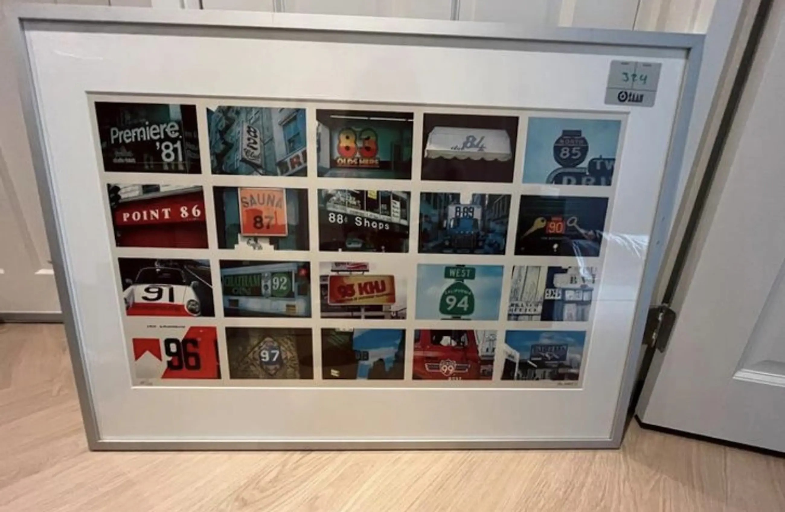 Originele rasterdruk van Paul Baars, voorstellende Amerikaanse stedelijke landschappen met verkeersborden en architectuur met altijd een getal oplopend van 81 t/m 100. Gesigneerd en ingelijst. Oplage 102/150. Gekocht op een kunstveiling maar helaas toch te groot voor beoogd gebruik.