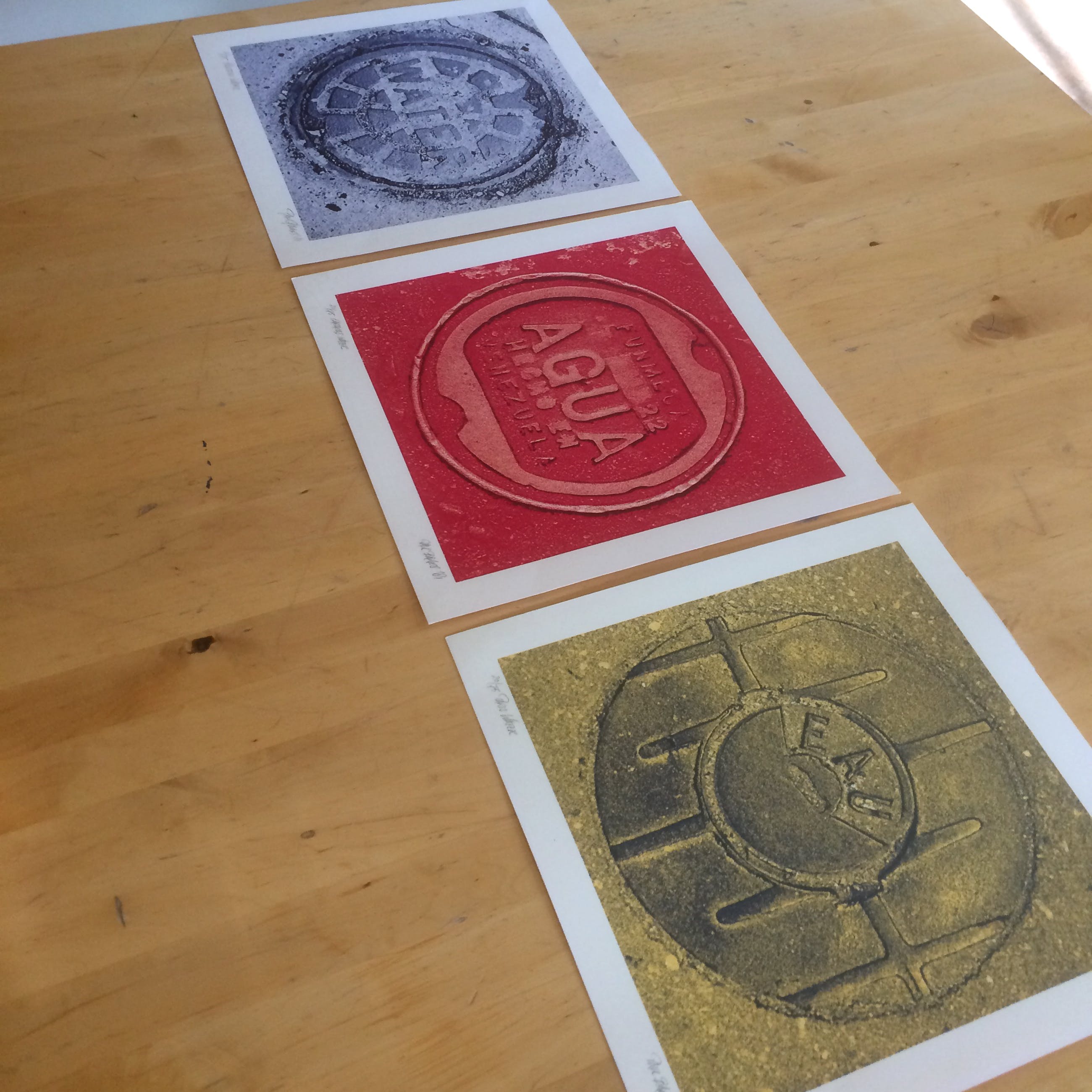 Dit kavel bevat drie originele litho's uit 1981 van deksels van de waterleidingen in Los Angeles, Rio de Janeiro, Parijs en Caracas. Bij elkaar een markante serie.