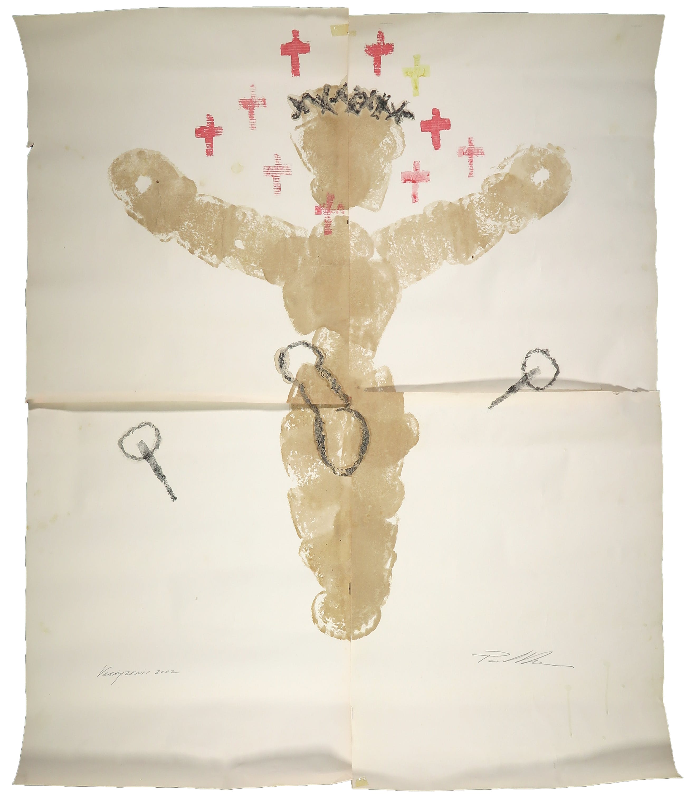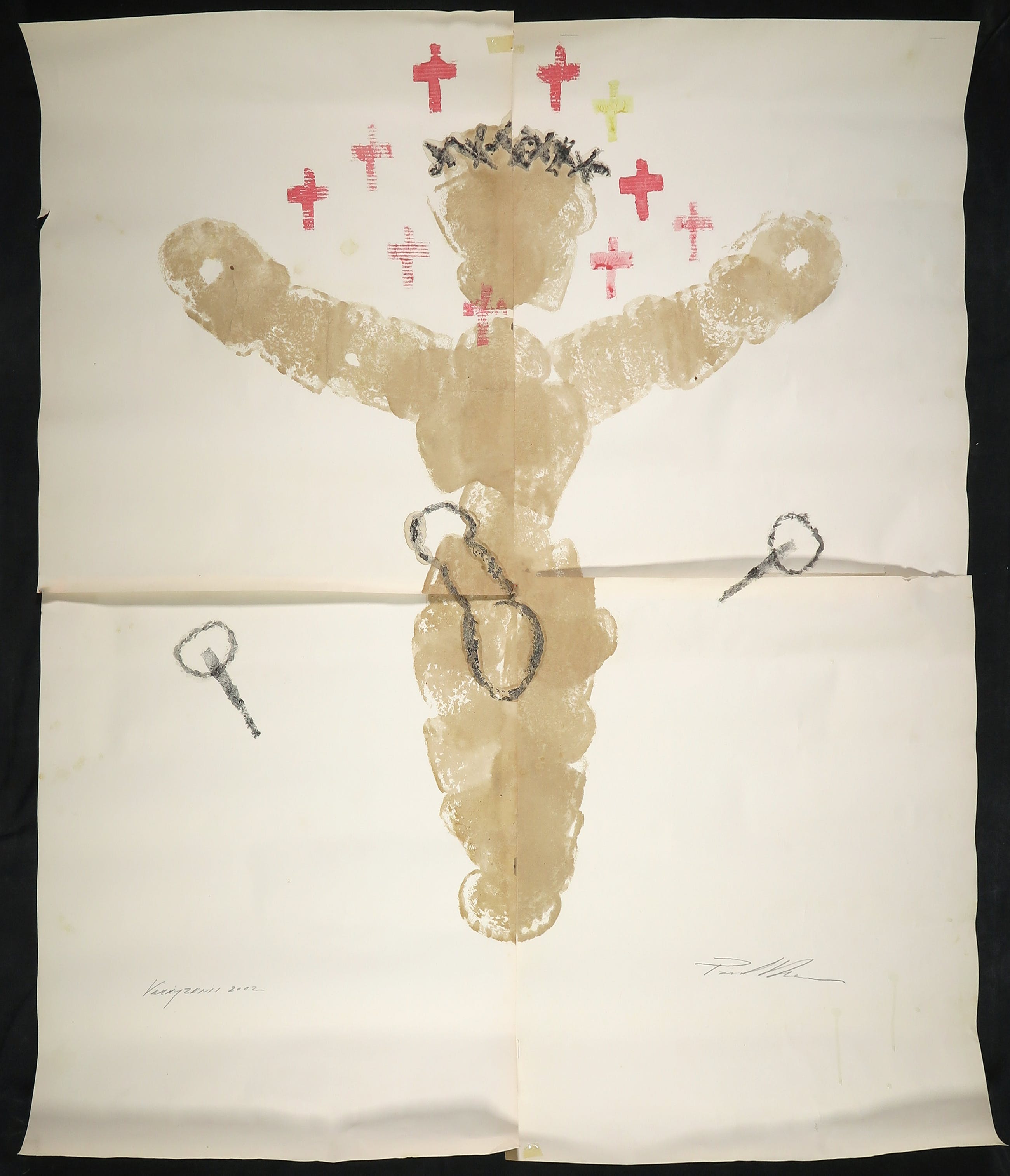 Werk bestaat uit vier losse bladen. Bovengenoemde afmetingen zijn van ieder los blad. De bladen moeten elkaar overlappen als de voorstelling moet aansluiten.