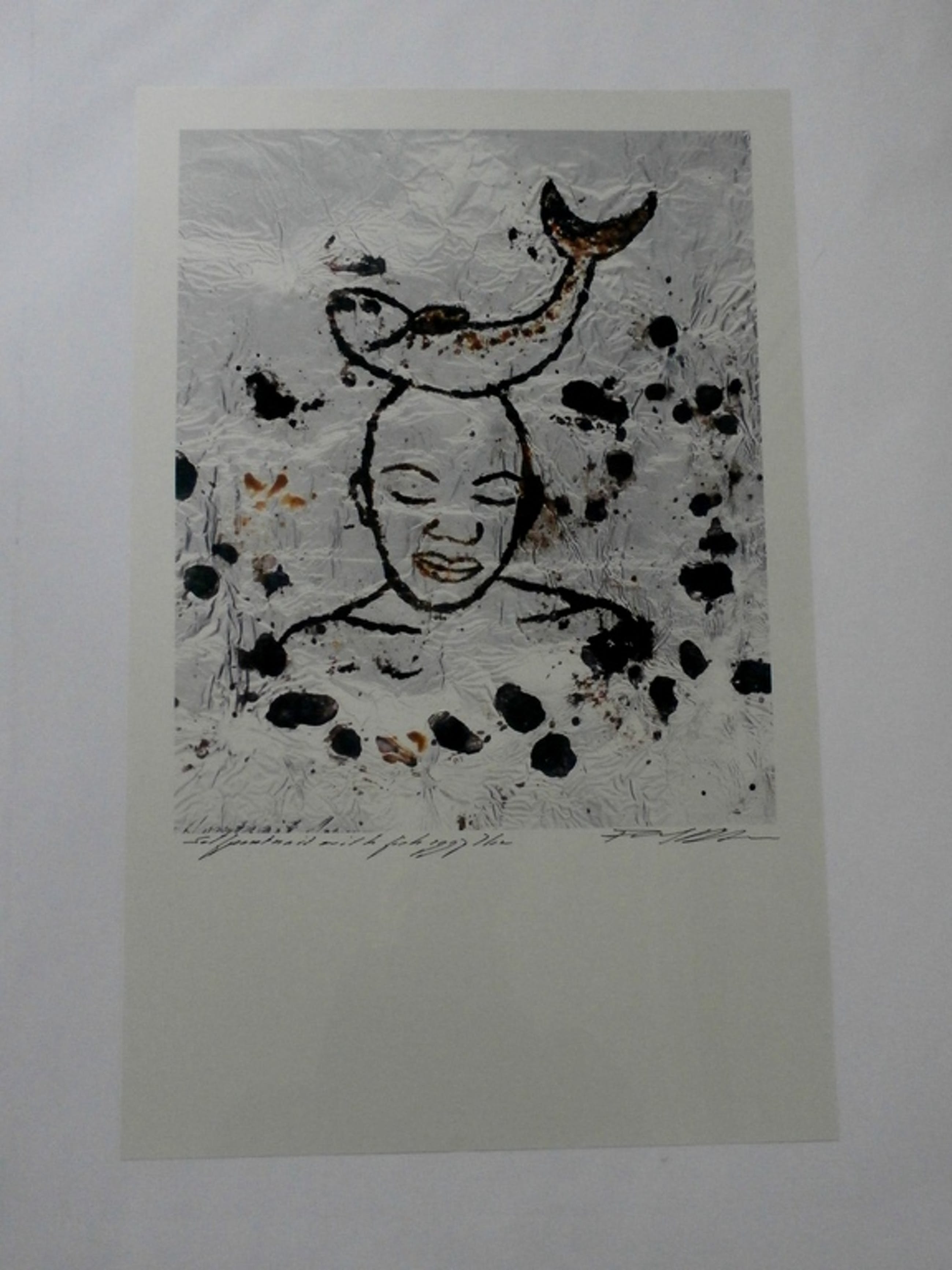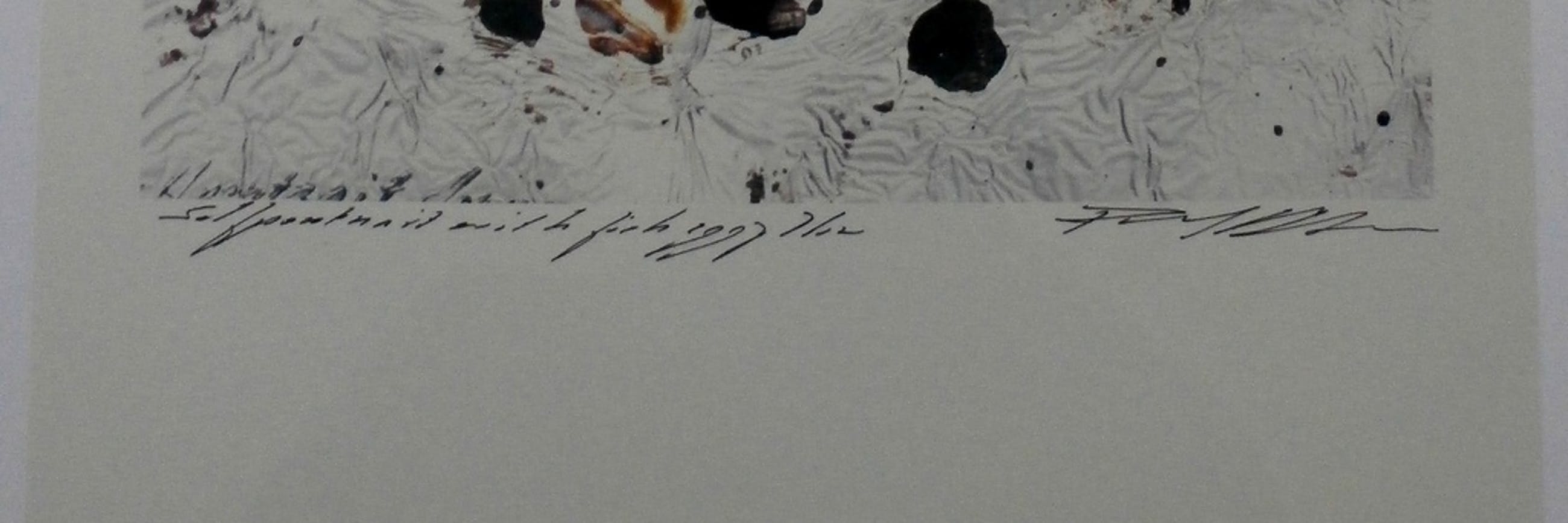 Gelatine zilverdruk (Foto) van Paul Blanca uit 1997. Titel:Selfportrait with fish. Nummer: 7/12. Gesigneerd: rechts onder