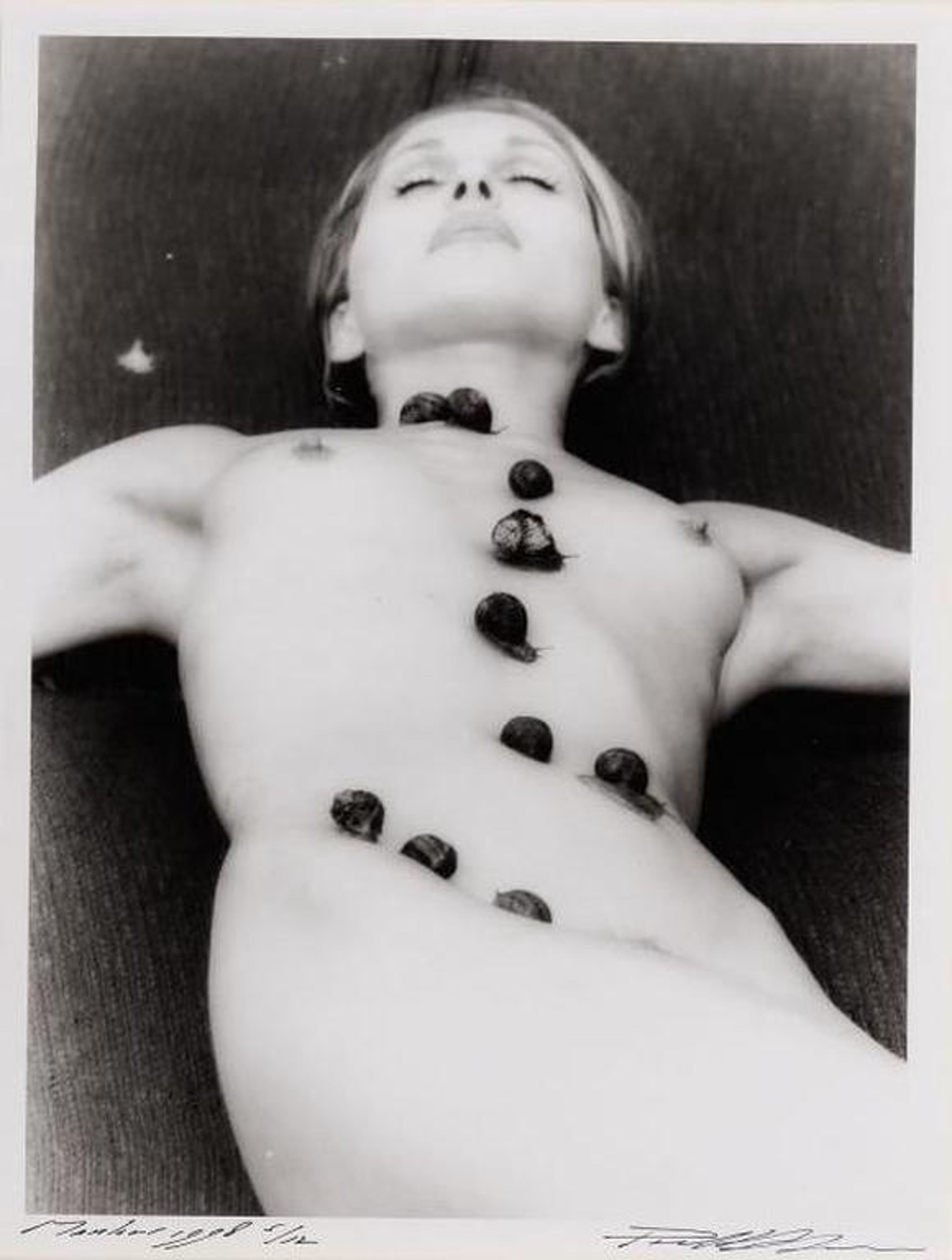 Marlene , 1998. Gelatine zilver print, met de titel , gedateerd en genummerd ' 5/12 ' ( linksonder ), ondertekend 'Paul Blanca ' ( rechtsonder) ; ingelijst achter glas . Goede conditie. Uit de serie ' Marlene con caracoles ' . Afmetingen : Afbeelding formaat 38 x 28 cm.