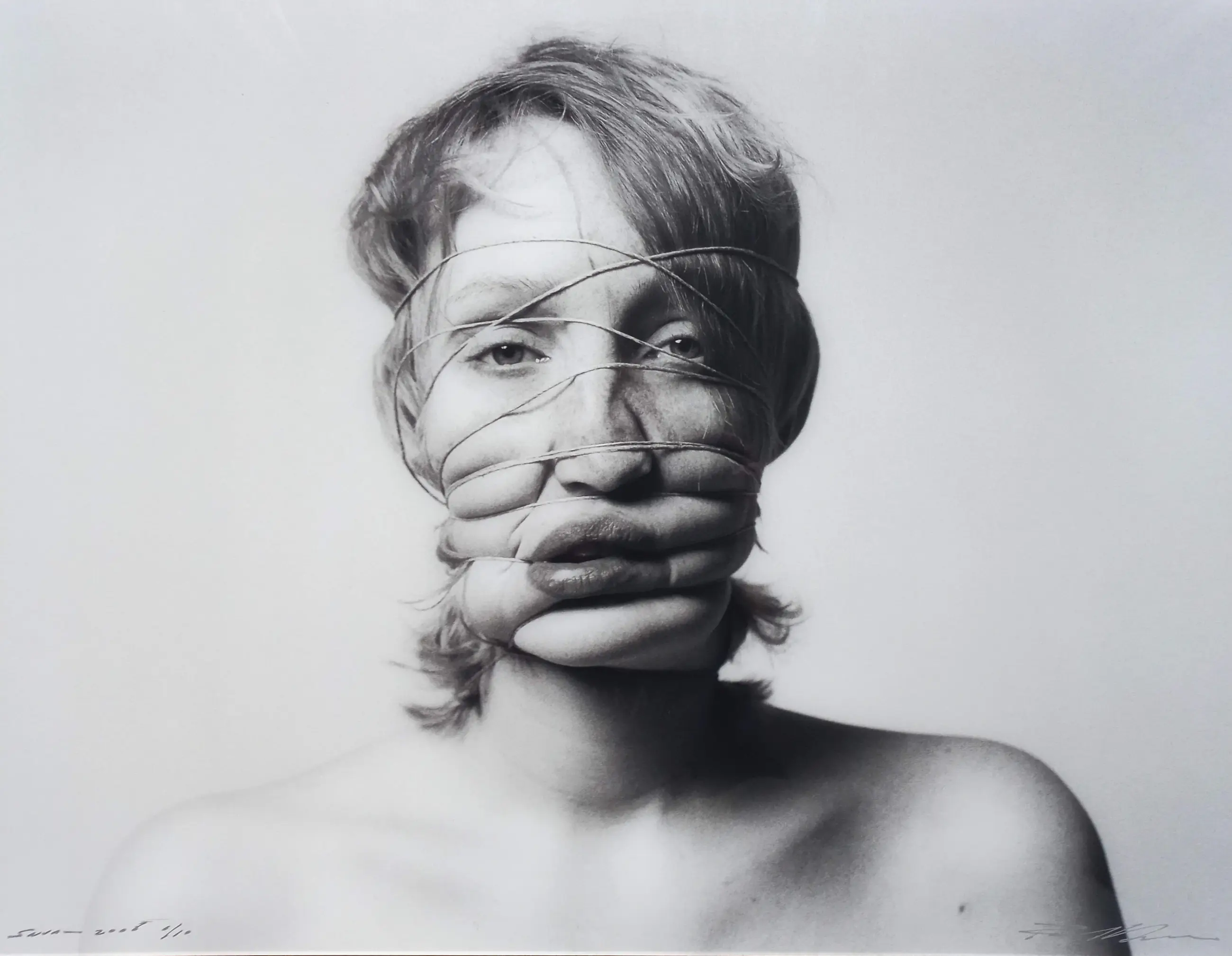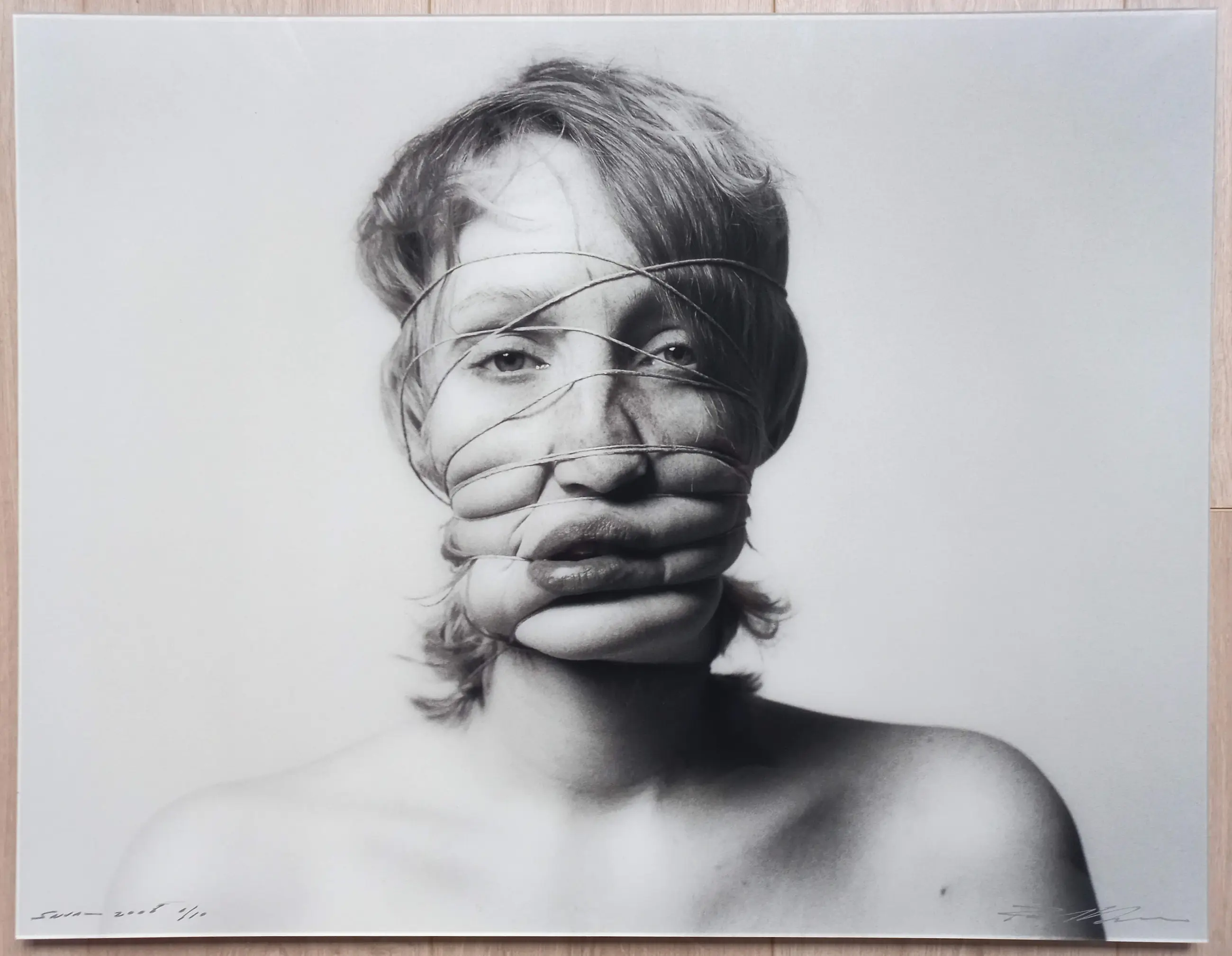 Karakteristieke foto van een ‘bondaged’ Susan door Paul Blanca. Lambdaprint op dibond, als één geheel gemonteerd achter plexiglas, met aluminium bevestigingsframe achterop zodat het werk ogenschijnlijk zwevend voor de muur komt te hangen. Met zilveren marker gesigneerd, getiteld, gedateerd (2006) en genummerd (6/10). In zeer goede conditie.