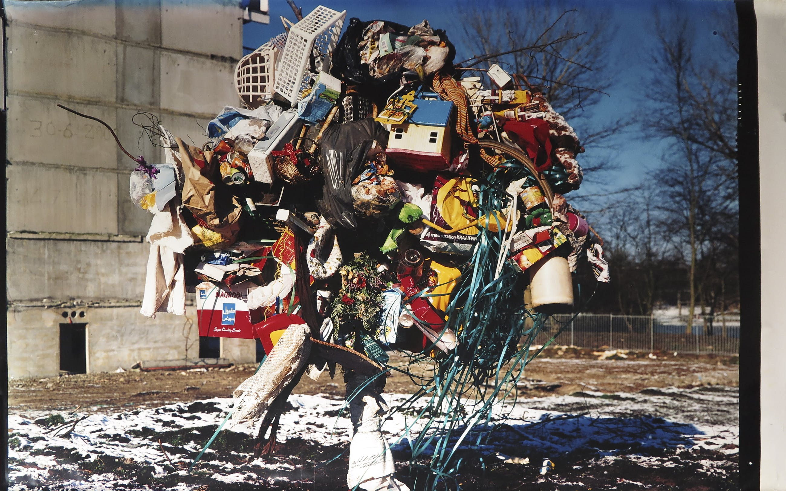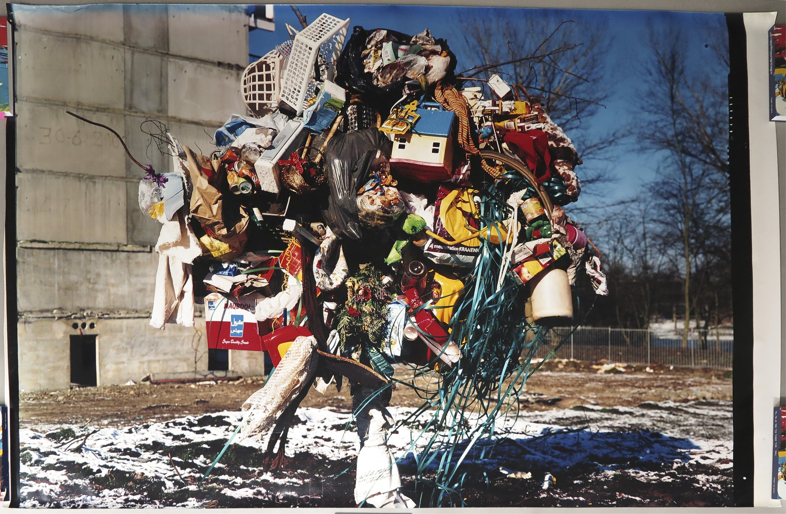 Zeer grote foto van Paul Blanca van zijn Garbage Tree, een thema waar hij meerdere werken rond uitbracht.
