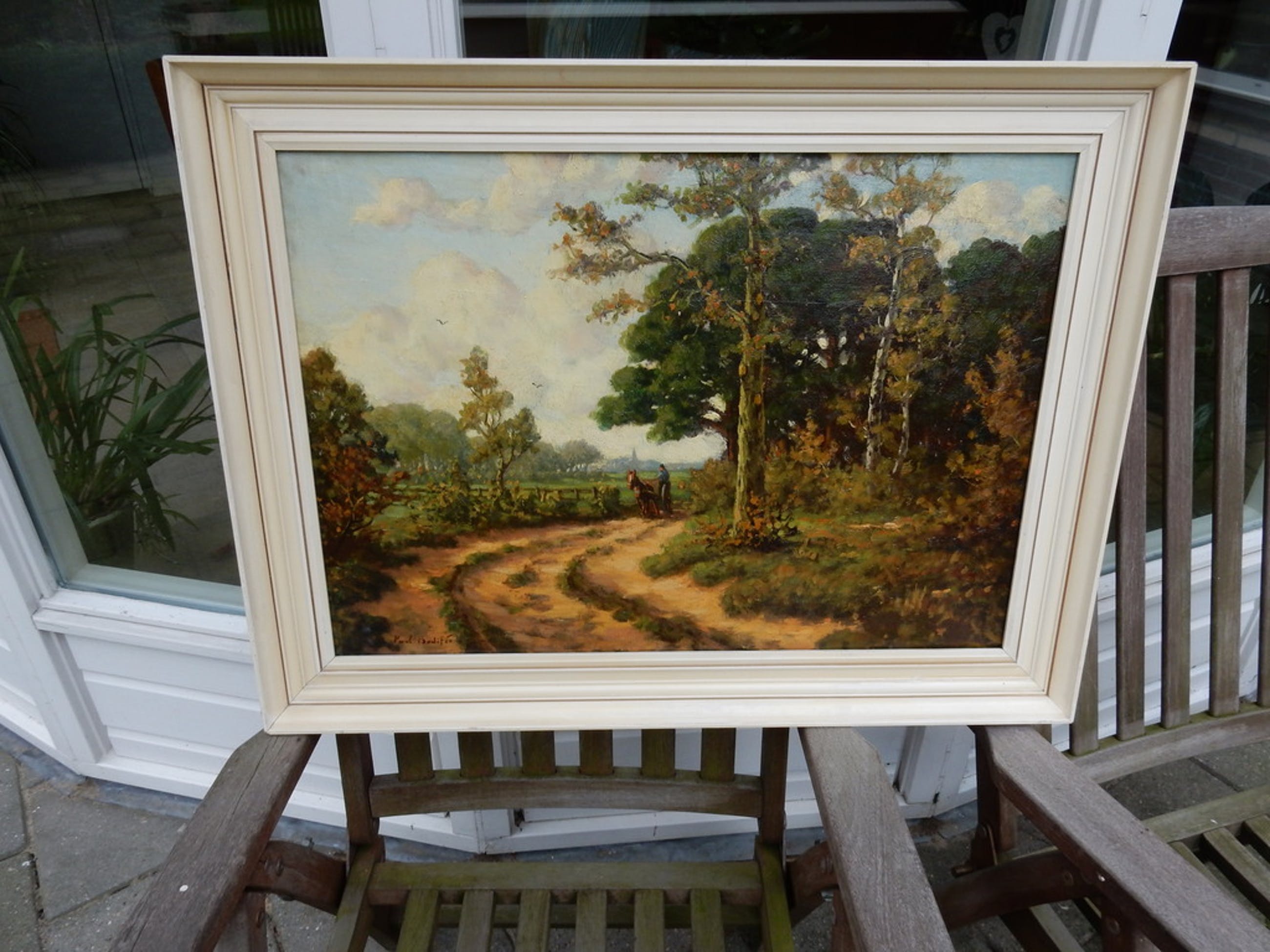 dit werk: Landschap, olieverf op doek, l.o. met naam gesigneerd.