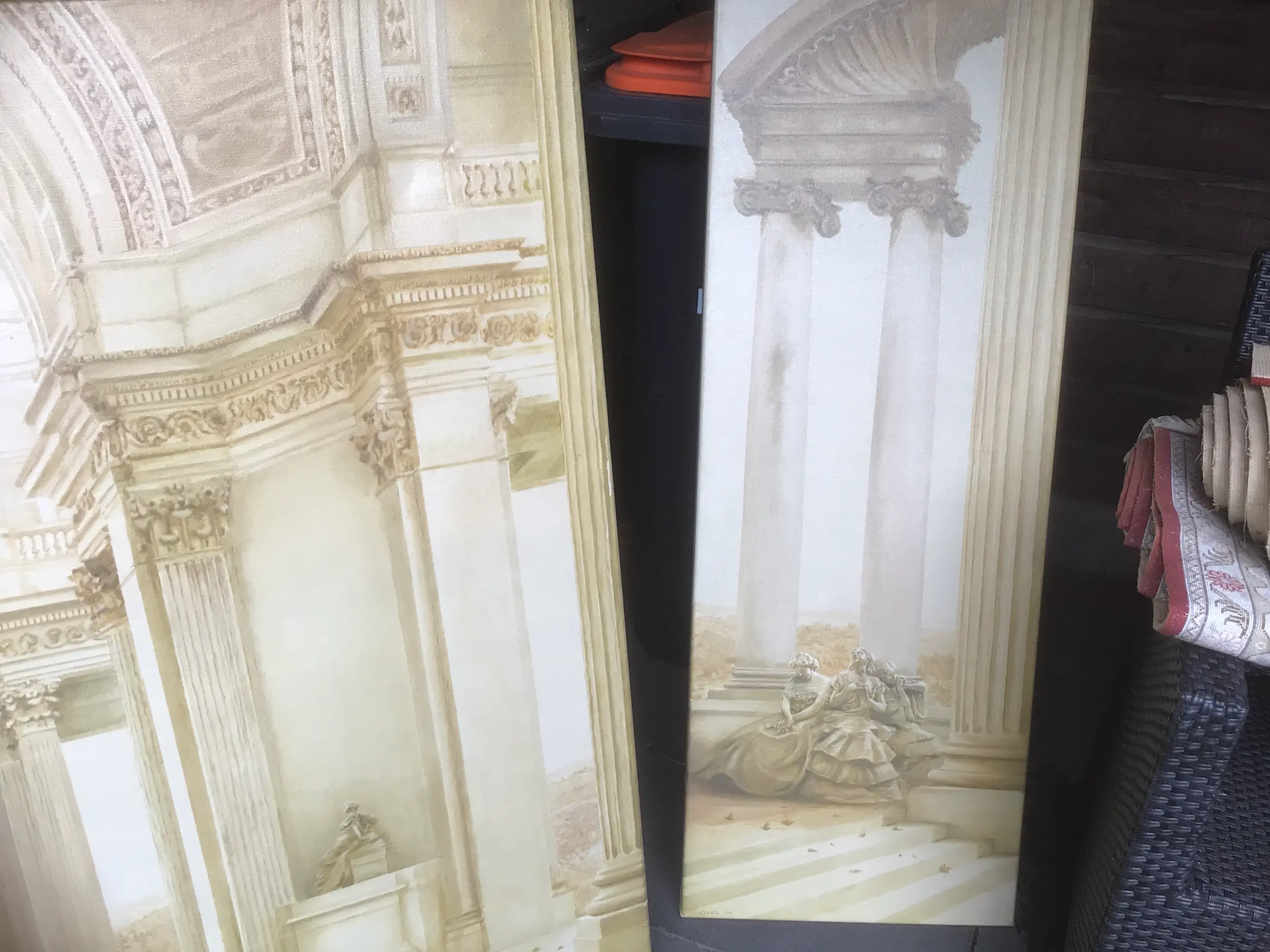 Het is een drie Luik geschilderd door Paul Boelens. Met drie dansende vrouwen personen erop in een soort Romeins paleis.