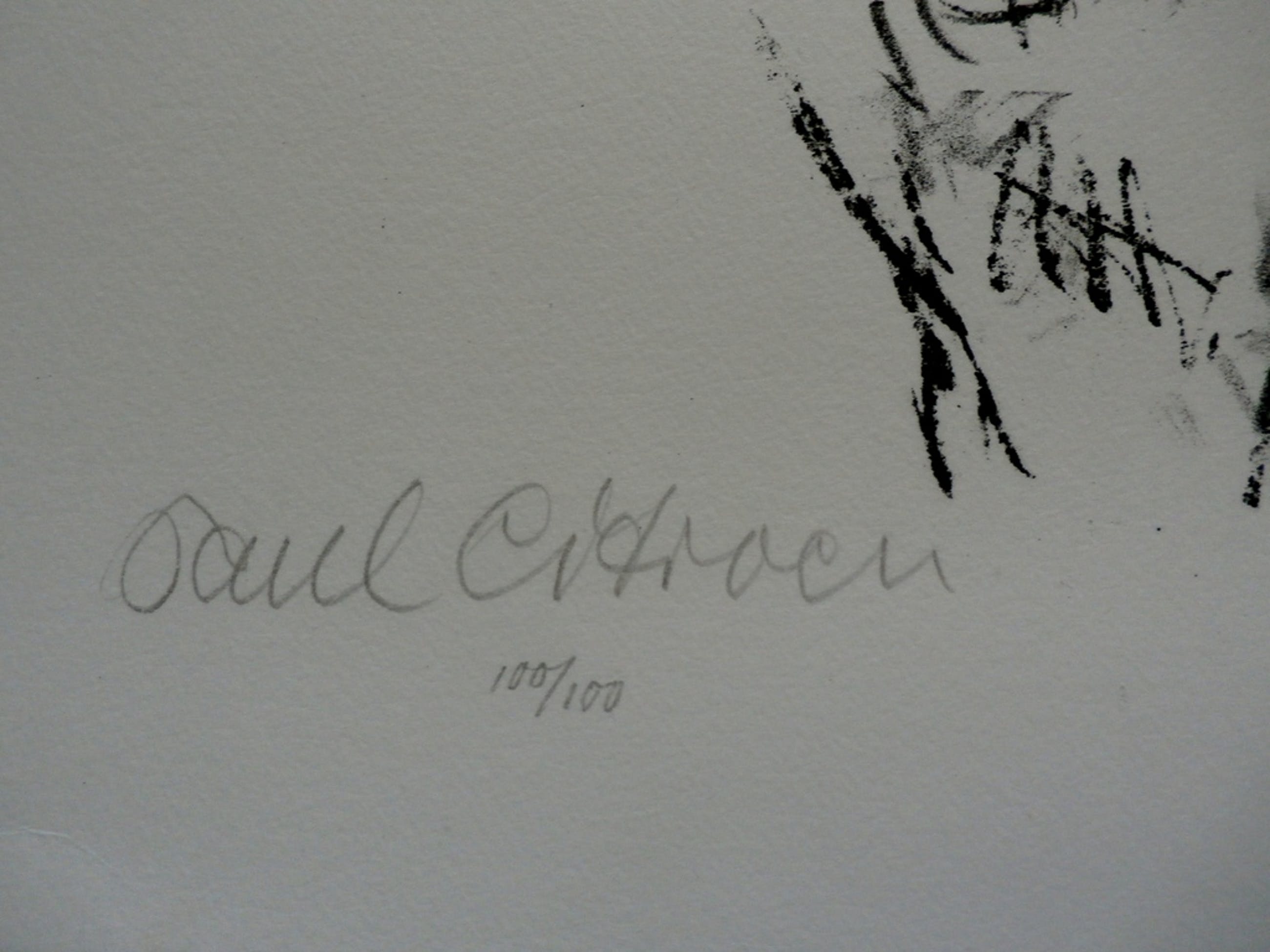 Litho van Paul Citroen: zelfportret met dochter. De litho is onderaan gesigneerd, met potlood, door de kunstenaar. Nummer: 100/100. Afmetingen blad: h57 x b77 cm. Jaar: 1971. De authenciteit van dit werk wordt volledig gegarandeerd. Een certificaat van echtheid kan , op aanvraag, worden meegestuurd.