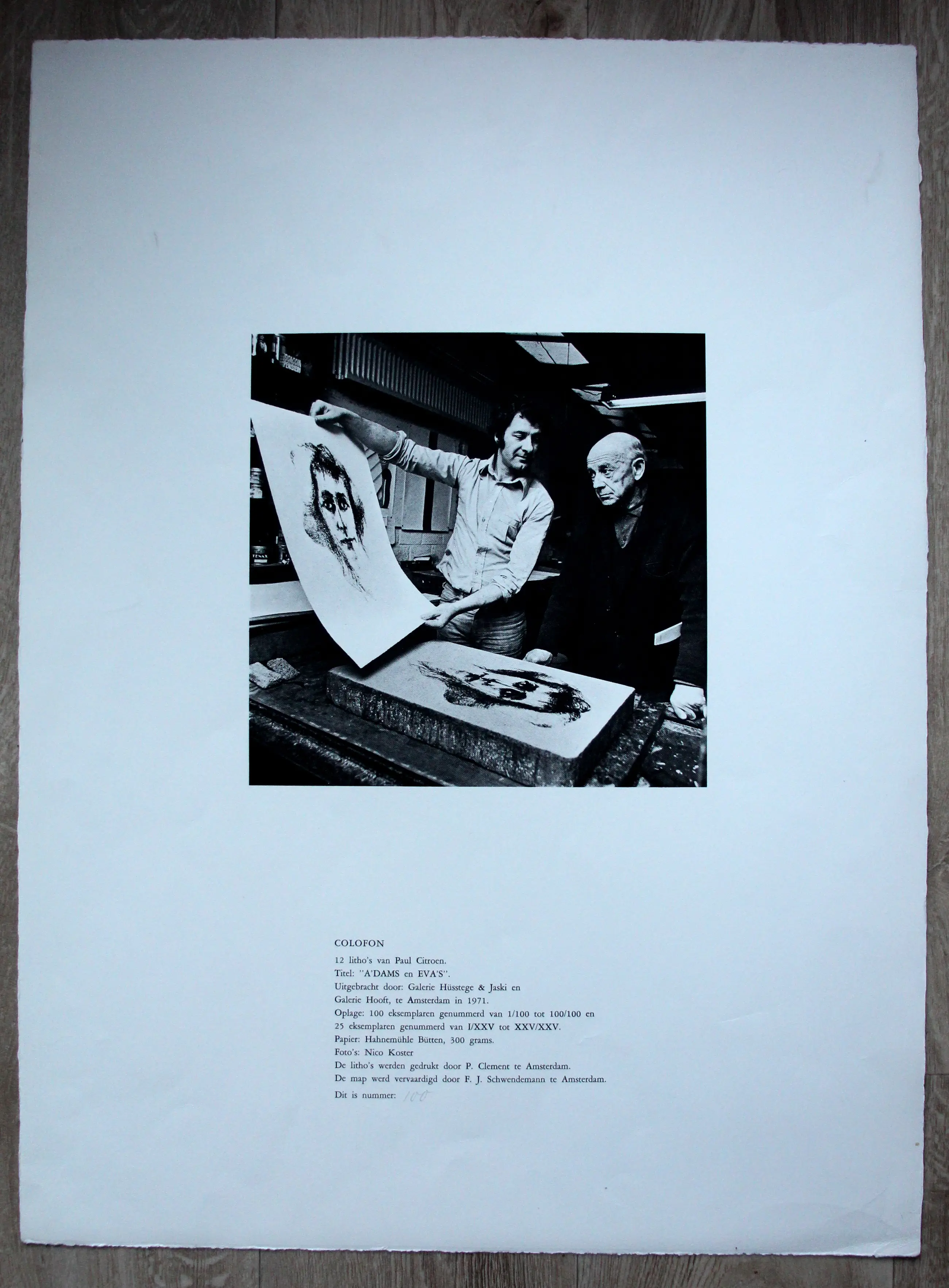 Voorblad van de portfolio A'dams en Eva's van Paul Citroen. Dit betreft nummer 100.