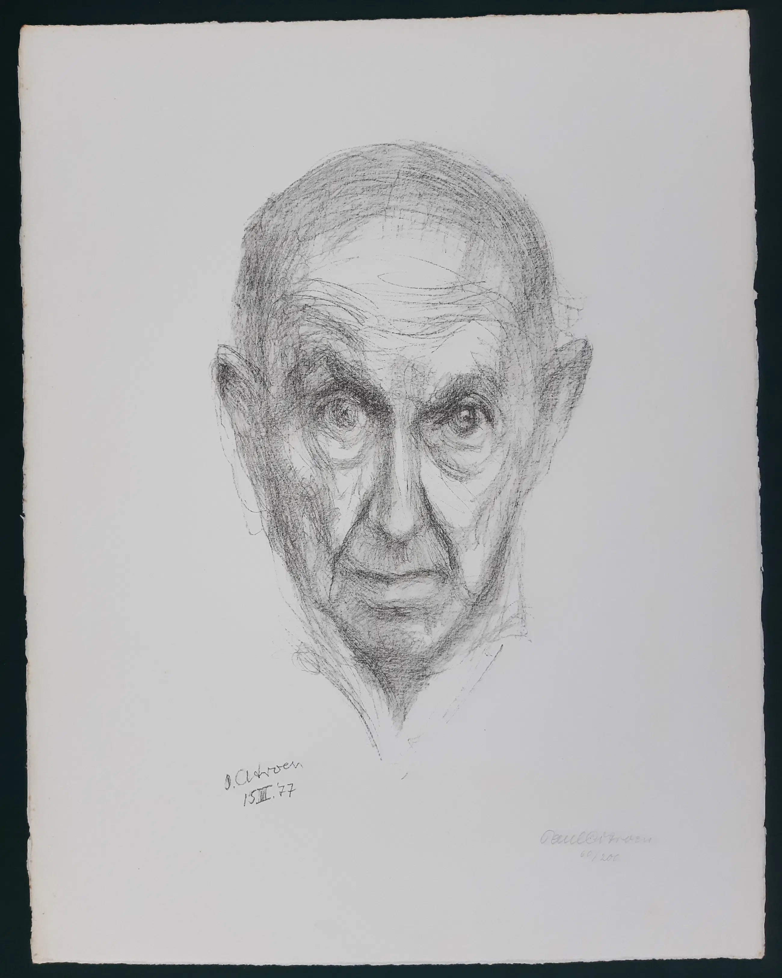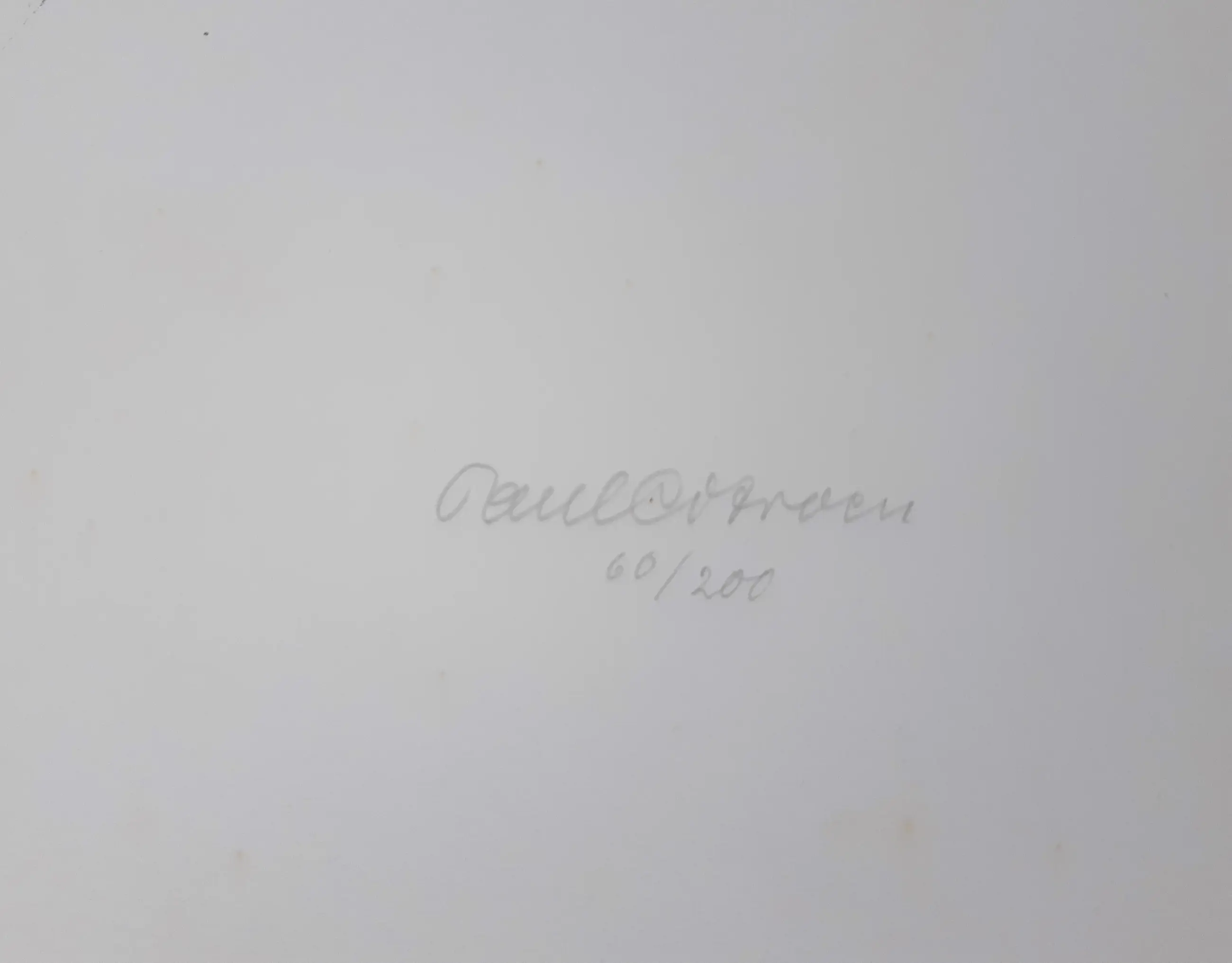 Indringende blik van Paul Citroen. De litho is met potlood gesigneerd en genummerd, eveneens in druk gesigneerd en gedateerd. De conditie is uitstekend, nooit ingelijst geweest.