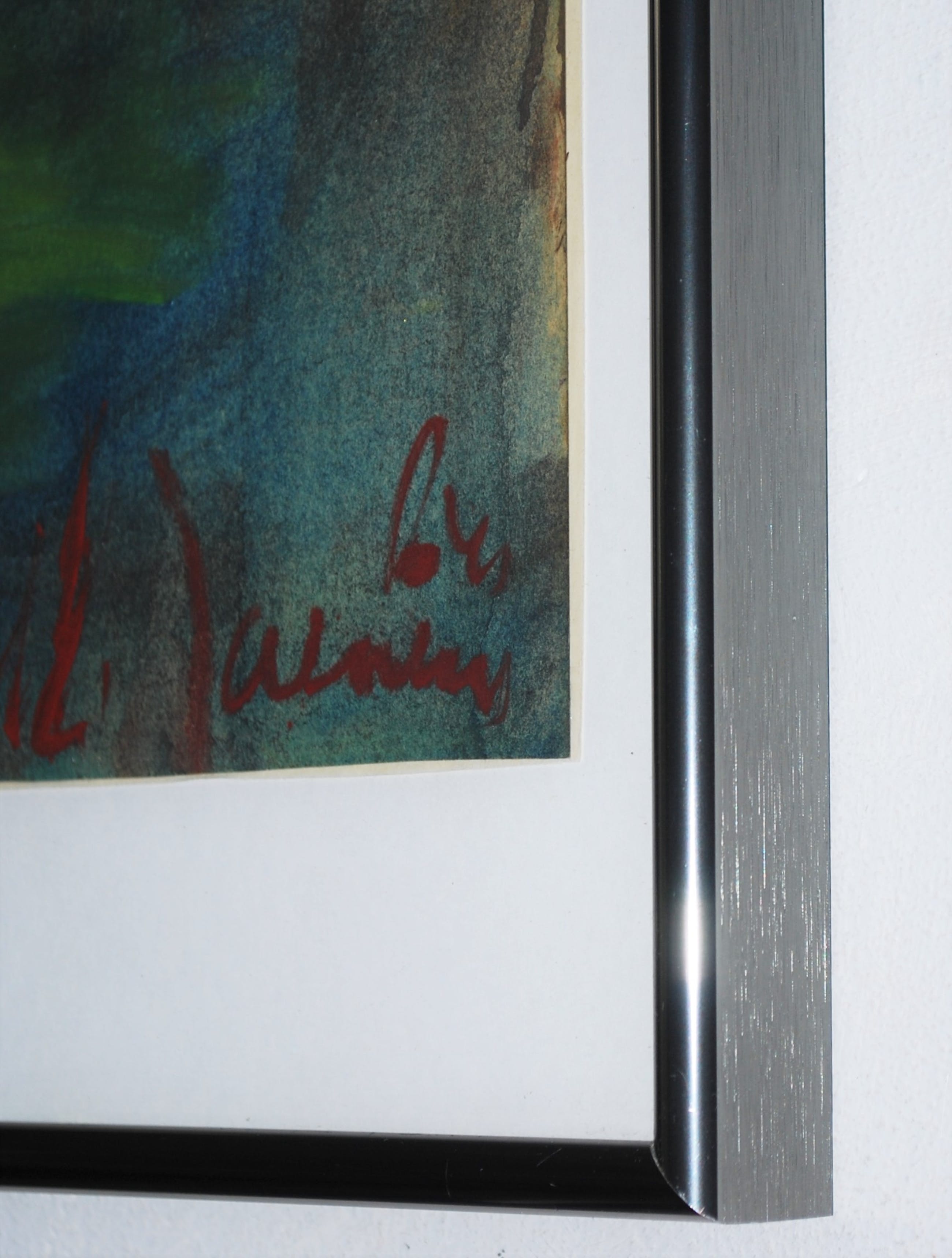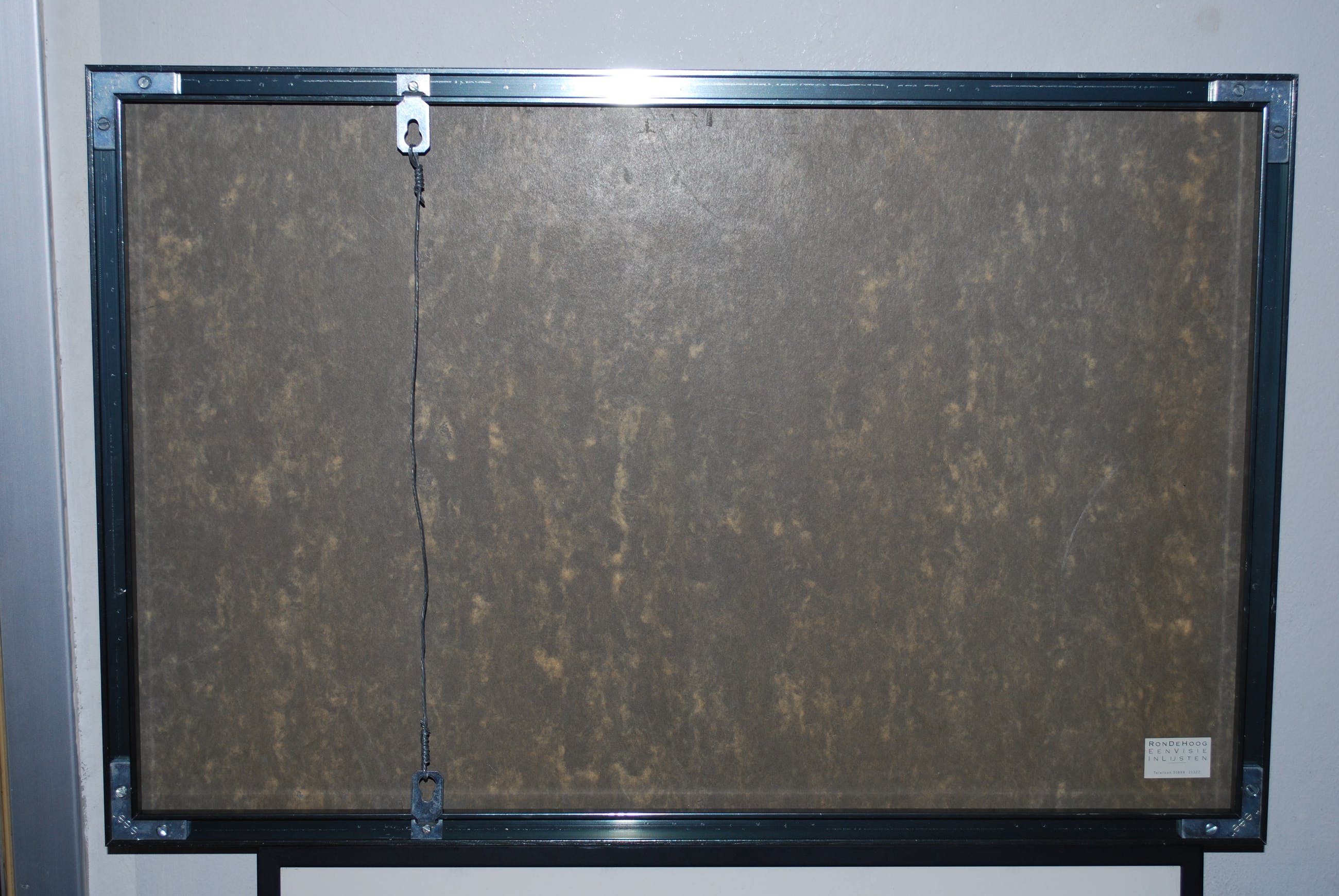 Los blad, met 2 plakkers bevestigd op karton achter glas
