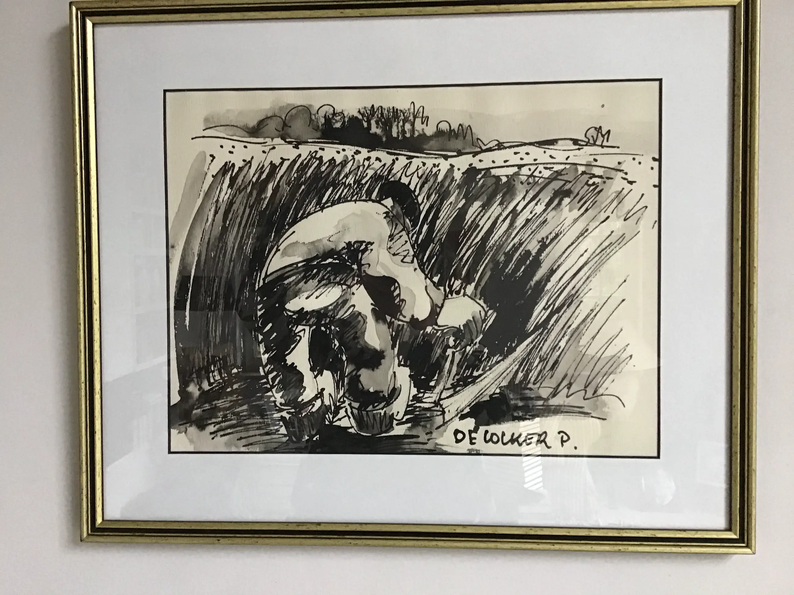 Fraai werk uit de vroege expressionistische periode van Paul De Cocker Origineel werk rechtstreeks uit de atelier van de kunstenaar Inkttekening op kwaliteitsvol dik papier Handgesigneerd door de kunstenaar Het werk zit achter glas en is ingekaderd De foto’s maken integraal deel uit van de beschrijving Enkel afhalen wegens fragiliteit en glas