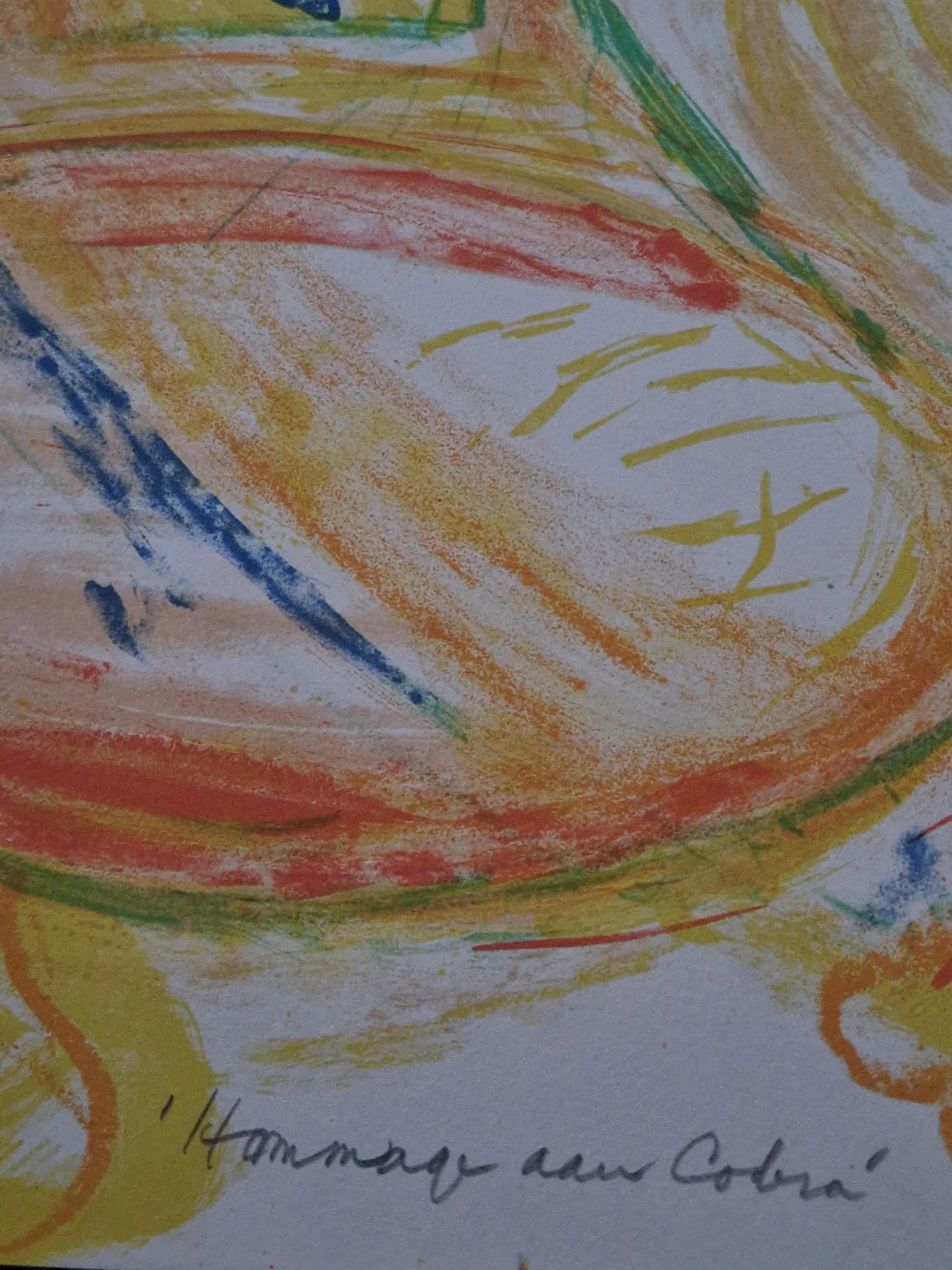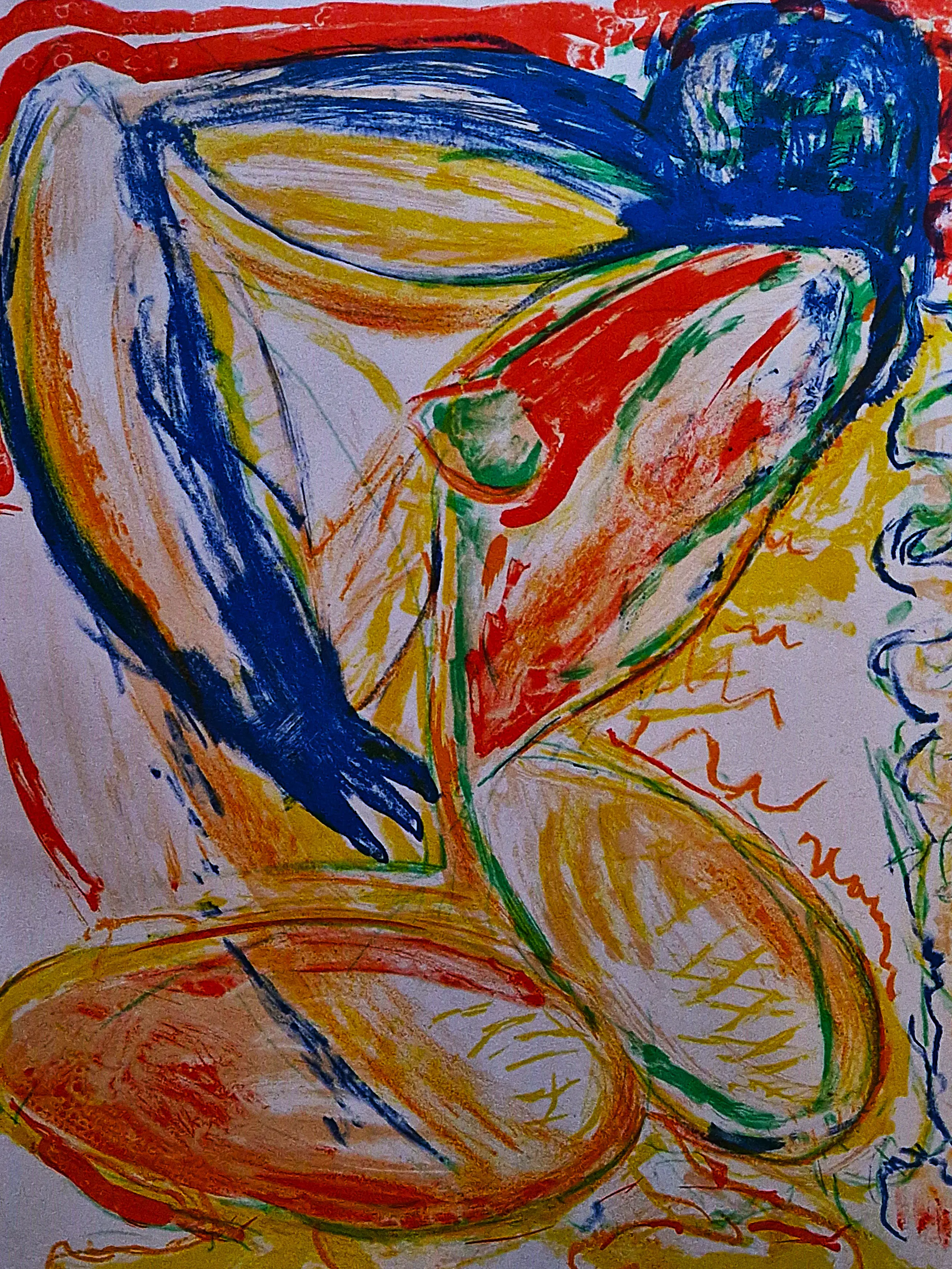 - Mooi, karakteristiek werk van Paul de Lussanet "Hommage aan Cobra". Kleuren Lithografie op papier, met potlood gesigneerd, gedateerd (’89), getiteld en genummerd (190/250). In zeer goede conditie.