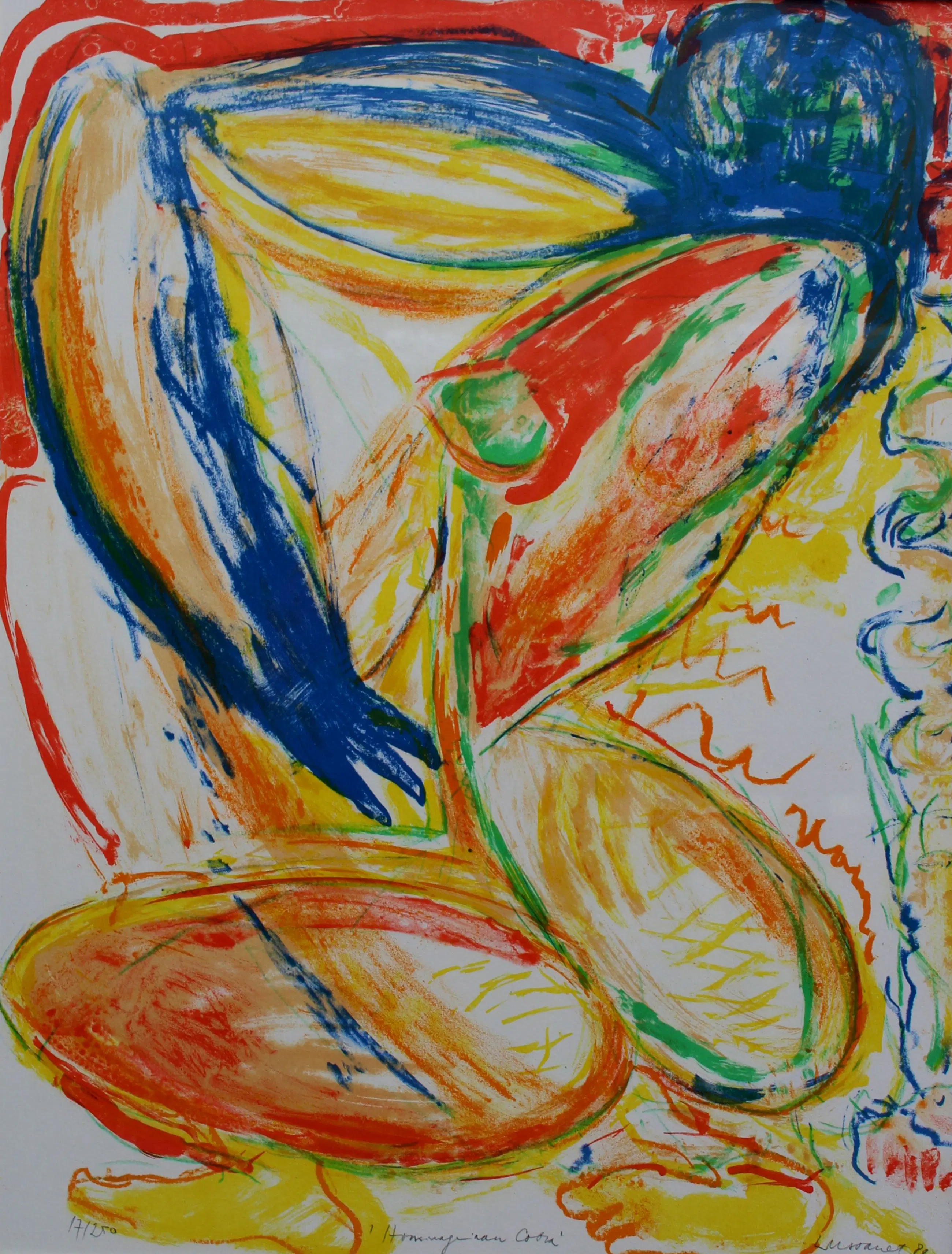 Paul de Lussanet - Ingelijste zeefdruk: 'Hommage aan Cobra' - 1989