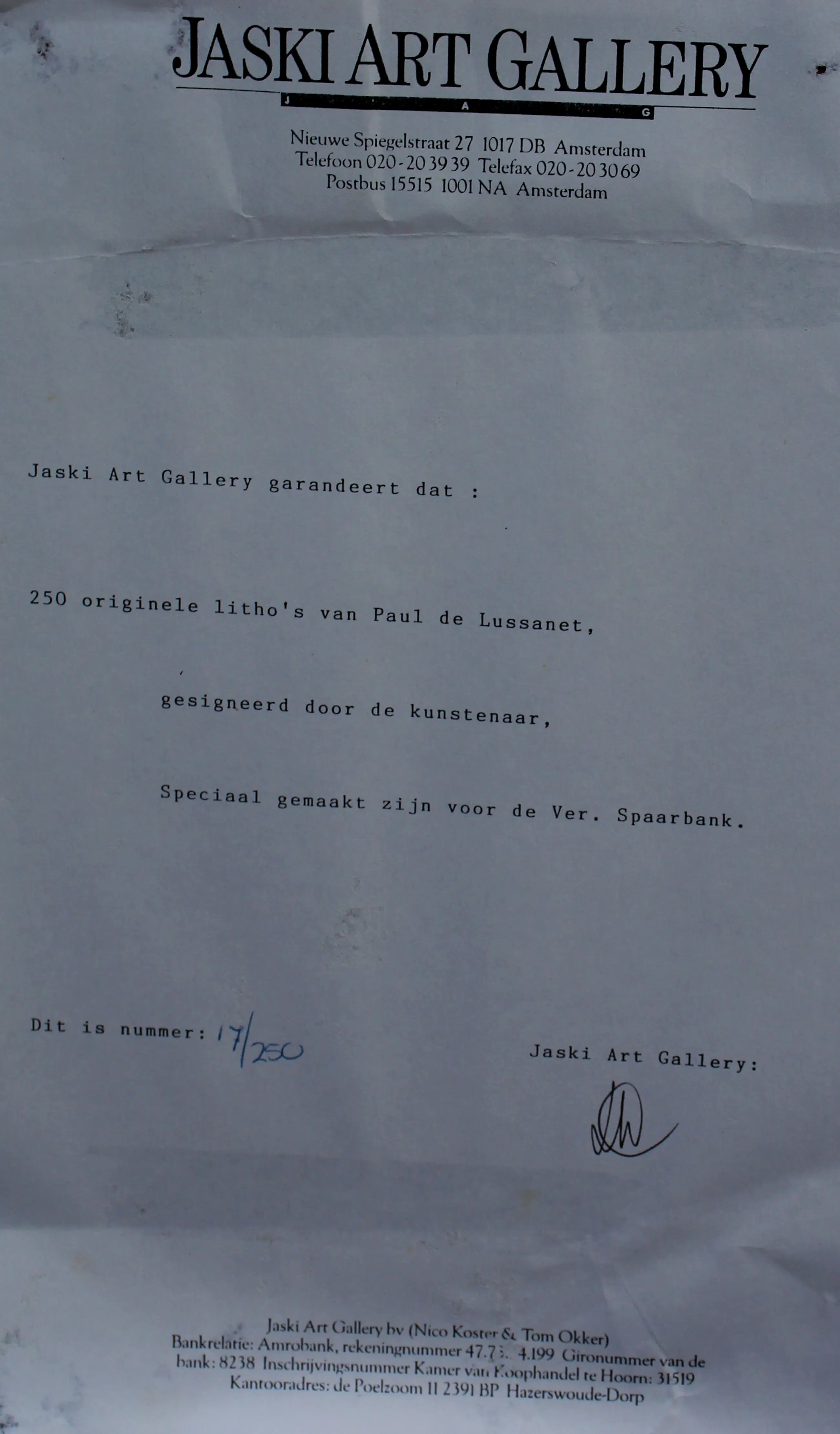 De verkoper neemt de volledige verantwoordelijkheid voor dit item. Kunstveiling biedt slechts het platform bij deze transactie, welke direct met de verkoper afgehandeld dient te worden. Meer informatie .