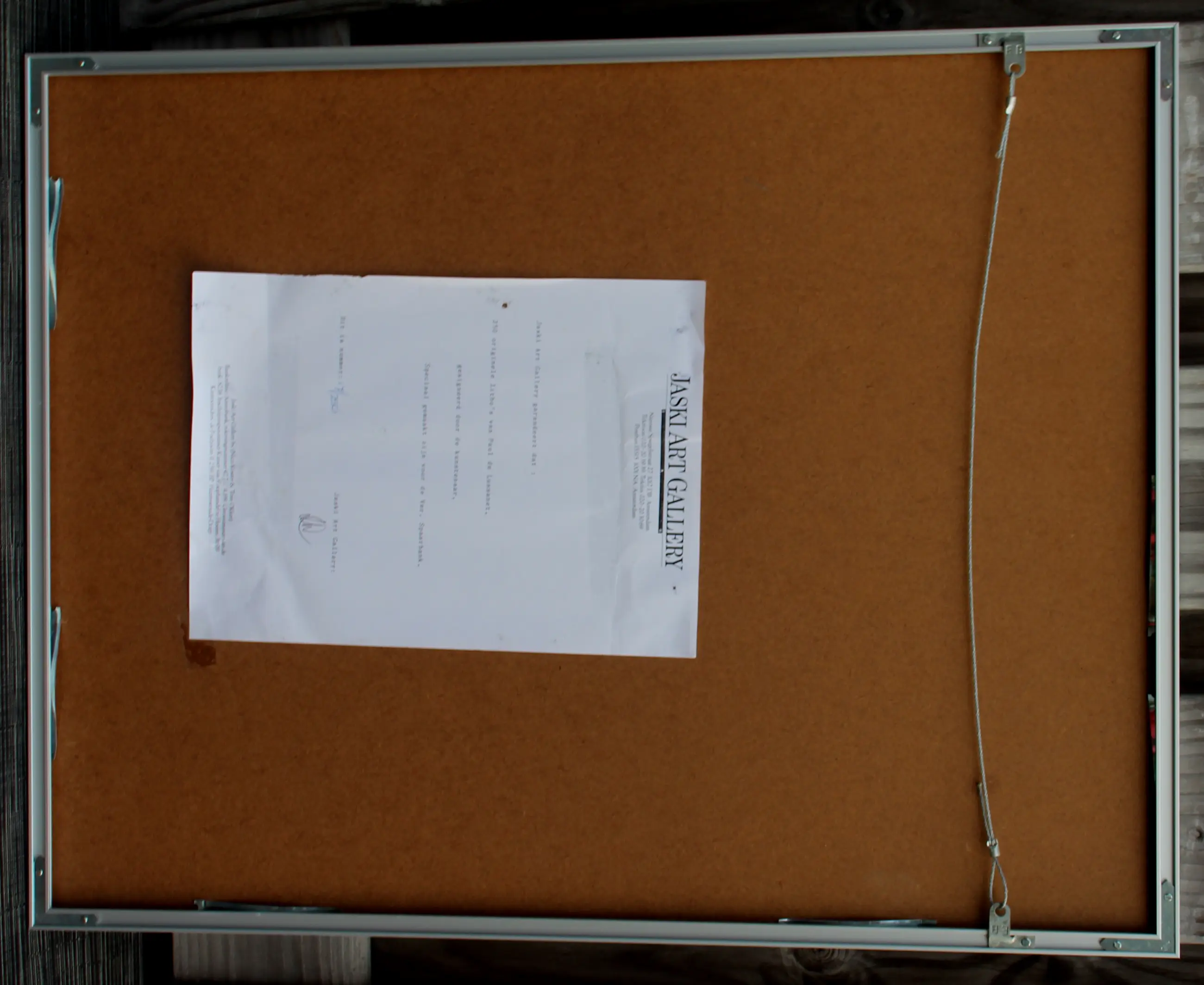Passe-partout/lijsten: Beschadigingen aan een lijst worden niet beschreven. Indien het werk achter glas is ingelijst en het glas gebroken is, zal dit wel vermeld worden. Passe-partouts worden op geen enkele manier gegarandeerd en ook niet altijd meegezonden.