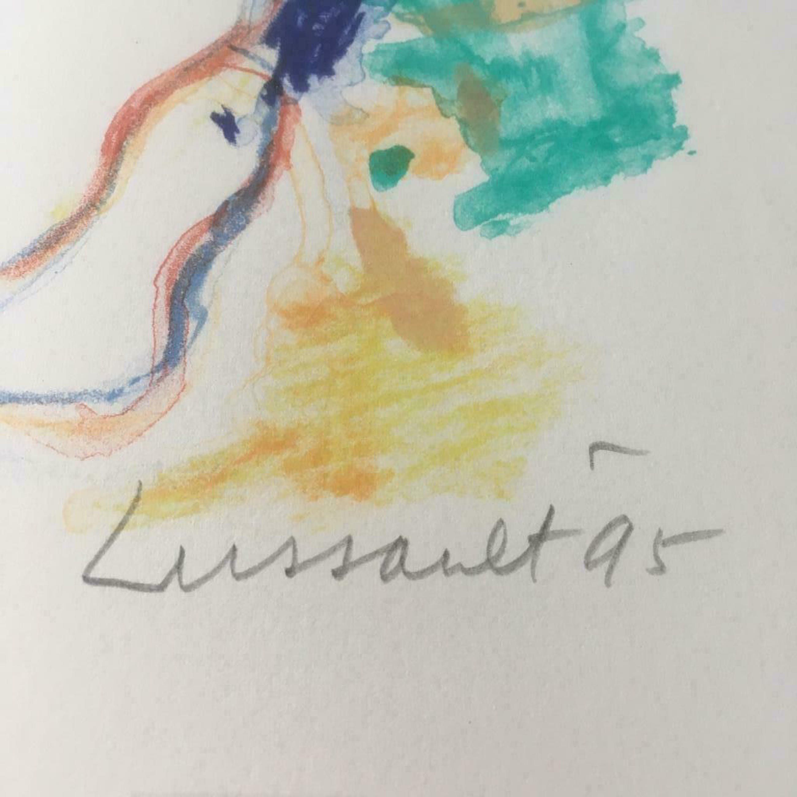 Zeefdruk van Paul de Lussanet (Laren 1940), beeldmaat 55 x 42 cm, gesigneerd Lussanet '95 , titel Naakt met vleugeltjes, genummerd 177/250 in potlood, in glaslijst met passe-partout 80 x 63 cm.
