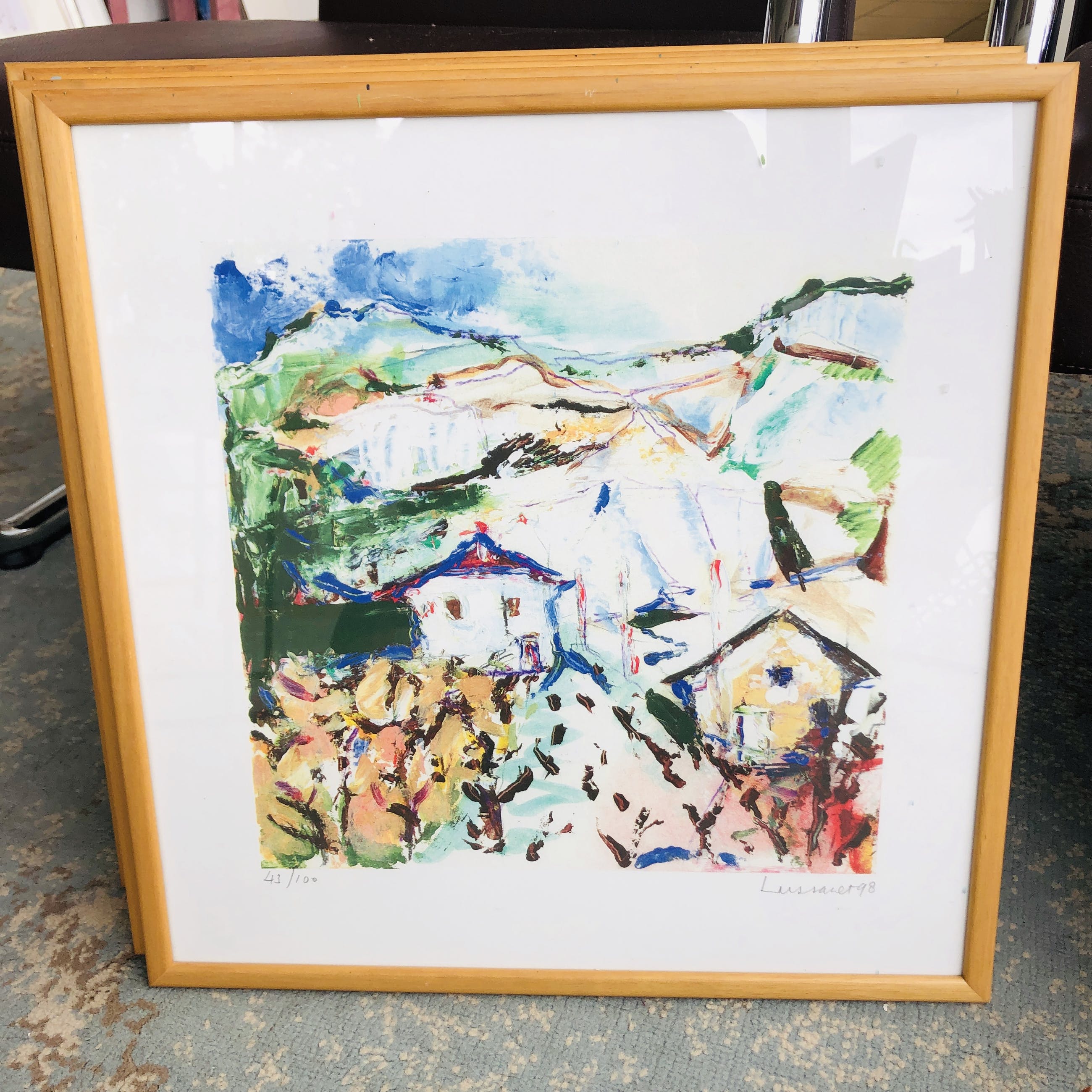 Mooie zeefdruk van Paul Henri de Lussanet. Omdat het werk in het atelier gestaan heeft zitten er hier en daar  wat verfspatjes op de lijst. Het grafiekblad zelf  is in perfecte conditie. Gesigneerd en genummerd in potlood.