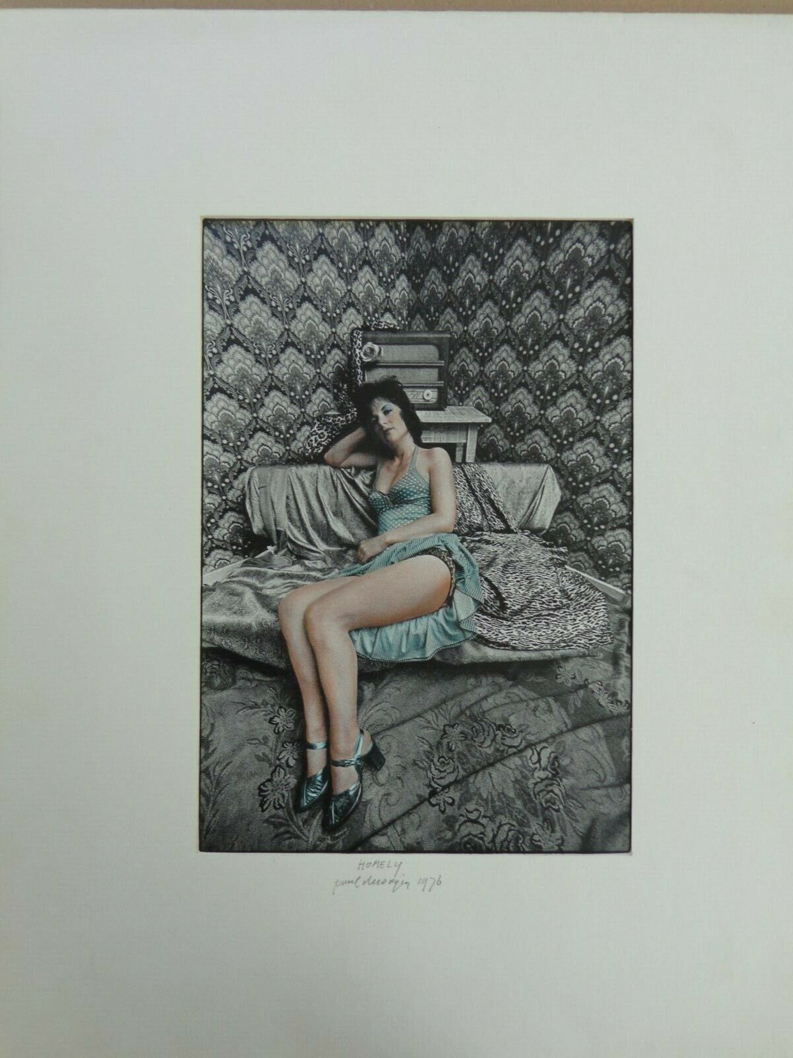 Zwart-wit foto op papier, ingekleurd met kleurpotlood.