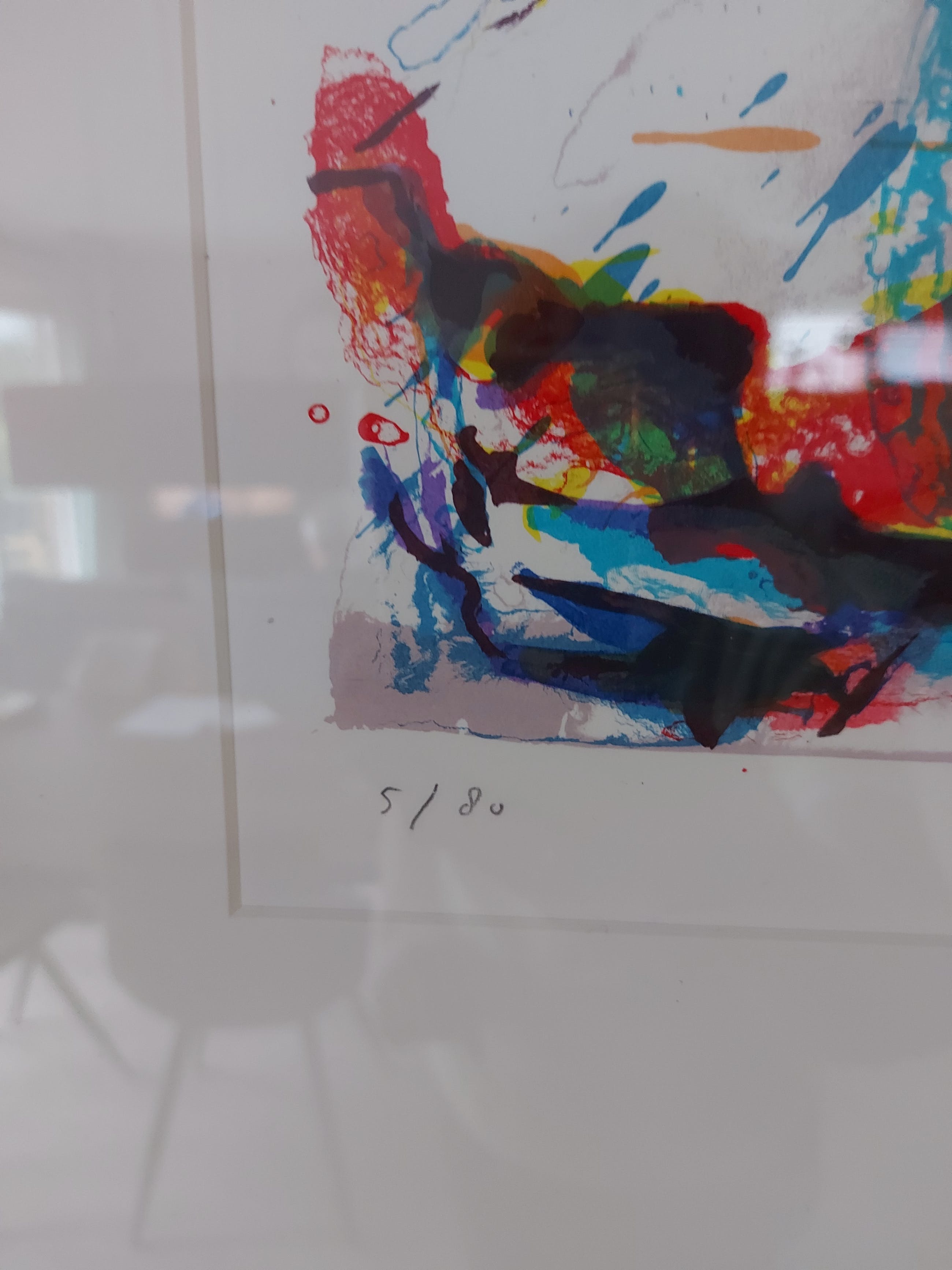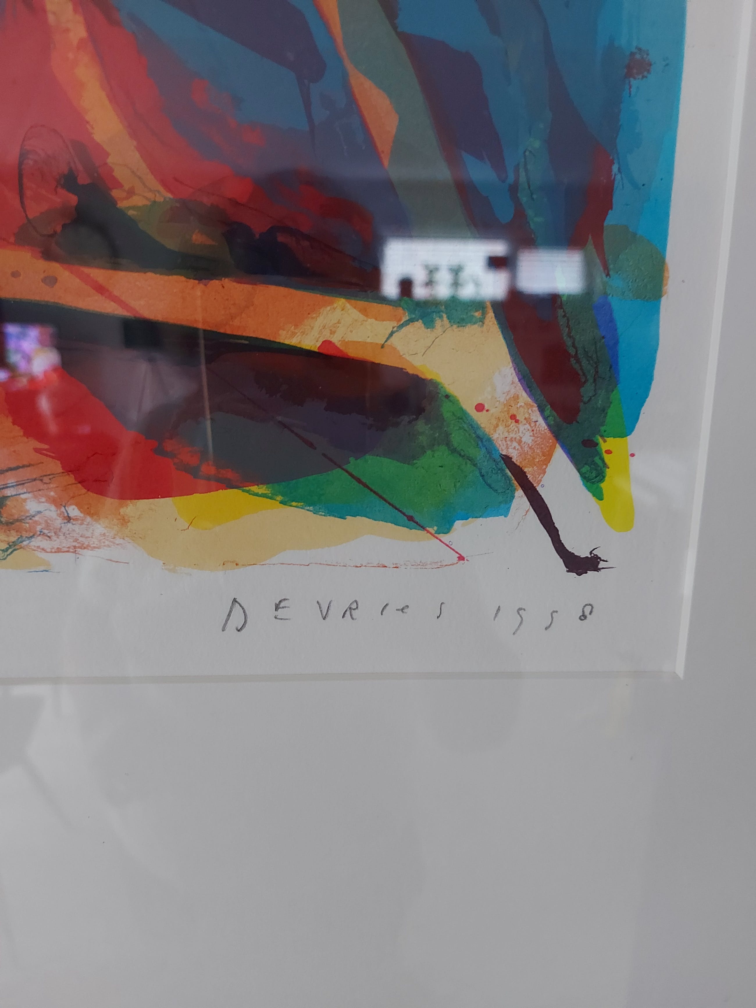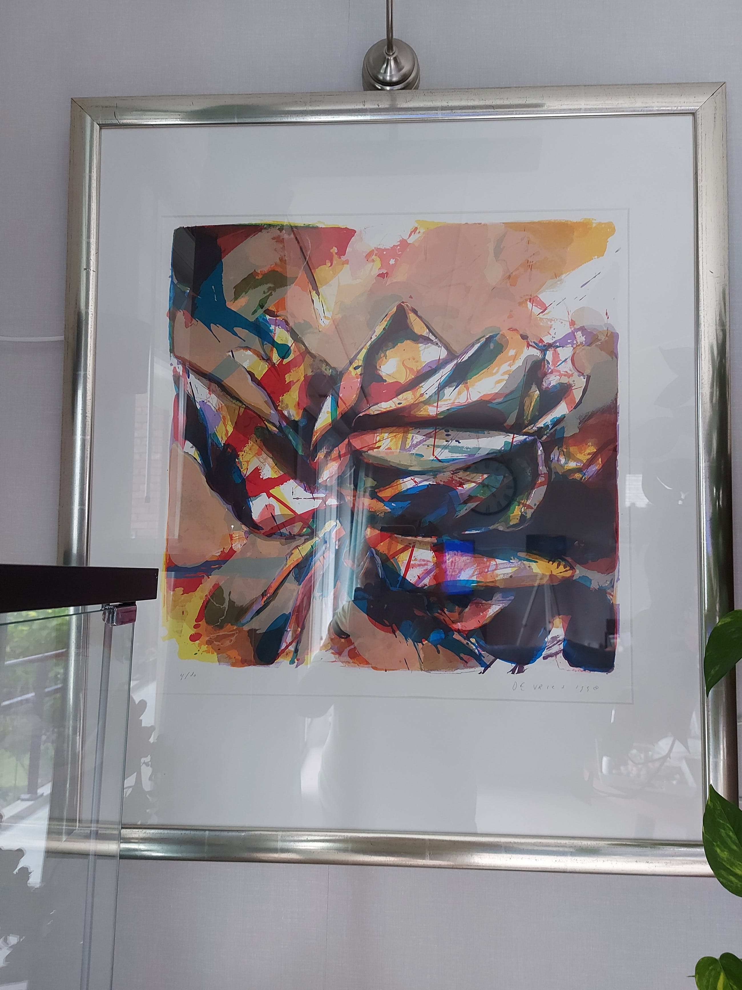 Paul de Vries, litho roos Kahului, hand gesigneerd. Nr 5 van oplage 80. Afm 54x54 inclusief lijst