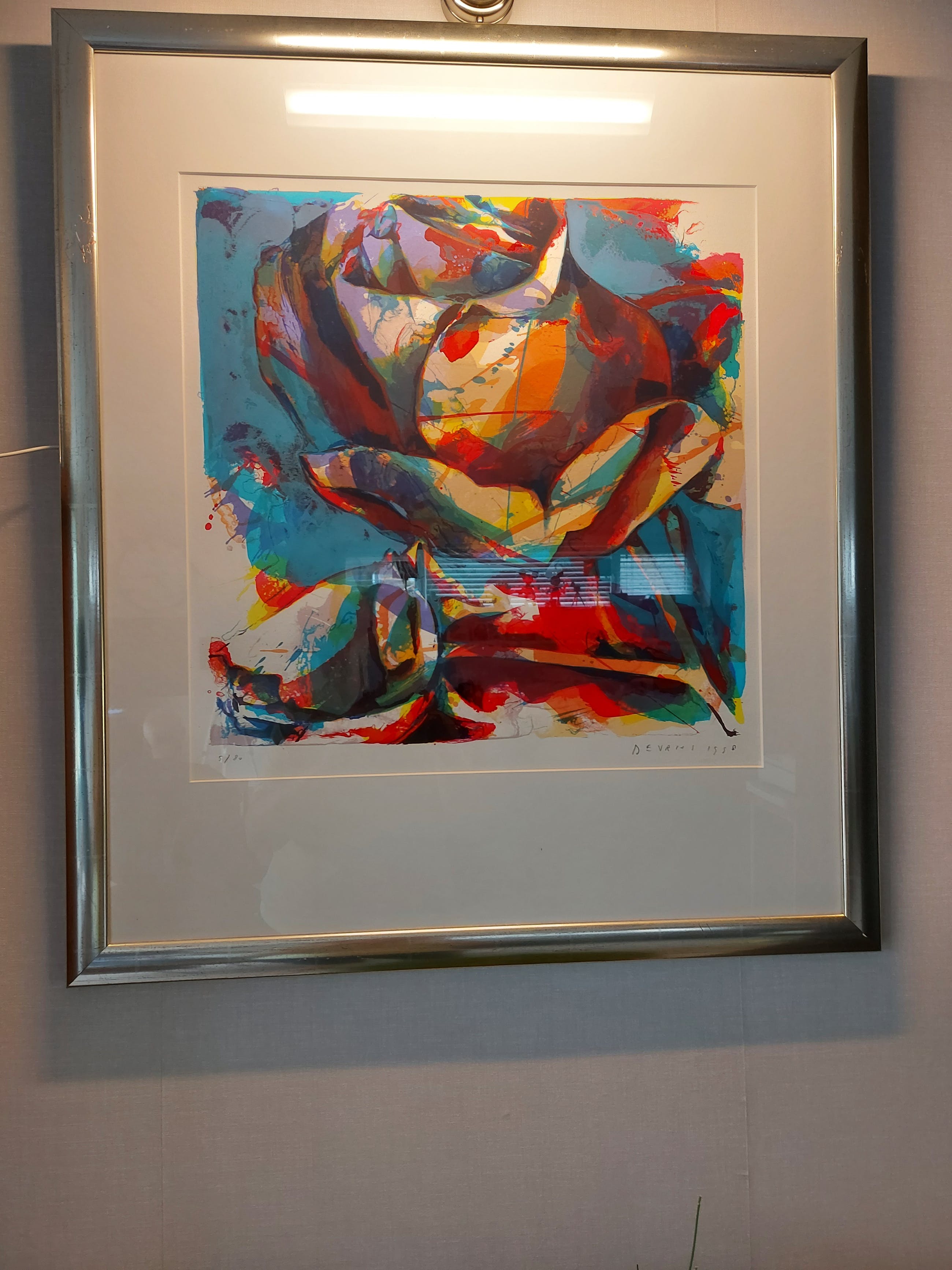 Paul de Vries, litho roos Kealakekua hand gesigneerd. Nr 5 van oplage 80. Afm 54x54 inclusief lijst