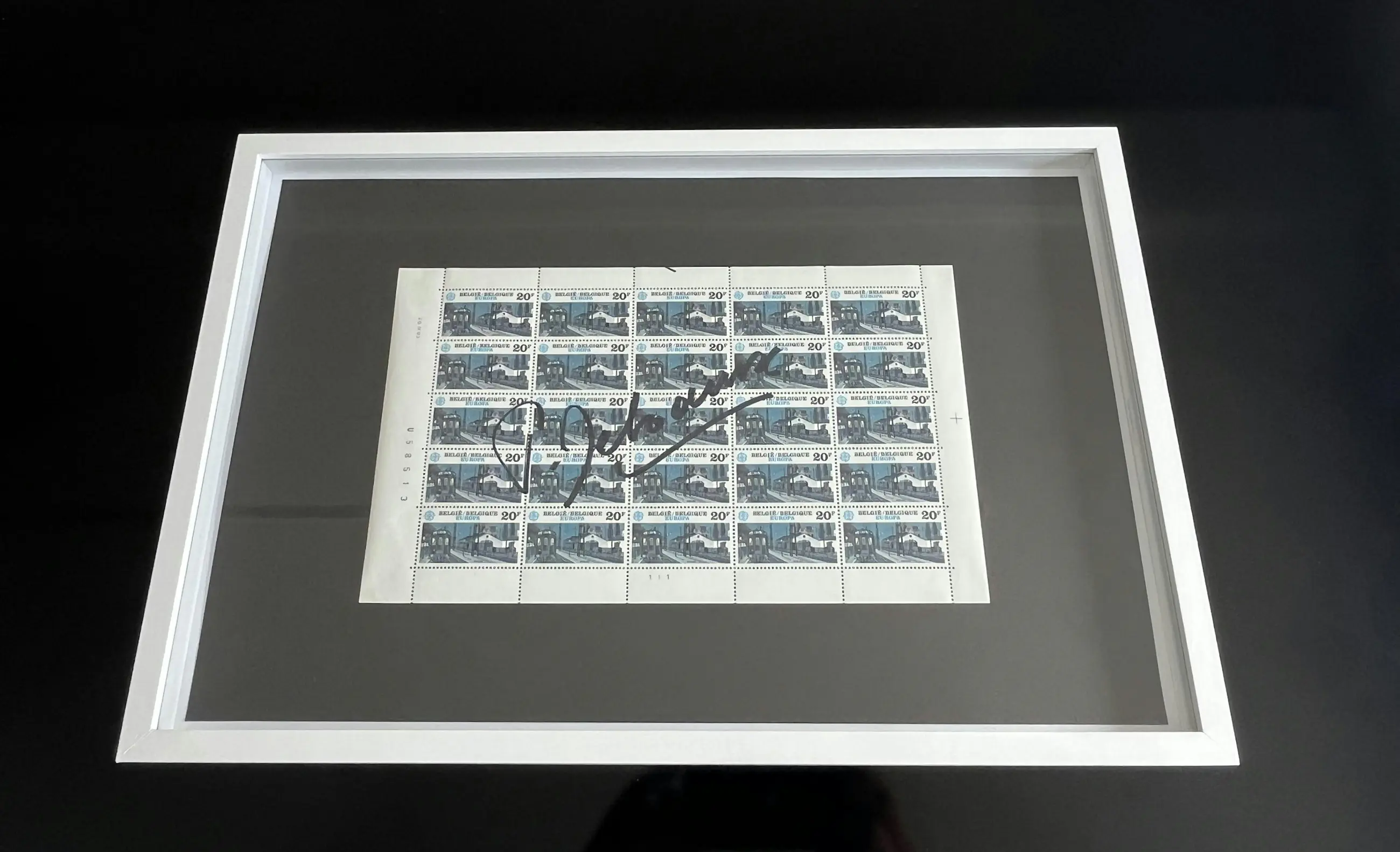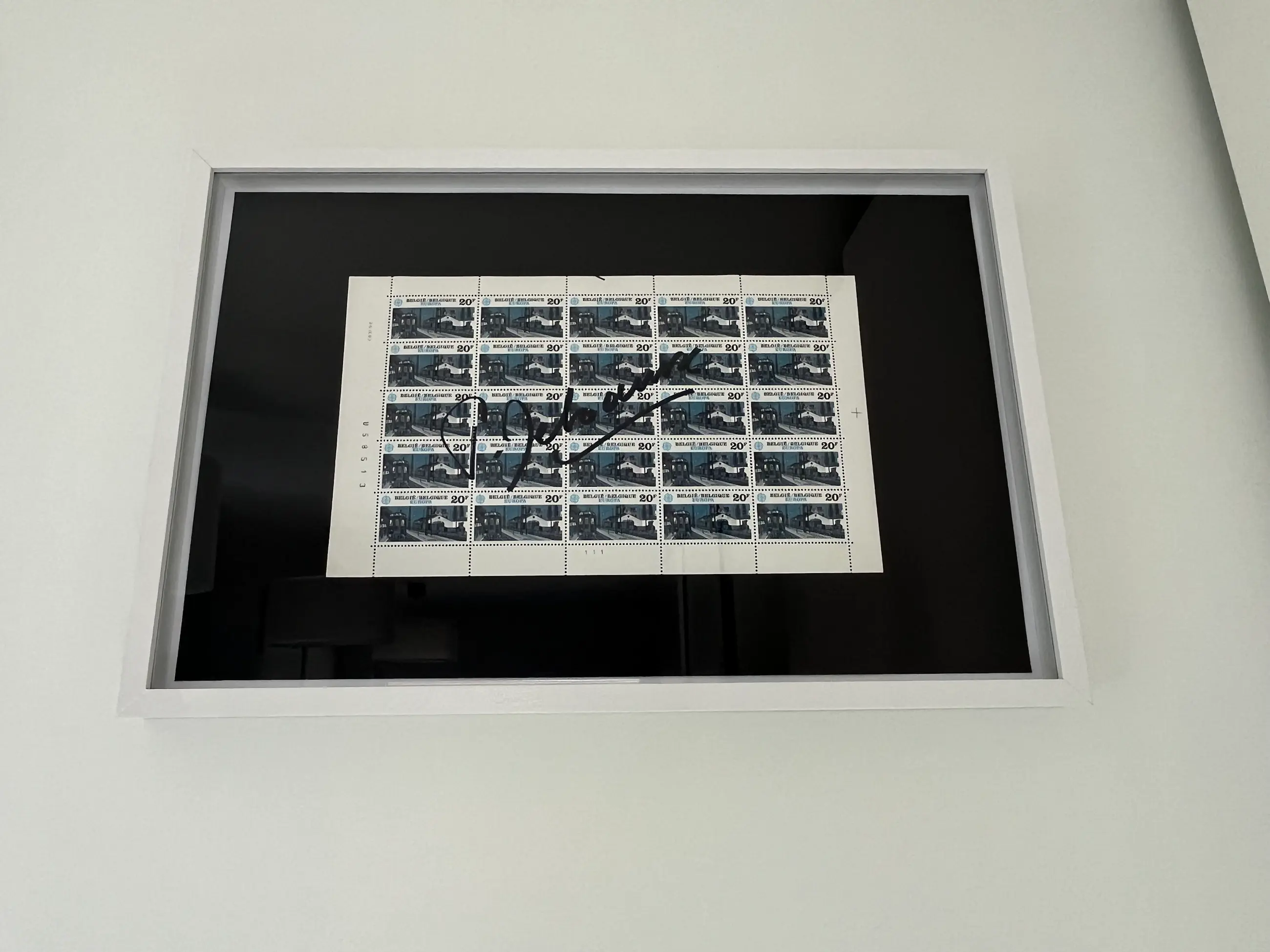 Gesigneerd met viltstift, door de kunstenaar Ingelijst, werk zit achter glas