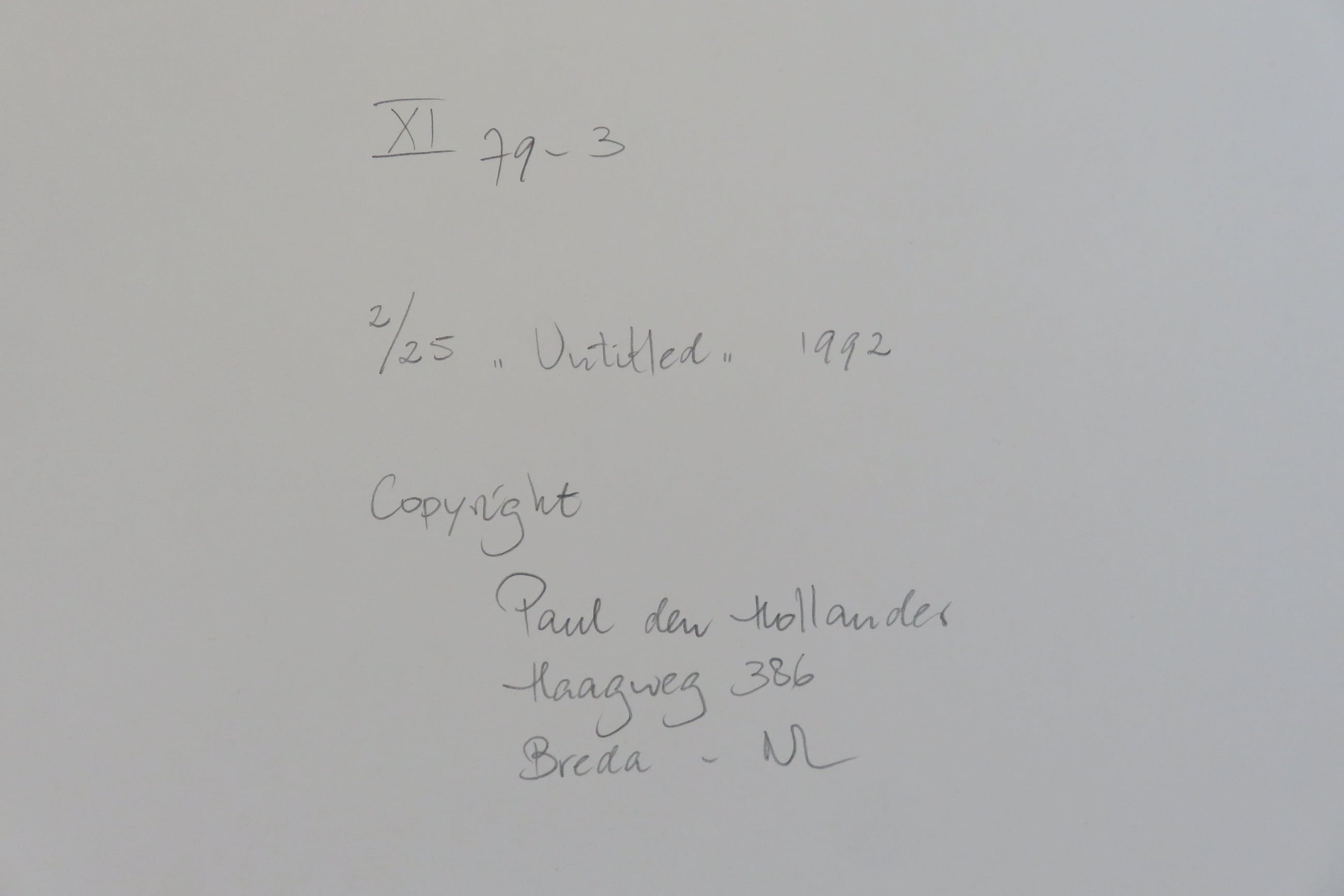 grootte van de foto 60,7 cm * 50,6 cm . Grootte van het beeld 46 * 46 cm. gesigneerd op de achterkant van het passe-partout. Links onder op de foto met stift gesigneerd