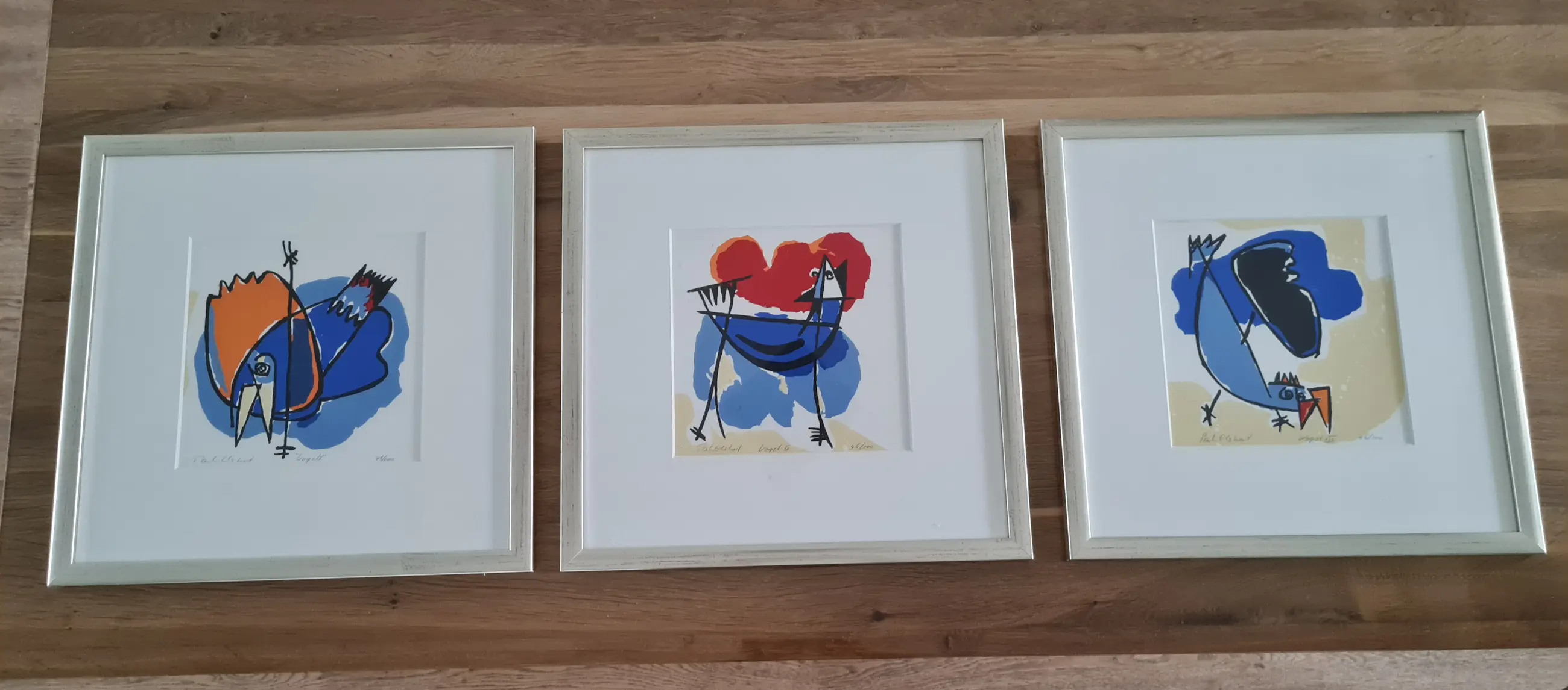 Serie zeefdrukken Vogel I, II en III. Handgesigneerd en genummerd 46/100 van Paul Elshout.