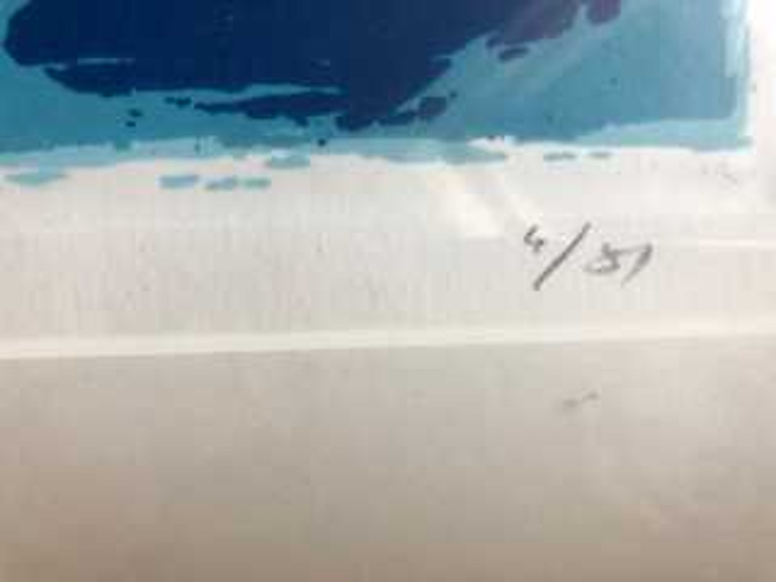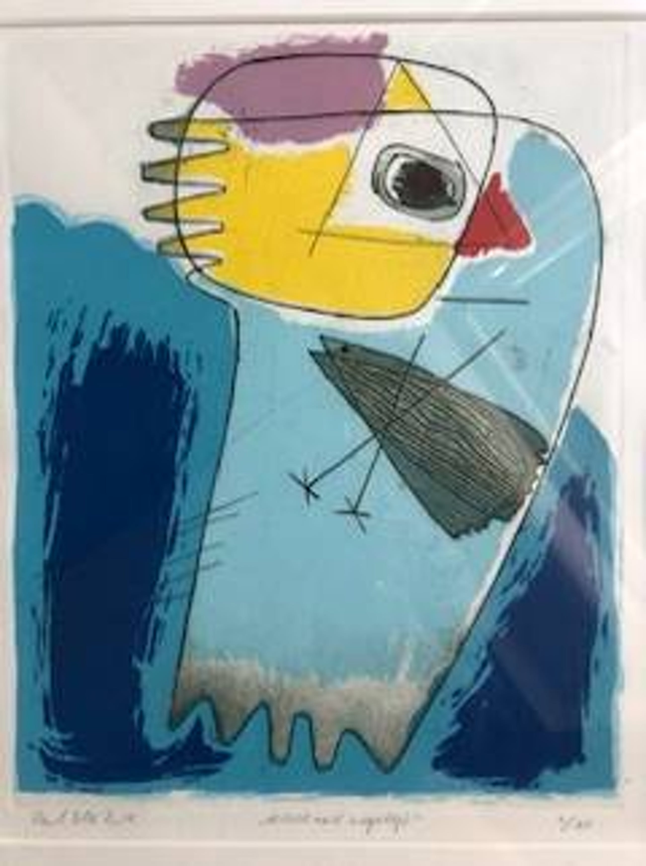 Kleurrijke zeefdruk ingelijst in aluminium lijst. Oplage van 51 en dit is nr. 4 met een originele handtekening. bij interesse graag afhalen ivm glas in lijst.