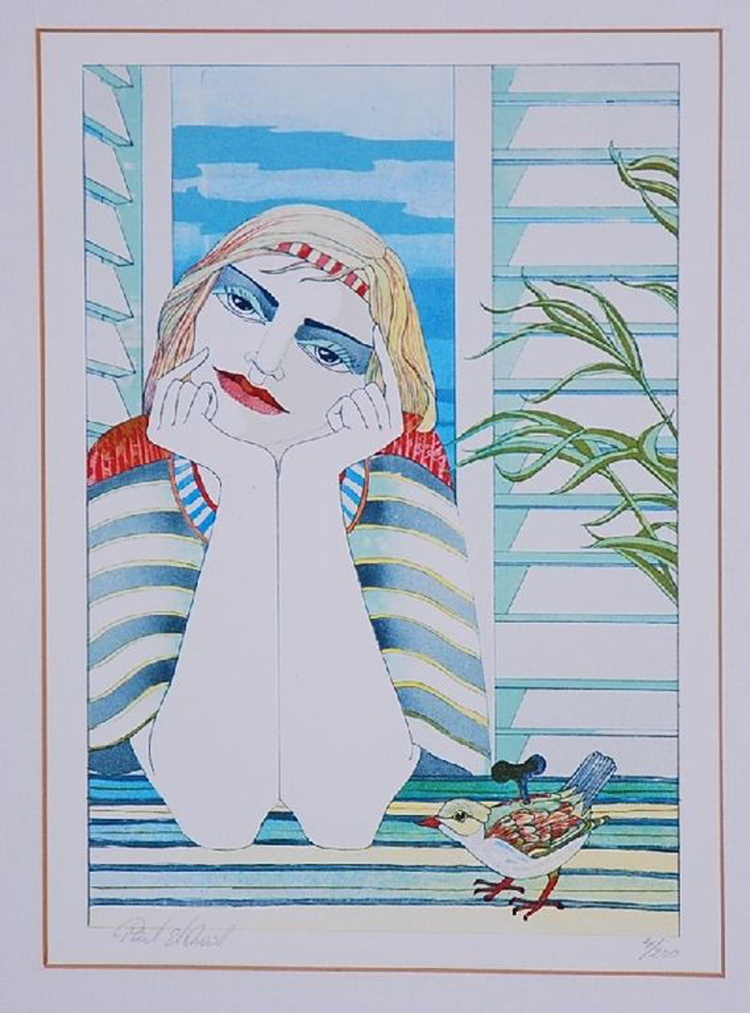 Mooie kleurrijke litho van Paul Elshout. In passepartout, eventueel eenvoudig te verwijderen.