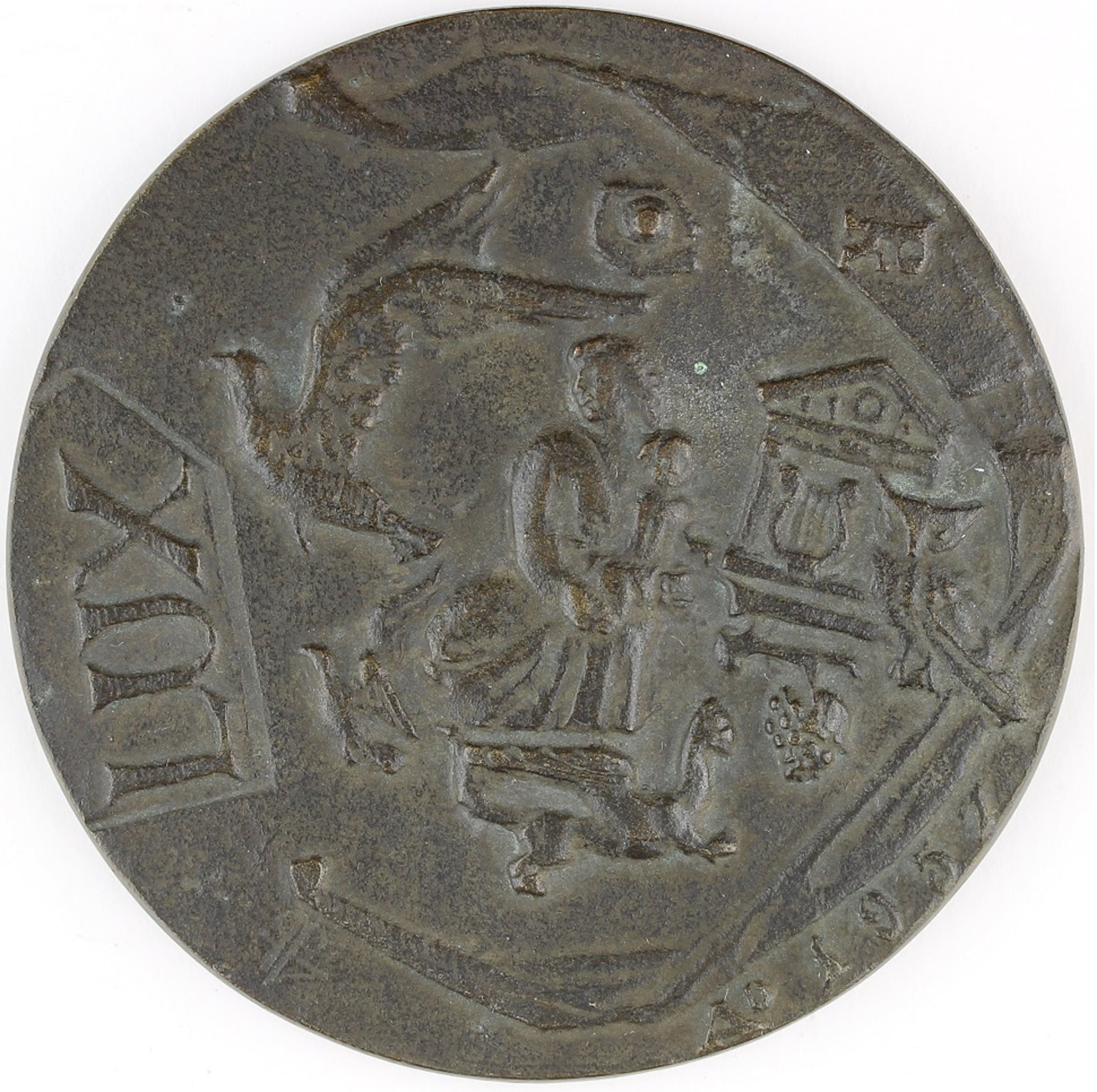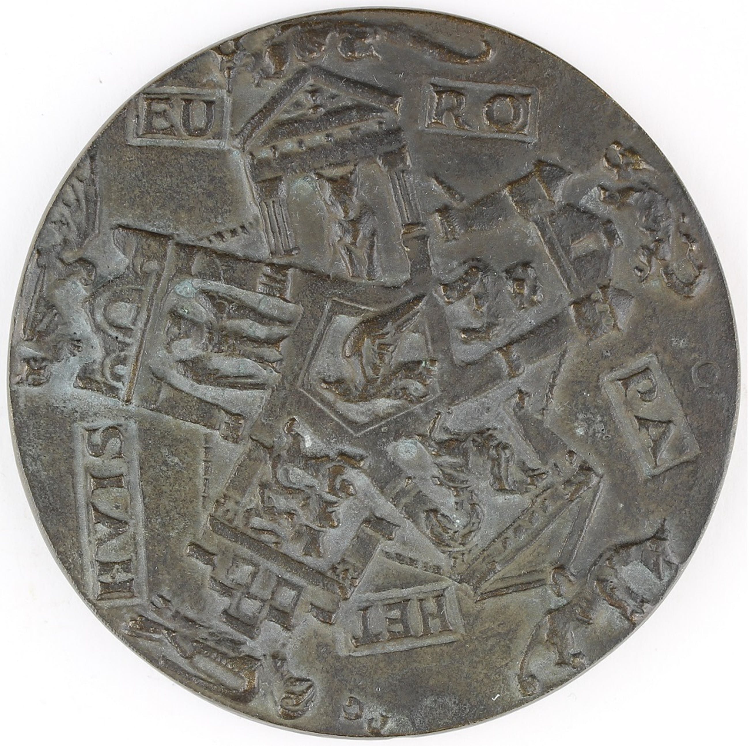 Grégoire, leerling van Bronner en later docent aan de Rijksakademie, wordt door zijn leerlingen steevast aangeduid als intellectueel. Zijn penning Het Huis Europa ademt een lastig te doorgronden symboliek; het is duidelijk dat hier een denker aan het werk is geweest. Een vogel is omsloten door de gevels van de gebouwen van de verschillende naties, die als een vijfpuntige, naar links draaiende ster het penningvlak vullen. De Gallische haan, de Duitse adelaar, de leeuw voor Nederland en België, de Italiaanse vos, en de Engelse bulldog worden door gevaren bedreigd, dit is door draken gesymboliseerd. De keerzijde geeft 'Europa' in de gedaante van een vrouw die haar kind beschermt. Symbolen van wetenschap en kunst helpen haar tegen de bedreiging van buiten. Die zijn samengevat in een tempelfronton, de uil van de wijsheid, de lier van Orpheus en de wijnrank van het goede leven. De geest in de gedaante van een vogel krijgt hierdoor zijn vrije vlucht naar het licht en de zon. De vogel vliegt weg uit de los geplaatste voorhang die werkt als een banderol. De Geuzenpenning schrijft: 'Het is een penning die door zijn thema de moeilijkheden van onze tijd tracht uit te dragen en getuigen wil van een optimisme dat hogere levenswaarden, waarbij wij de godsdienst echter missen, uiteindelijk de overwinning in eenheid behalen'. Grégoire was een uiterst sensitief modelleur, dat is goed aan de vele details te zien. Hij werkte graag in negatief en hij was een groot stempelsnijder; op zijn penning zijn de voorbeelden te over. De veelheid aan gecompliceerde symbolen en motieven die dit ontwerp in zijn totaliteit met zich meedraagt laten de beschouwer echter in verwarring achter. #Louk Tilanus, Handzame Sculptuur
