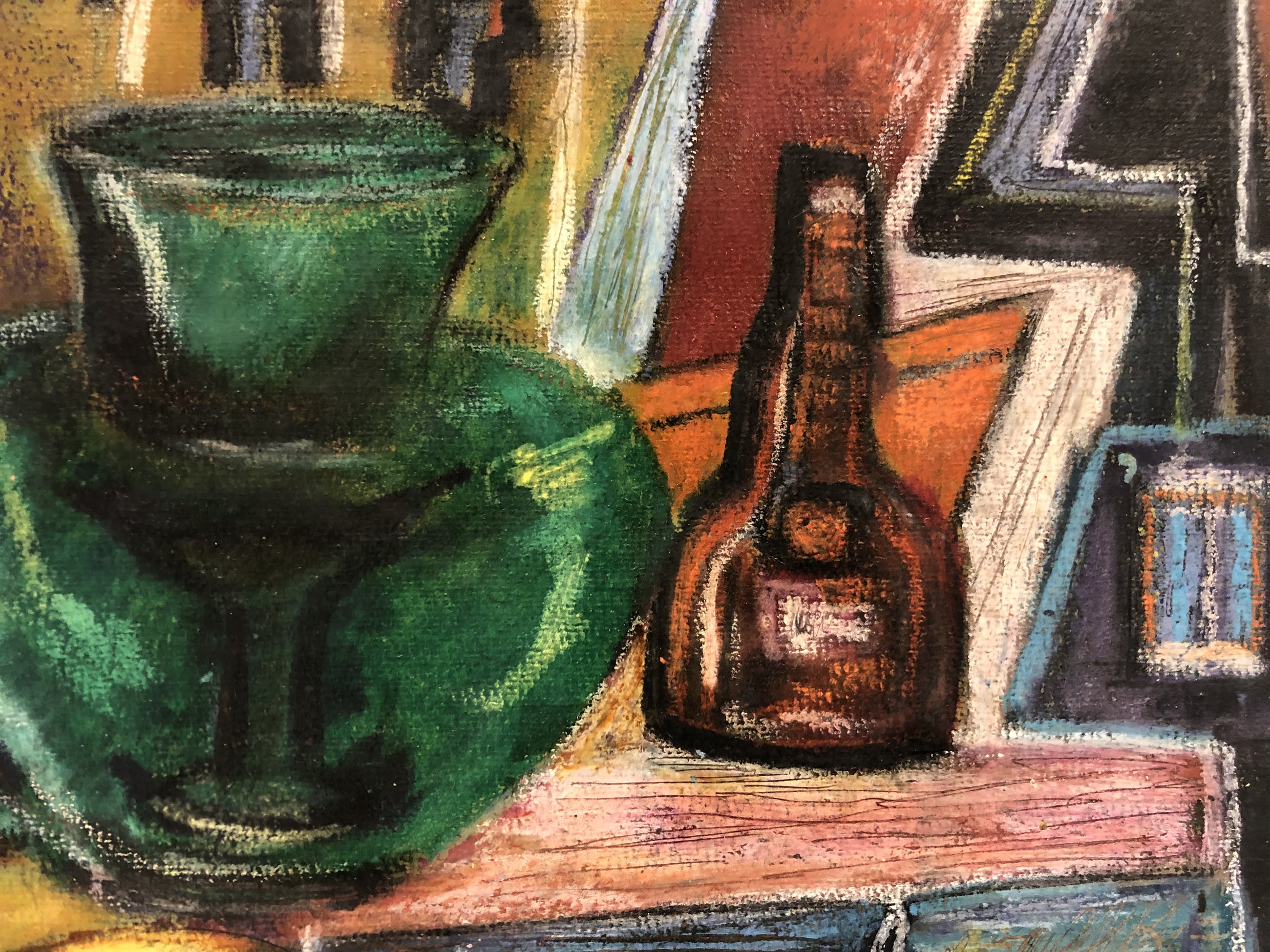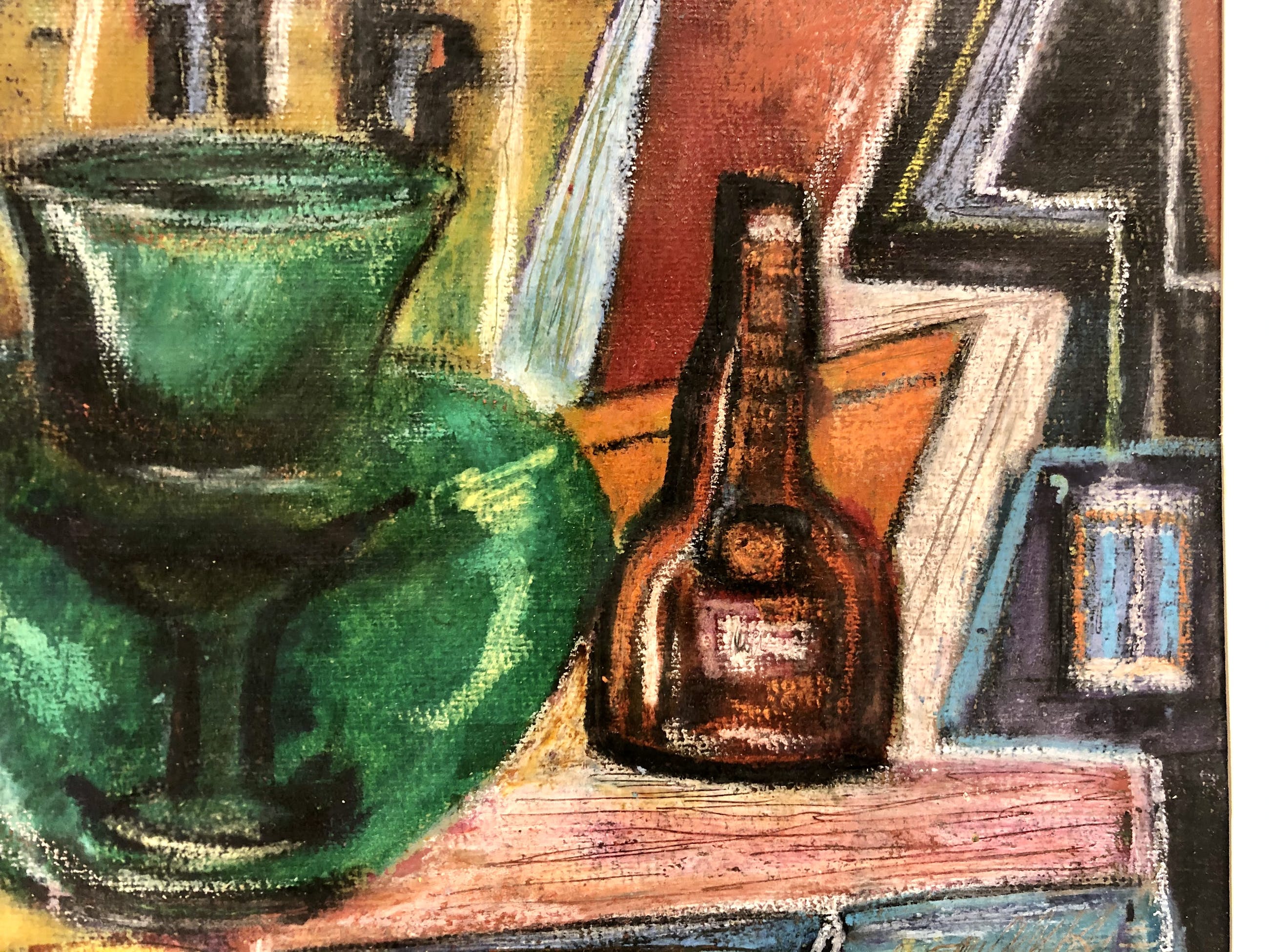 Mooi vroeg stilleven van Haanschoten, pseudoniem Coq. Deze vergeten Cobra kunstenaar had niet lang geleden een tentoonstelling met Eugene Brands in het Zandvoorts museum.