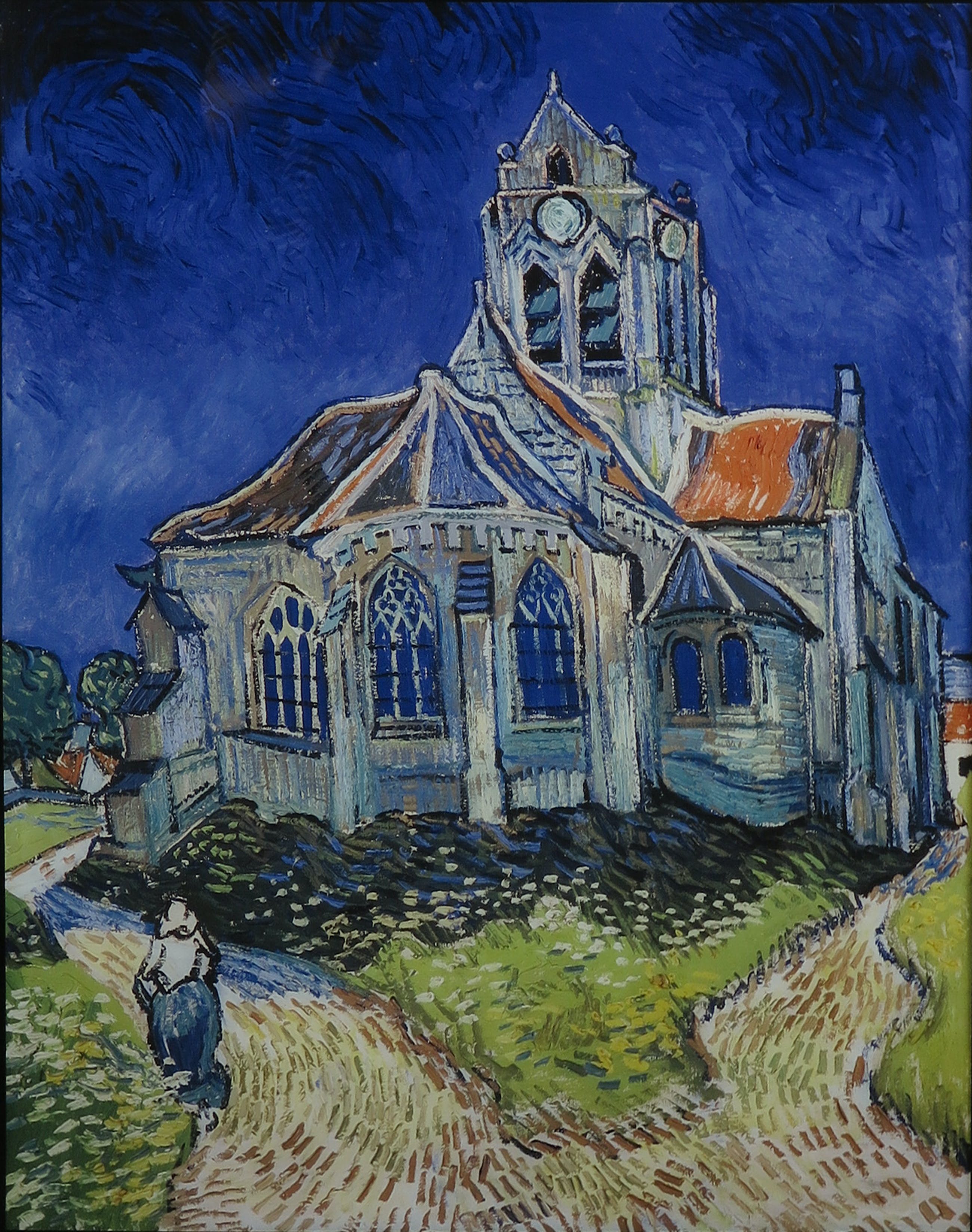 Het is een foto van het kunstwerk van Vincent van Gogh - De kerk in Auvers.