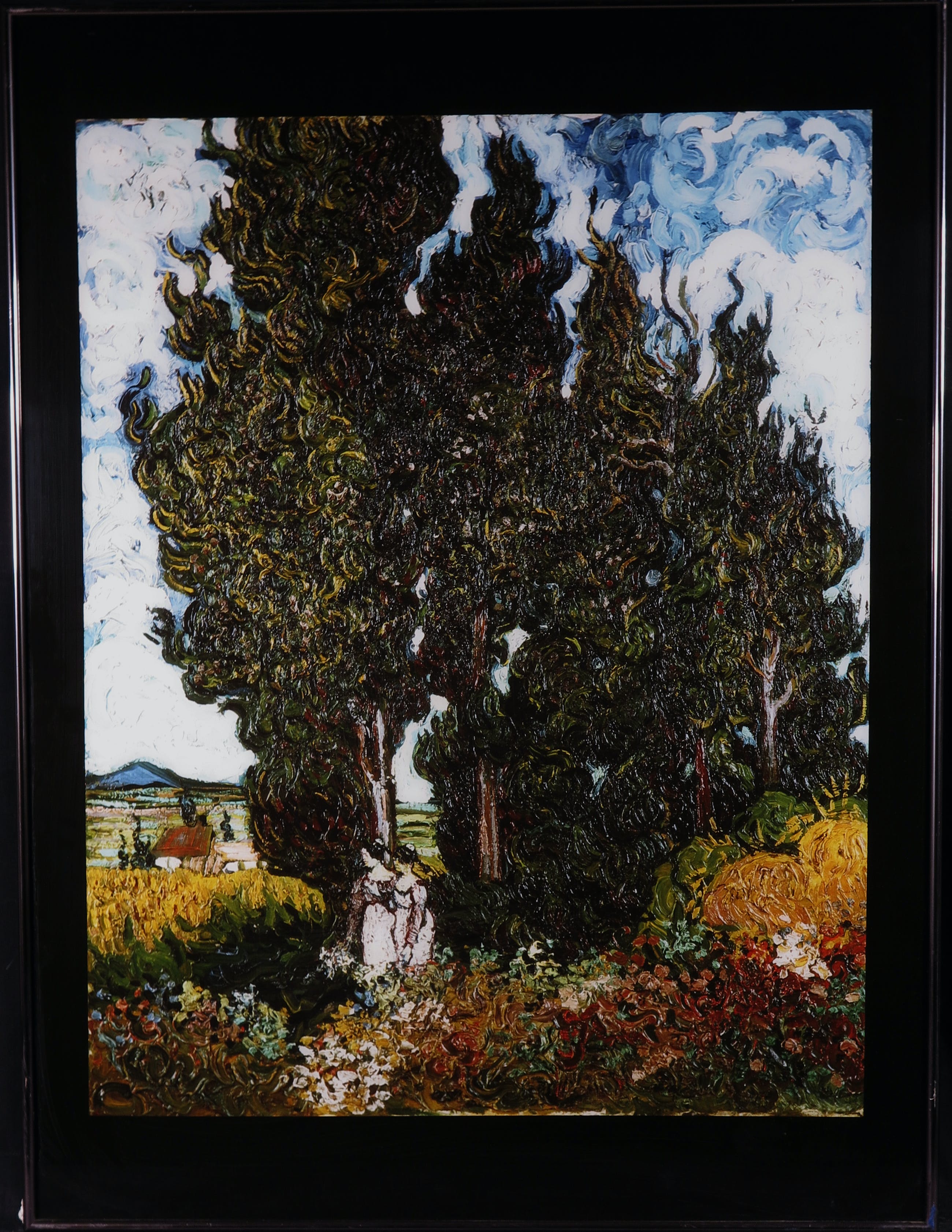 Huf fotografeerde het werk Cipressen met twee figuren (juni 1889 - 1890) door Vincent van Gogh. Het kunstwerk is voorzien van een atelier stempel van Studio Paul Huf. Ook wordt het werk geleverd inclusief de twee boeken People en Record Covers van Paul Huf tot de voorraad strekt. De afgebeelde foto hoeft niet voor te komen in één van de boeken.